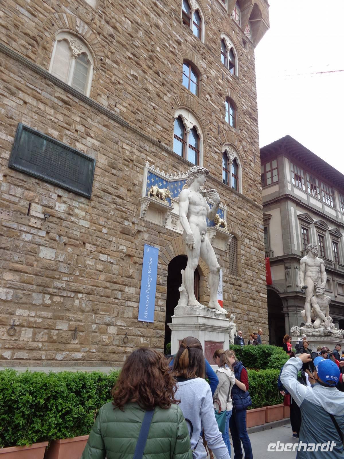 Dieser Tag gehörte ganz der Hauptstadt der Toscana. Wir bewunderten Michelangelos David vor dem Palazzo Vecchio, den Dom „Santa Maria Del Fiore" mit seiner prächtigen Marmorfassade sowie den Ponte Vecchio mit seinen 40 Goldschmiedegeschäften und die prächtigen Grabstätten von Galilei, Dante, Macchiavelli, welche alle in der Kiche „Santa Croce" zu finden waren.