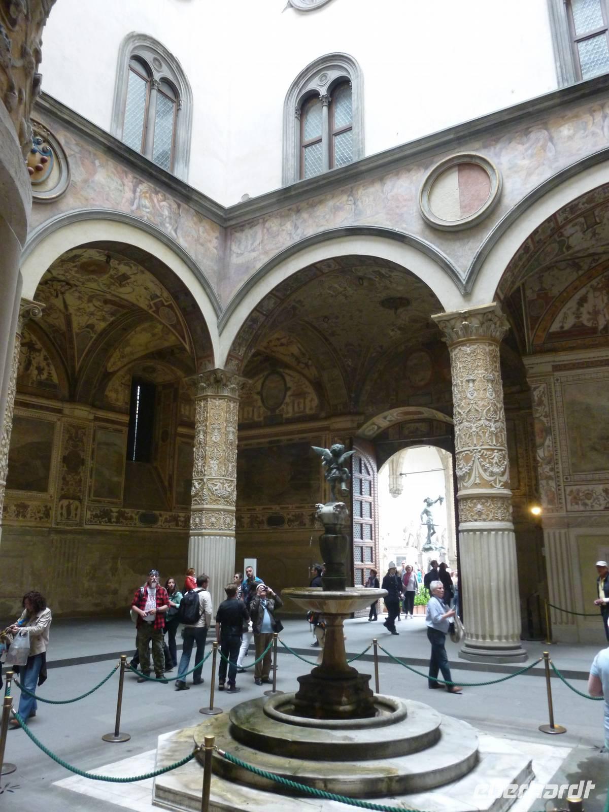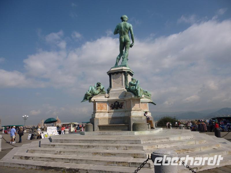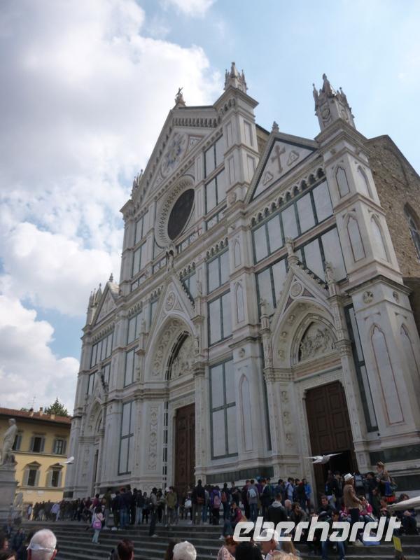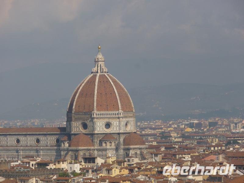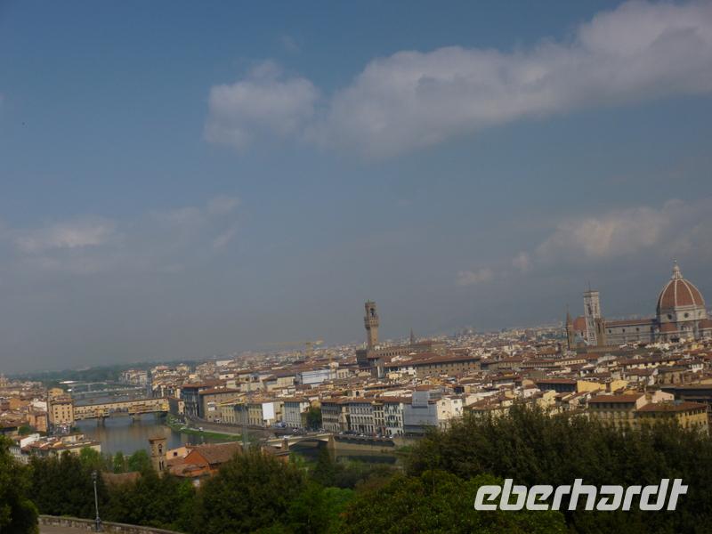 In Florenz trafen wir unsere örtliche Stadtführerin Angela, mit der wir den ganzen Tag die Stadt der Städte und ihren Sehenswürdigkeiten kennenlernen sollten. Zunächst führte sie uns mit mit dem Bus zur Piazzale Michelangelo, die berühmt ist für ihren herrlichen Blick auf die Stadt. Danach ging es mit ihr den ganzen Tag zu Fuß weiter. Zunächst ging es an der Bibliothek und sie zeigte uns wie hoch die Überschwemmung damals war. Weiter gingen wir zur gotischen Kirche Santa Croce, die wir mit ihr zusammen auch innen mit den Grabmalen Michelangelos, Galileis , Dante uvm. und ihrem Kreuzgang besuchten. Das Rathaus, die Piazza della Signoria, ein einzigartiger Skulpturenpark aus dem 14. Jahrhundert, den Dom „Santa Maria del Fiore" mit der mächtigen Kuppel aus dem 13. Jahrhundert, die Ponte Vecchio mit ihren Goldschmieden und vieles mehr bestaunten wir bei unserem Rundgang dabei von außen wie teils auch von innen. Zeit für eine Pause blieb uns mittags für ein kleines Essen oder Geschäfte schauen oder Kaffee trinken. Ebenso gab es eine kleine und leckere "Gelato"-Pause und noch Freizeit nach der geführten Tour. Dennoch kamen wir müde und mit sehr vielen Eindrücken abends wieder in unser Hotel in Montecatini Terme zum Abendessen zurück.