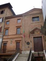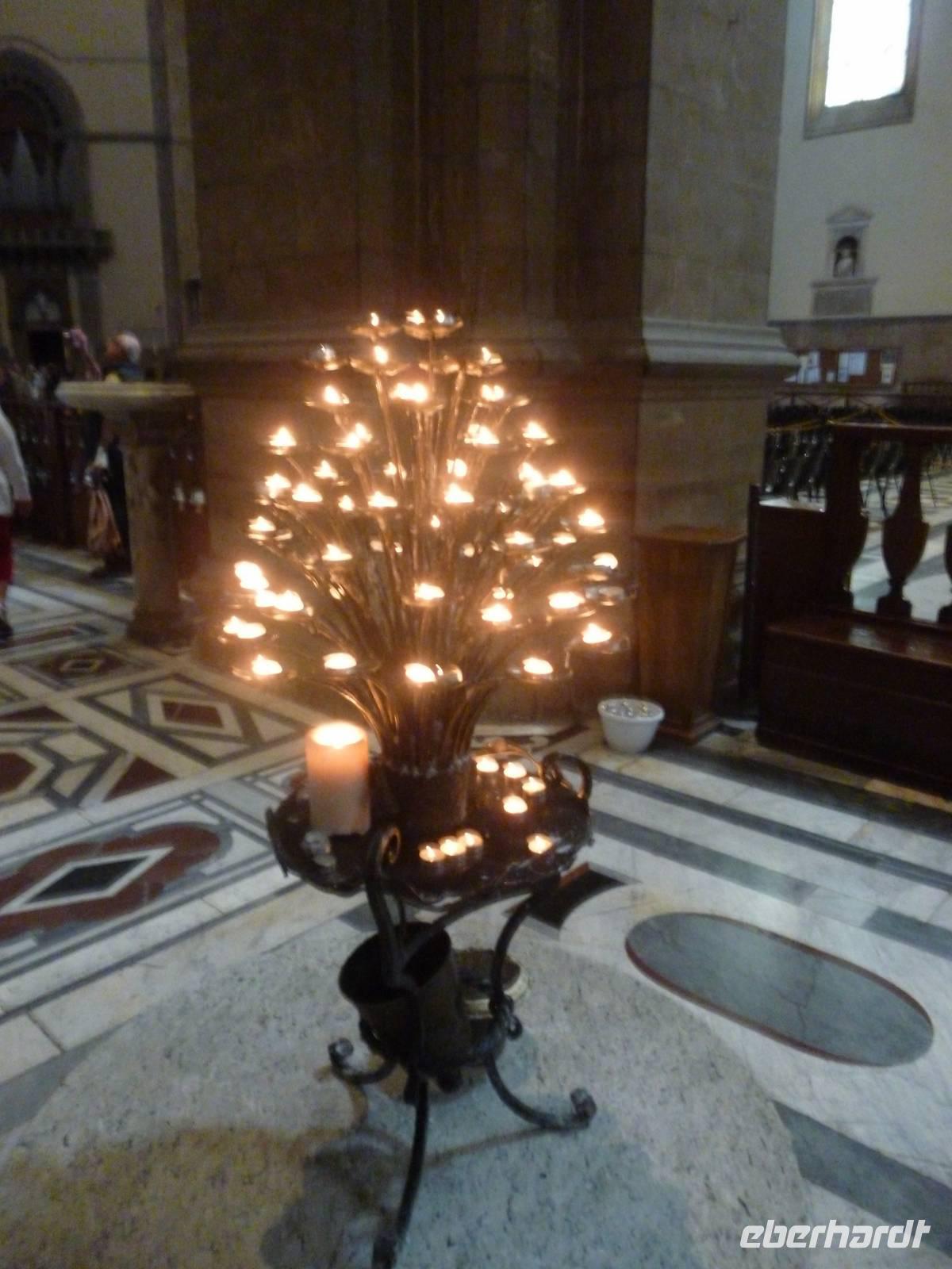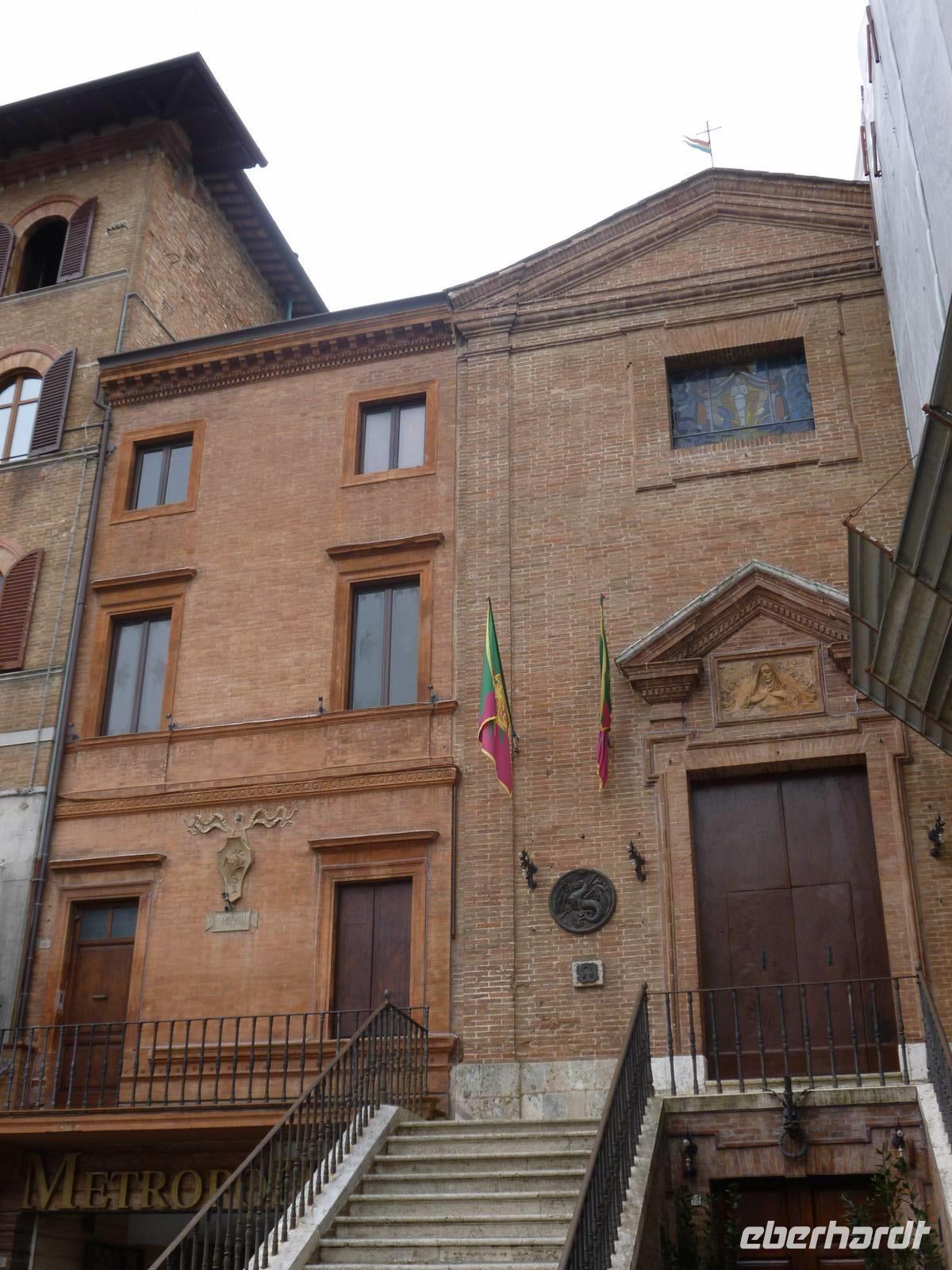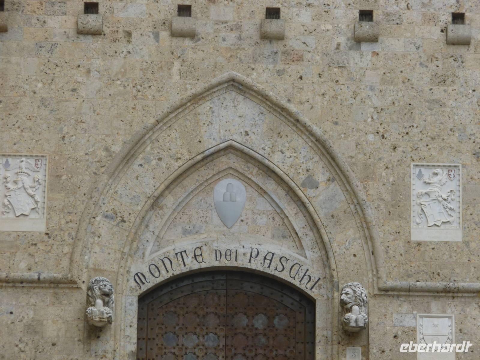 Cecilia holte uns am Checkpoint ab und führte uns durch die Altstadt zuerst in die Kirche der Hl.Katharina von Siena und weiter durch die Stadt und erklärte oder zeigte uns diverse Sehenswürdigkeiten (die Banner des Palio, Bankenviertel oder auch Leckereien wie Panforte, dem Kuchen aus Siena oder das Cafe Nannini) auf dem Weg bis zum Dom von Siena. Er ist die Hauptkirche der Stadt und aus charakteristischem schwarzem und weißem Marmor errichtet. Er gilt als eines der bedeutendsten Beispiele der gotischen Architektur in Italien. Diesen sahen wir uns auch gemeinsam innen an. Vor allem auch der Bodenbelag ist in seiner Art fast einmalig, er besteht aus kunstvoll gravierten Marmorplatten sowie Intarsienarbeiten in Farbe und Schwarzweiß. Danach gingen wir zum Piazza del Campo, wo der berühmte Palio stattfindet. Nach der Freizeit (alles hatte hier trotz Feiertag offen) trafen wir uns alle wieder und fuhren zurück zu unserem Hotel.