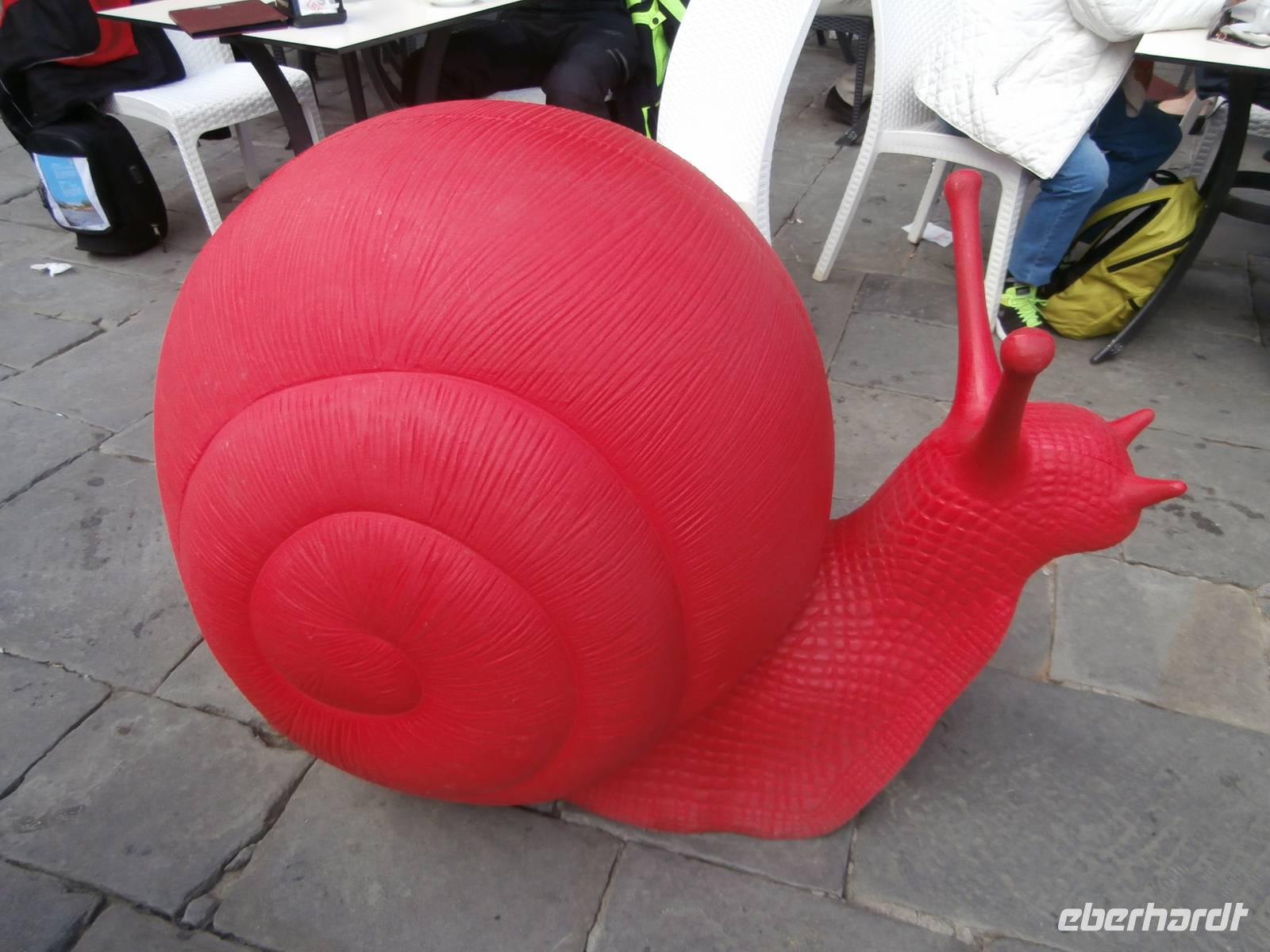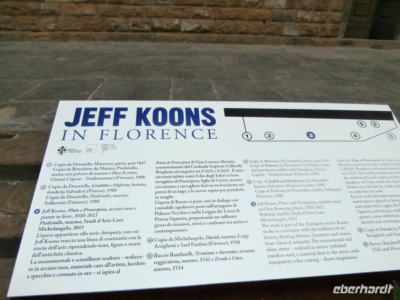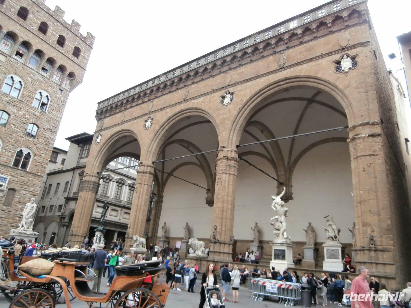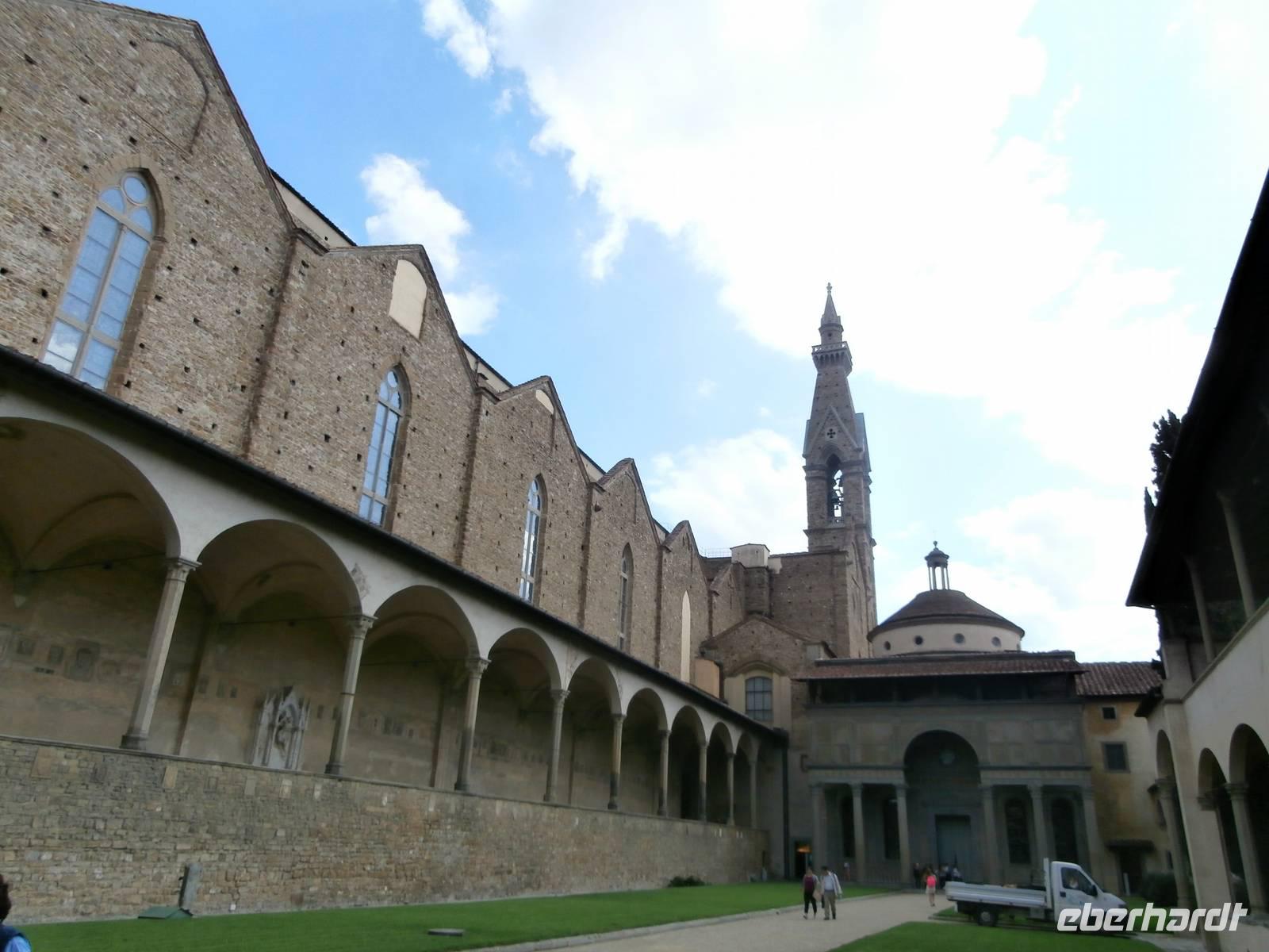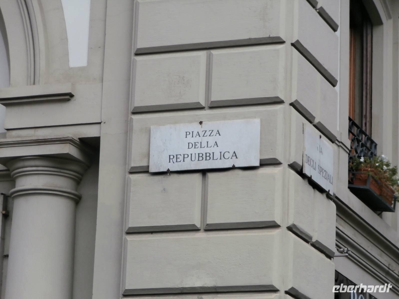 Schönes Wetter mit angenehmen Temperaturen erwartet uns in Florenz. Matthias Feldmann unser örtlicher Reiseleiter in Florenz erwartet uns am Zecca Turm direkt am Arno, dem Fluss, der Florenz durchfließt. Als erstes besichtigen wir Santa Croce, die Franziskanerkirche hat man 1294 umgebaut, sie ist die Begräbnisstätte der Berühmten. Wir sehen Grabmale von Michelangelo, Rossini und Galileo Galilei. Weiter geht es auf unserem Rundgang der Piazza della Signoria entgegen, ein beeindruckender Platz, er wird vom wuchtigen Turm des Palazzo Vecchio beherrscht. Den Neptun-Brunnen, das Reiterdenkmal des Großherzogs Cosimo I. und die Kopie des berühmten „David" vom Michelangelo können wir hier betrachten und fotografieren. Auch eine neue Statue in Gelb, die heute eingeweiht wird, können wir betrachten, es ist schon etwas gewöhnungsbedürftig, dieses neue Werk.