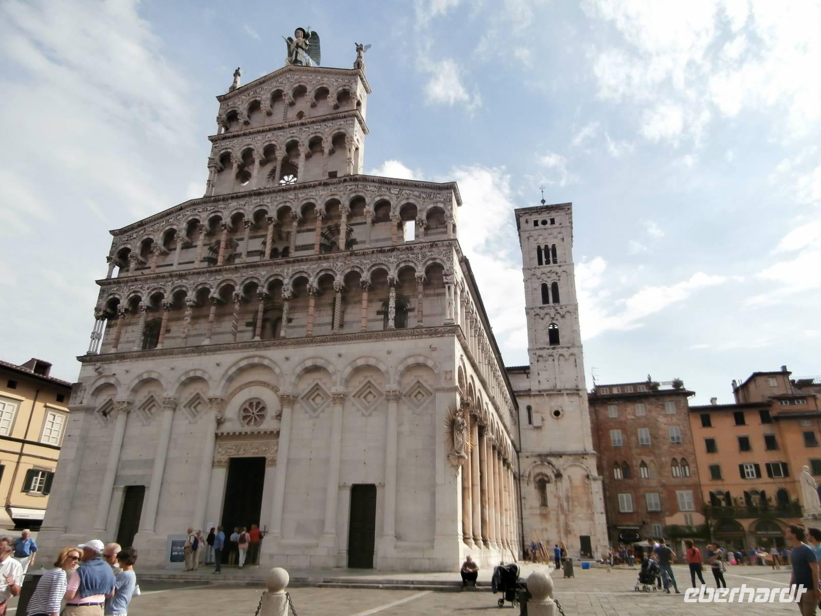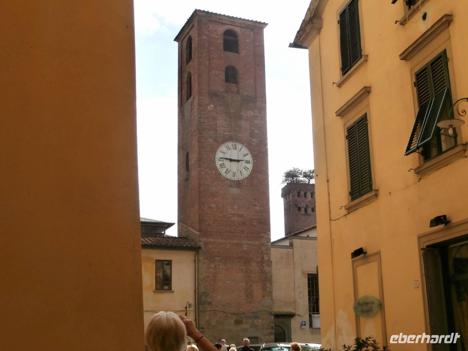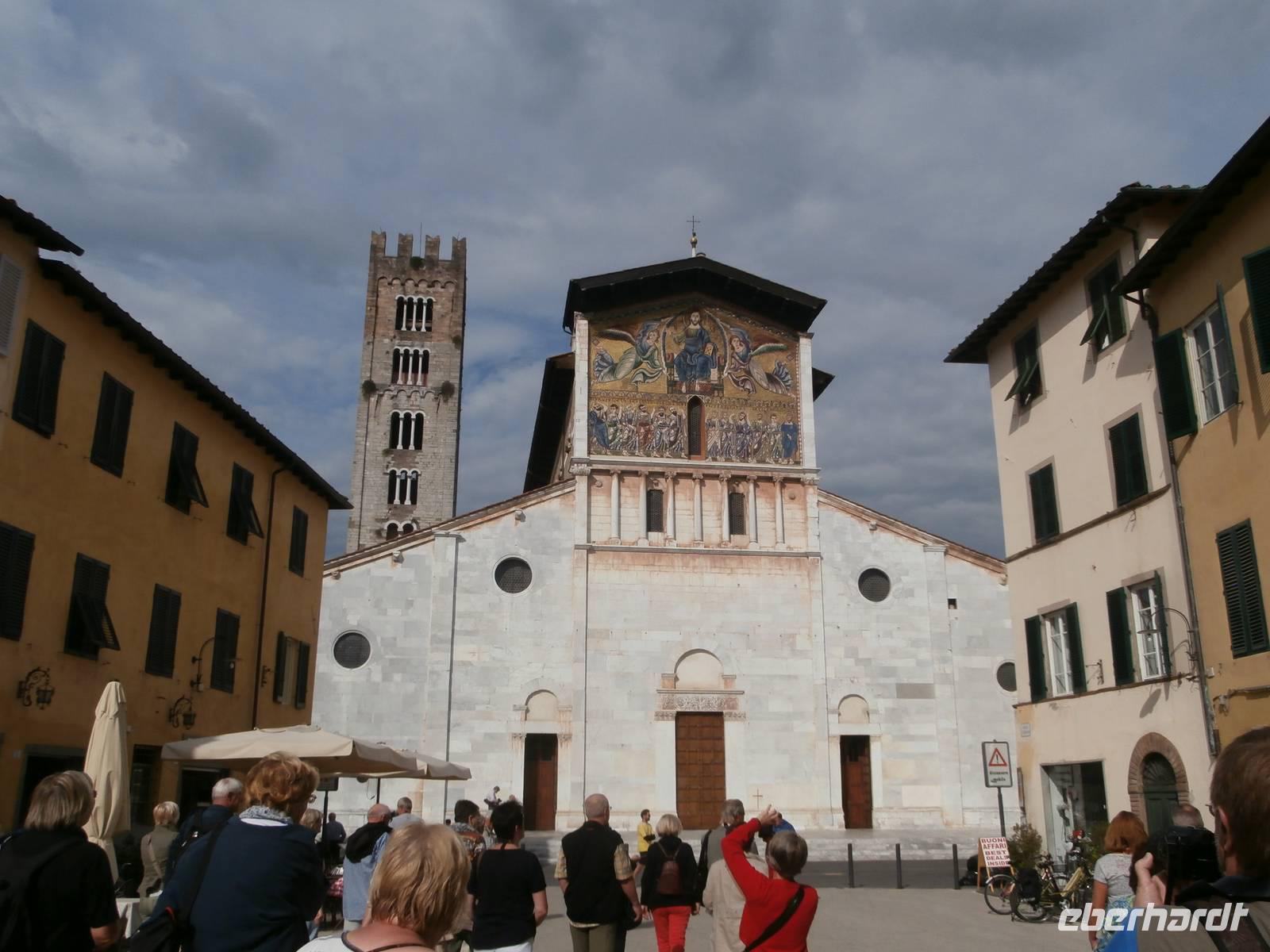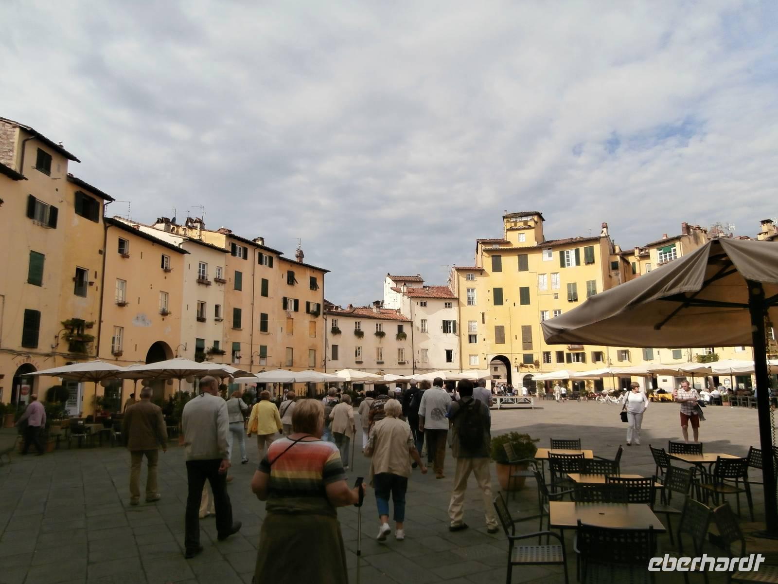 Sonntagmorgen starten wir nach Lucca, wir nehmen unsere örtl. Reiseleitung Frau Nada unterwegs im Bus auf. Lucca ist eine typisch toskanische Stadt, Metropole der Seidenindustrie. Die Altstadt ist umgeben von einem begrünten, ca. 4 km langen Wall mit 11 Bastionen. Trotzdem wirkt die Innenstadt nicht eingeschlossen, sondern hat kleine Plätze, Arkaden, Parks, viele Geschäfte und Restaurants.