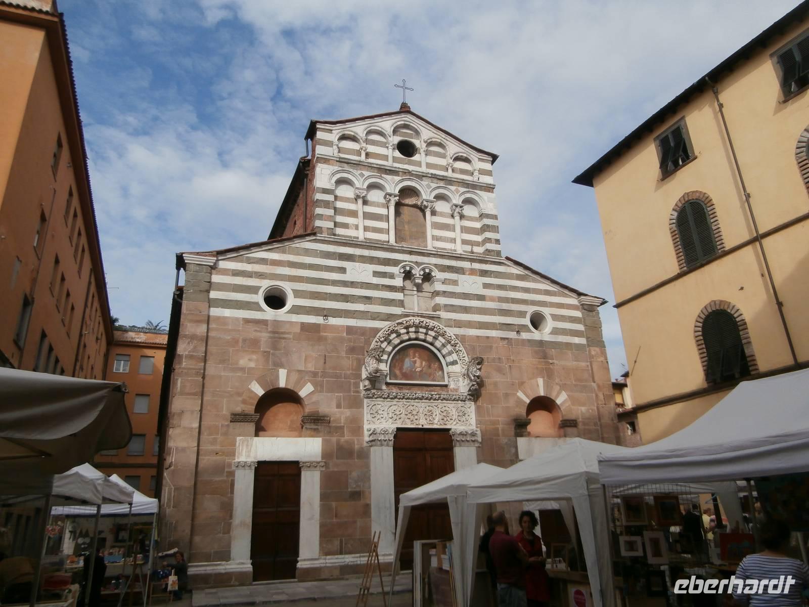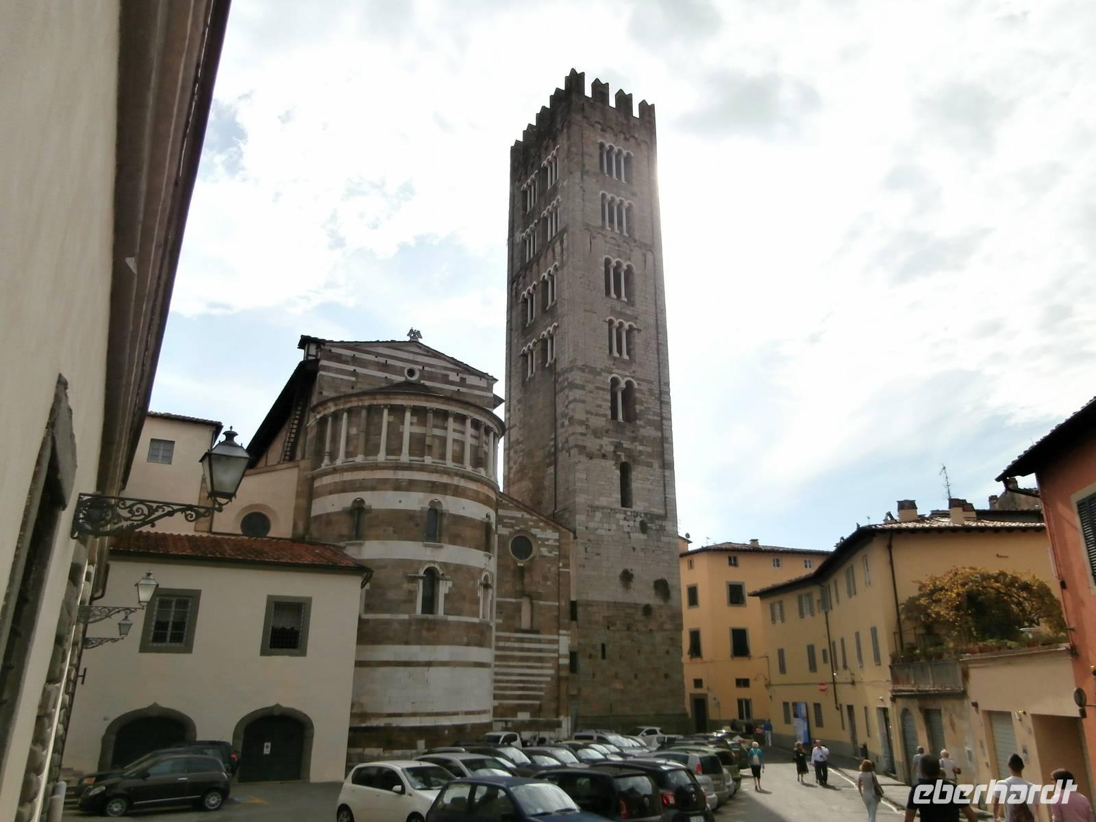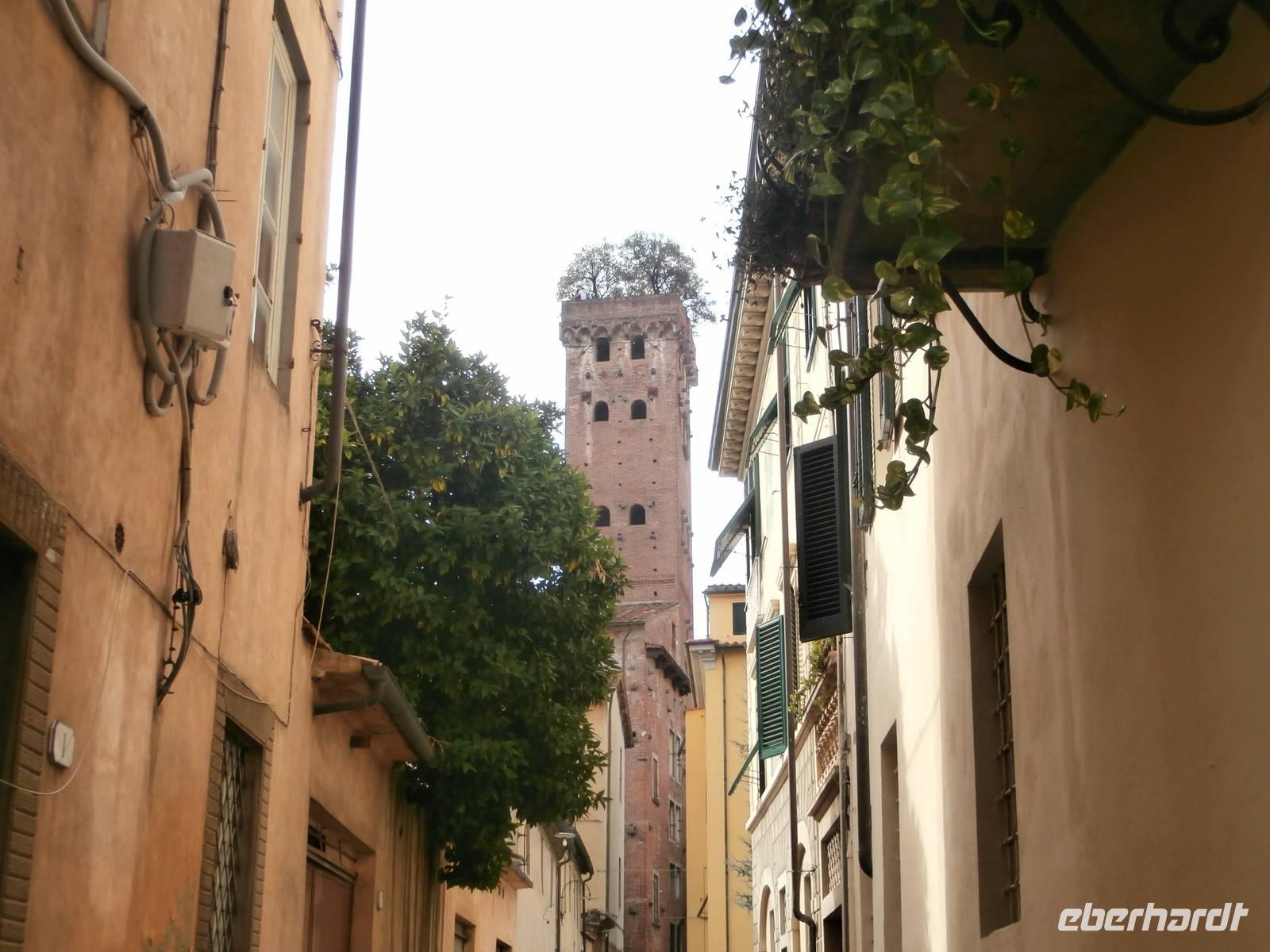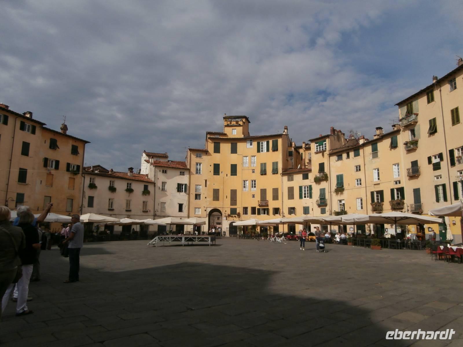 Sonntagmorgen starten wir nach Lucca, wir nehmen unsere örtl. Reiseleitung Frau Nada unterwegs im Bus auf. Lucca ist eine typisch toskanische Stadt, Metropole der Seidenindustrie. Die Altstadt ist umgeben von einem begrünten, ca. 4 km langen Wall mit 11 Bastionen. Trotzdem wirkt die Innenstadt nicht eingeschlossen, sondern hat kleine Plätze, Arkaden, Parks, viele Geschäfte und Restaurants.