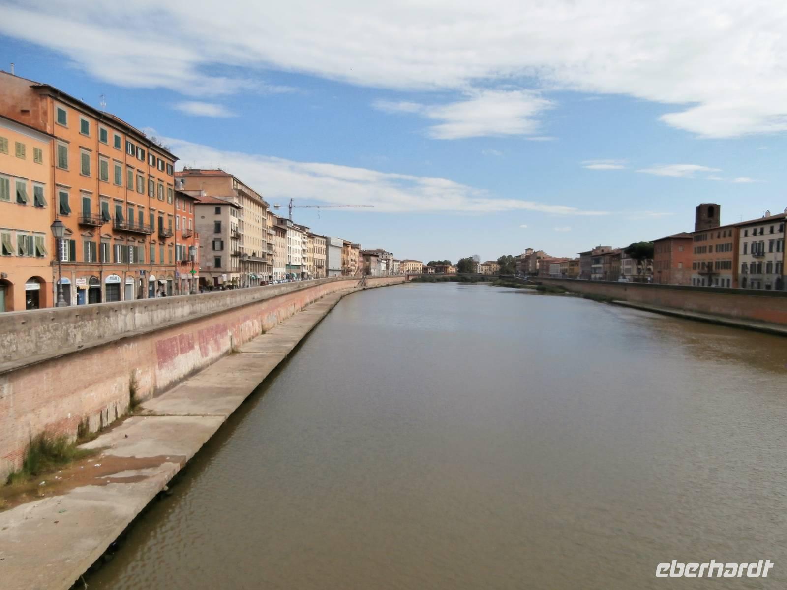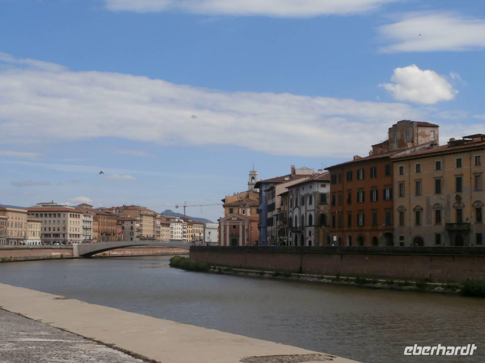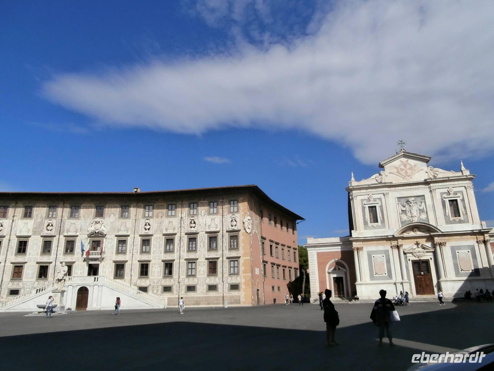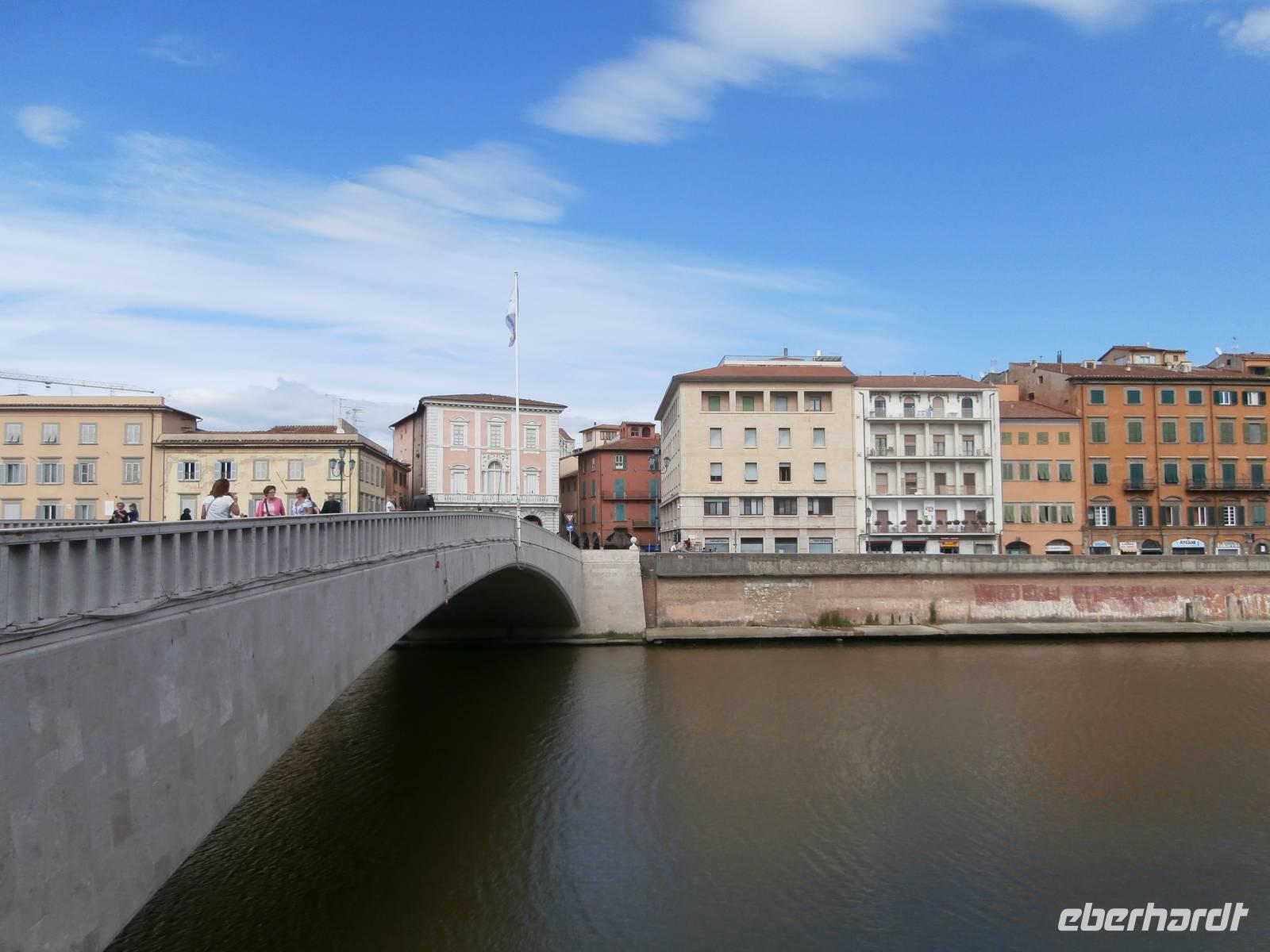 Den Dom St. Martin besichtigen wir während unseres Rundganges mit Nada und wir sehen auch den mit Eichenbäumen begrünten Wohnturm der Guinigi aus dem 14. Jahrhundert. Die Kirche San Michele in Foro ist sehr beliebt bei den Bewohnern der Stadt Lucca. Auf der Kirche oben auf dem fünfstöckigen Aufsatz grüßt der Erzengel Michael. Nach Freizeit und Mittagspause führt unsere Fahrt nach Pisa, die Stadt im Westen der Toskana, in der Nähe des Tyrrhenischen Meeres. Mit einem Shuttlebus gelangen wir vom zentralen Parkplatz zum Campo dei Miracoli, dem Platz der Wunder, mit dem Dom Santa Maria Assunta, dem Baptisterium, dem Schiefen Turm und dem Campo Santo. Die Bauwerke sind alle im 11.-13. Jahrhundert, als Pisa eine der mächtigsten Städte Europas war, entstanden. Der Schiefe Turm begeistert alle von uns, stellt man sich doch die Neigung nicht so extrem vor. Die Schieflage beruht auf dem Untergrund aus lehmigen Morast und Sand, der sich unter Gewicht verformt hat. Nach dem Rundgang auf dem Campo dei Miracoli steigen einige unserer Gäste auf den Schiefen Turm und genießen bei traumhaftem Wetter die Aussicht auf die Umgebung. Bis hin zum Arno, er fließt durch Pisa, sind Gäste gelaufen. Es ist ein fantastischer Aufenthalt in Pisa für die Reisegruppe von Eberhardt Travel. Mit unserem Reisebus gesteuert von Peter Möbius treten wir am Nachmittag die Rückreise zum Hotel in Montecatini Terme an. Heute müssen wir noch Koffer packen, denn am morgigen Montag geht unsere Reise weiter in Richtung Süden an die Küste.