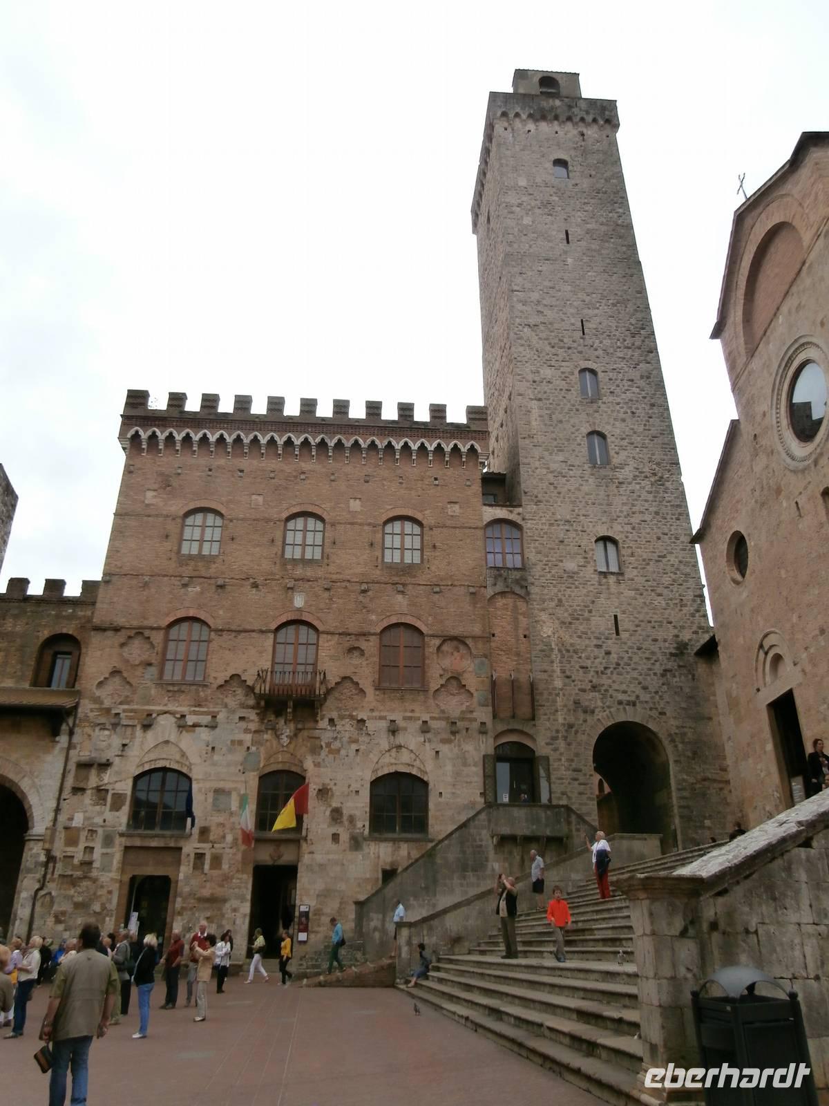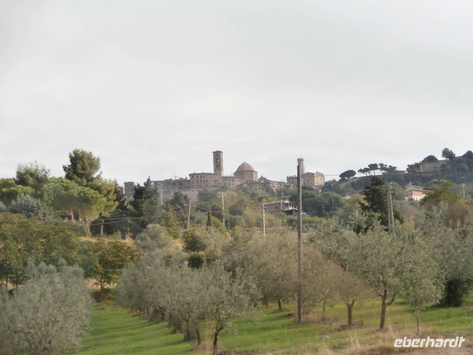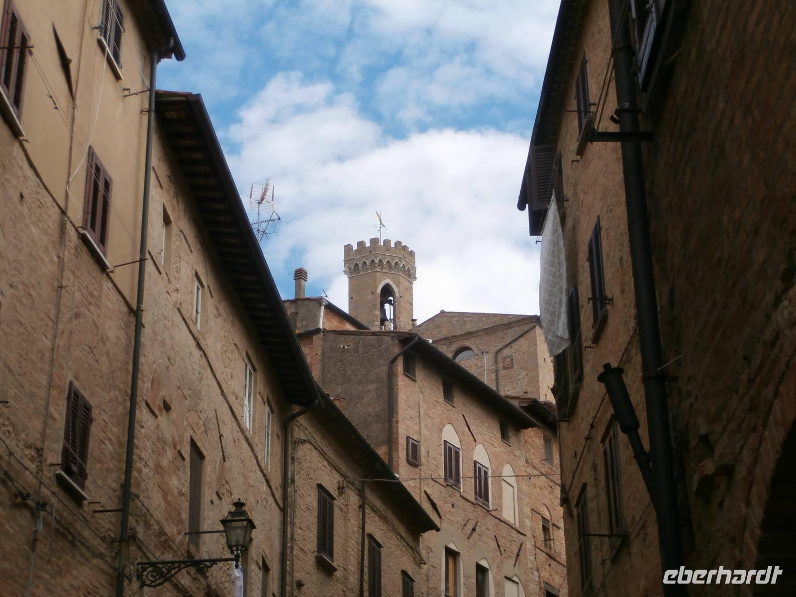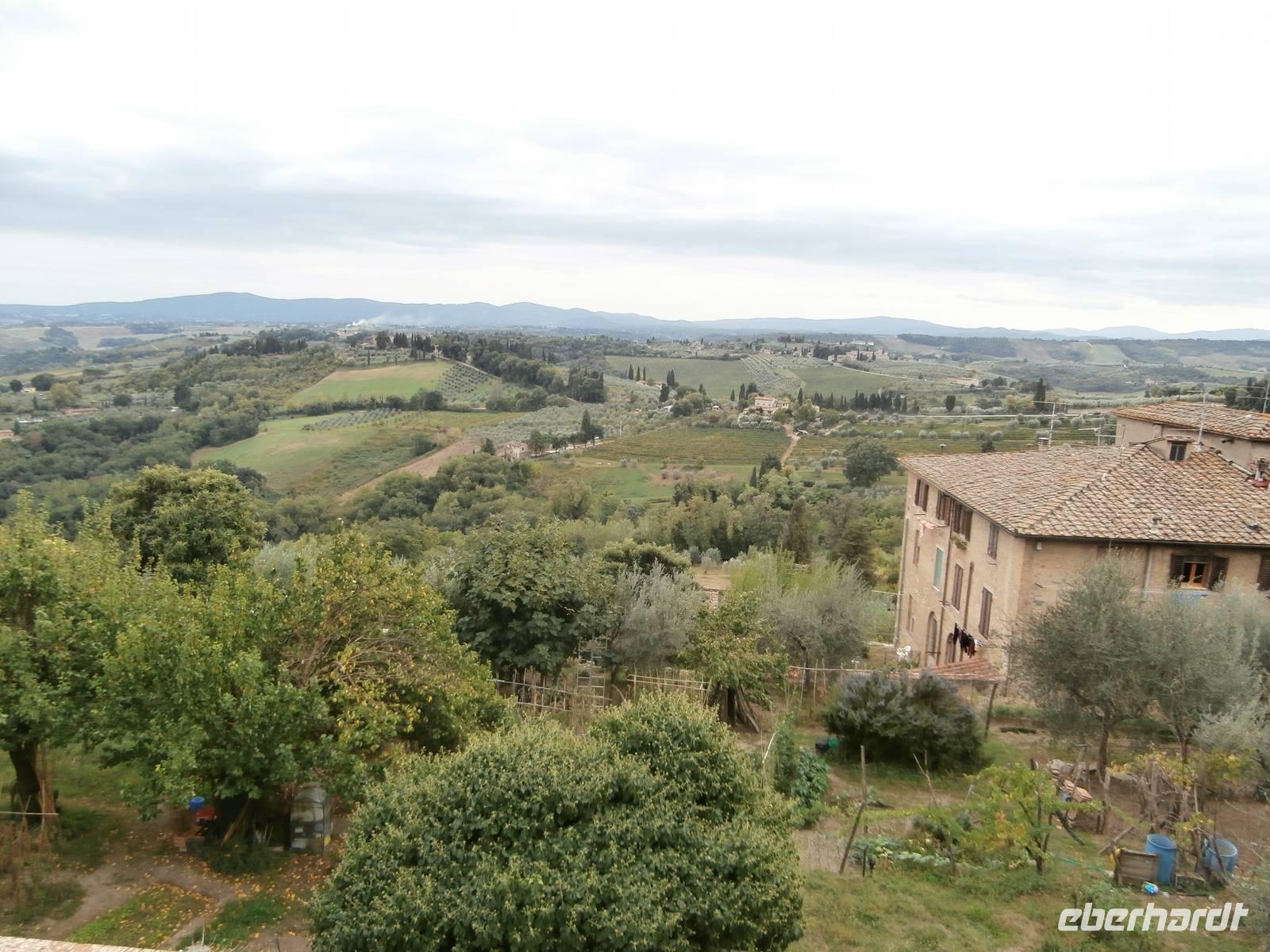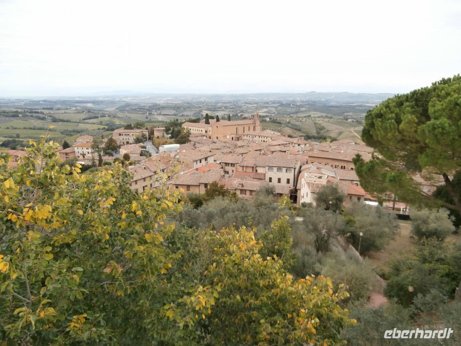 Danach fahren wir nicht sehr weit nur noch bis San Gimignano, der Stadt mit den heute noch 14 Geschlechtertürmen, die sich rivalisierende Adelsfamilien im 12./13. Jahrhundert errichtet haben. 73 waren es am Ende des Mittelalters, später erhielt die Stadt deshalb den Beinamen Manhattan des Mittelalters. San Gimignano ist heute eine sehr