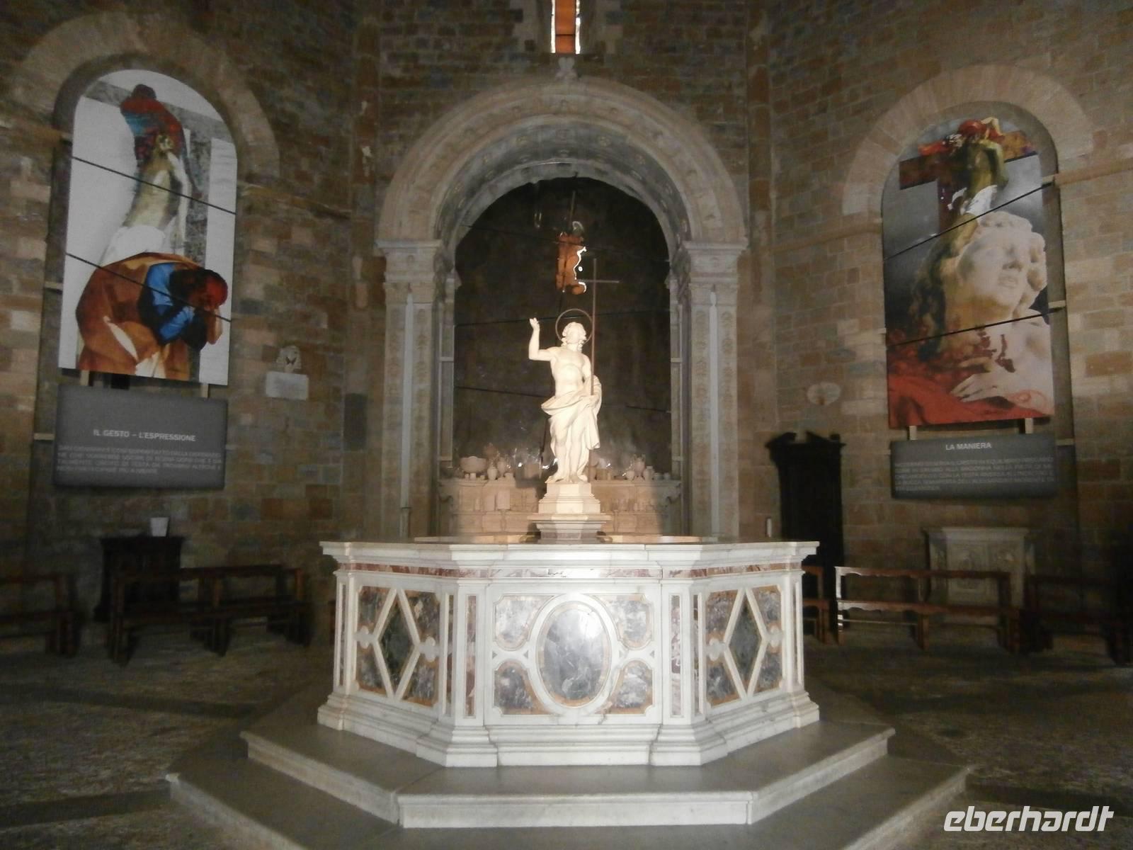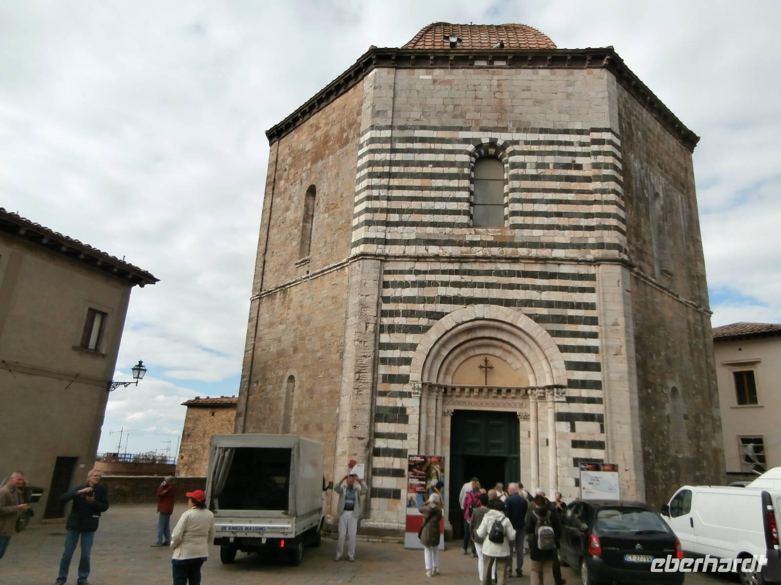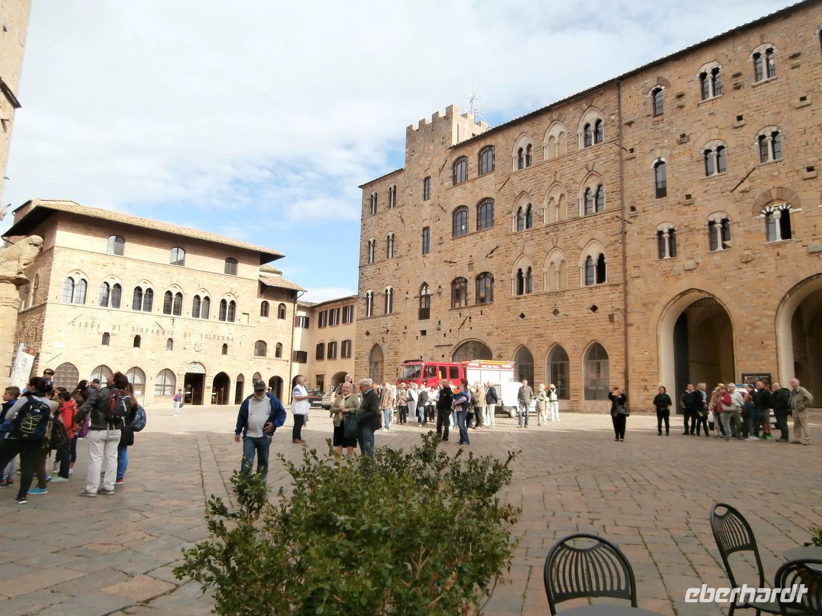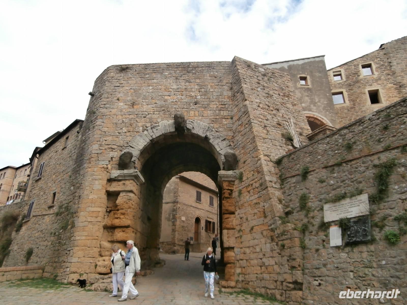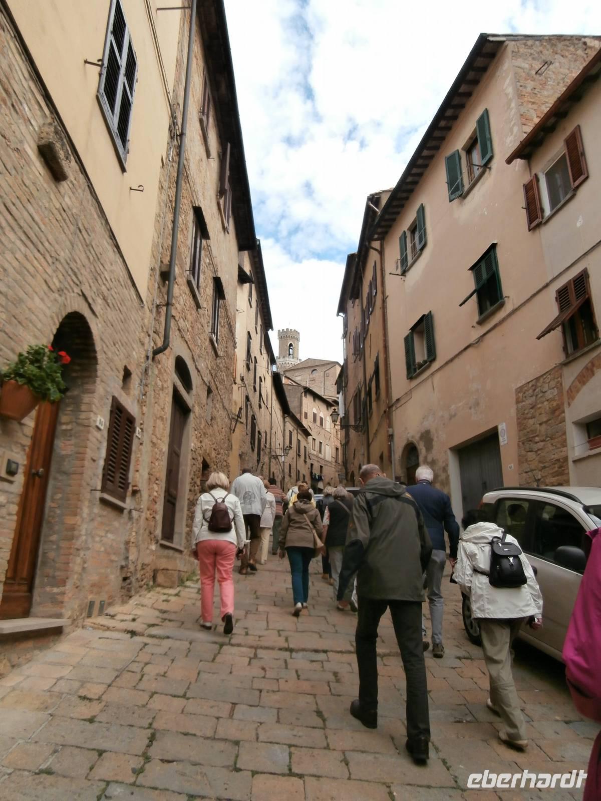 Schon auf unserer Fahrt nach San Vincenzo sehen wir die auf dem Hügel gelegene, ummauerte Stadt mit der Medici-Festung. Heute nun begeben wir uns auf Fahrt, um diese Stadt, eine der alten Hauptstädte der Etrusker, näher kennenzulernen. Volterra hat einen schönen mittelalterlichen Stadtkern. Unsere örtliche Stadtführerin Bettina zeigt uns fast jeden Winkel der Stadt mit Schätzen an bedeutenden historischen Bauwerken. Volterra ist auch die Stadt des Alabasters, wir haben Gelegenheit in einer Werkstatt dem Meister beim Drechseln zuzuschauen. Viele Geschäfte bieten Schmuck, Vasen, Lampen und vieles mehr zum Kauf an. In unserer Freizeit genießen wir das Bummeln durch die kleinen überschaubaren Gassen Volterras. Es gibt in Volterra auch ein Museum etruskischer Kultur, in dem die Sarkophage zu sehen sind, auf denen sich halb liegend und mit dem rechten oder linken Arm abstützend die Grabplastiken der verstorbenen Personen befinden. Mit unserem Bus geht es am frühen Nachmittag zurück. Wir alle freuen uns auf die freie Zeit und da unser Hotel am Meer liegt und Sonne und angenehme Temperaturen herrschen, geht es zum Baden und zum Strandspaziergang.