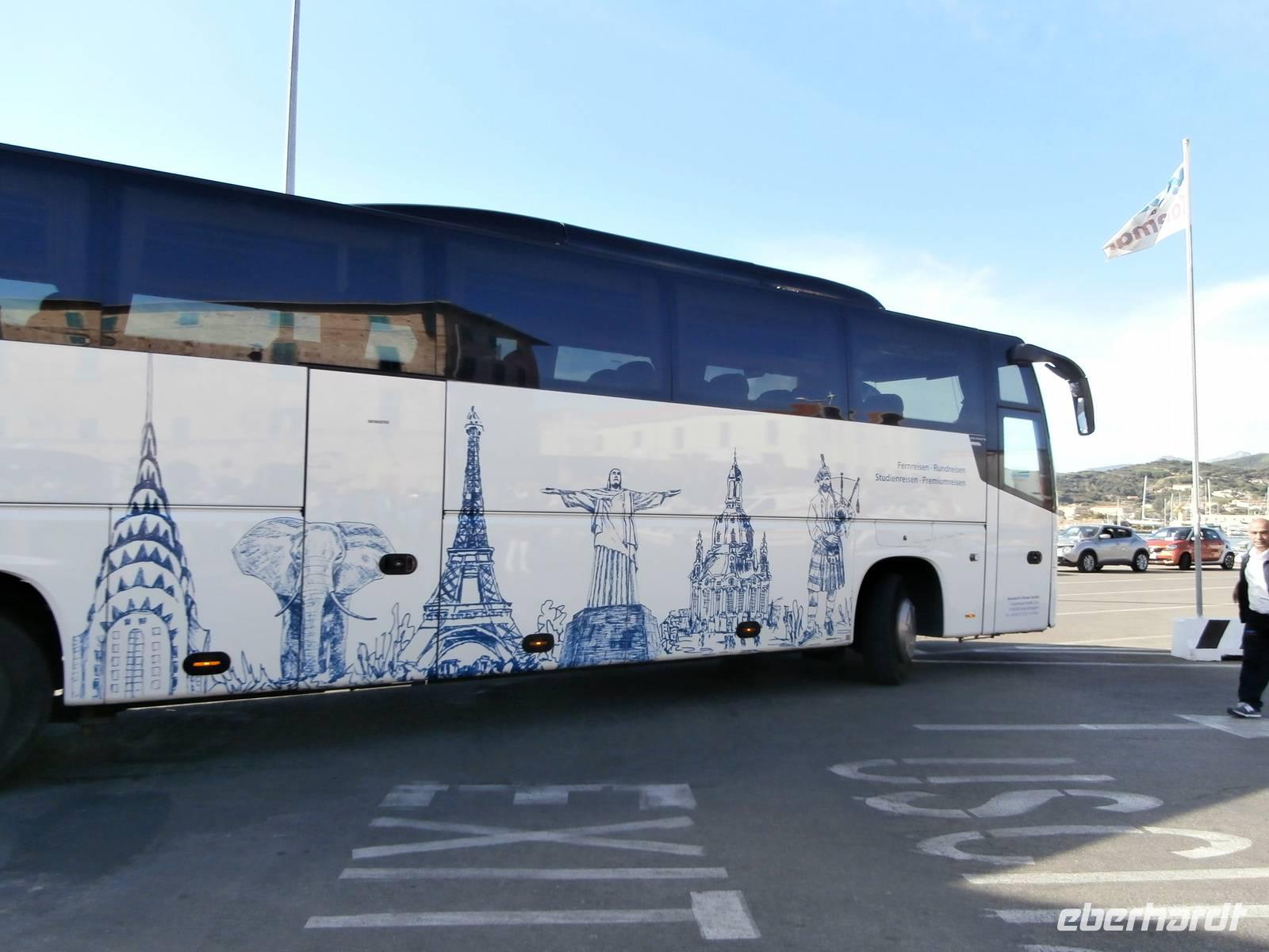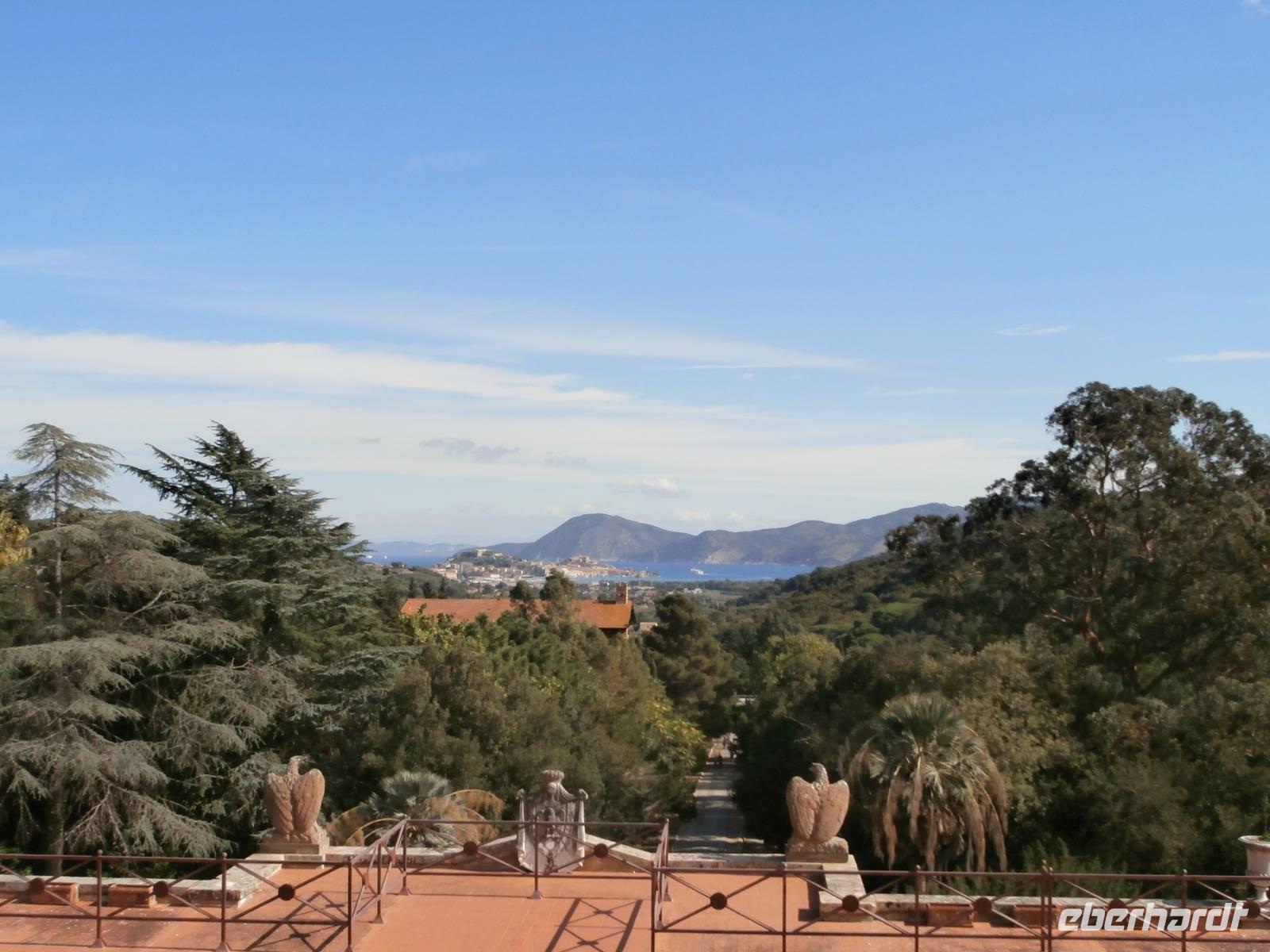 Unsere örtliche Reiseleiterin Jo holt uns im Hotel I Lecci ab und gemeinsam fahren wir in unserem Bus zum Fährhafen Piombino. Schnell ist der Bus im Bauch der Fähre verschwunden und wir nehmen unsere Plätze im Außenbereich ein, bei schönem Wetter haben wir eine tolle Überfahrt hinüber zur Insel Elba. Unsere Inselrundfahrt mit Mittagspause in Marina di Campo wird von Jo Oli als Reiseleitung begleitet. An Napoleon werden wir in seiner Villa erinnert, vor 200 Jahren, vom 4. Mai 1814 bis zum 1. März 1815, kommt Napoleon auf Elba. In seiner Verbannung hätte er gern seine Frau, die Kaiserin und österreichische Erzherzogin Marie Louise und den gemeinsamen Sohn, den König von Rom, bei sich gehabt. Aber es kommt nur seine Geliebte, die polnische Gräfin Marie Walewska mit ihrem Sohn. Nach zwei Tagen gibt es einen Abschied für immer.