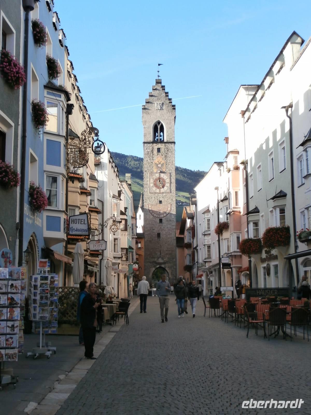 Vorbei an Livorno, La Spezia, Parma, Cremona, Brescia und der Südspitze des Gardasees geht unsere Fahrt bis Sterzing. Wir haben ein wunderbares Reisewetter, das in Südtirol mit blauen Himmel und klarer Sicht auf die Dolomiten und im Speziellen den Rosengarten lockt. Saftig grüne Wiesen, Obstbäume und die Weinberge Südtirols lassen wir an uns vorüberziehen. Die Ankunft in Sterzing ist zeitlich gut und so nutzen wir die Zeit für einen Aufenthalt in dieser schönen Kleinstadt mit Fußgängerzone und Zwölferturm. Es wird eingekauft und auch zum Eis essen ist Zeit. Im Hotel Brenner fühlen wir uns gleich wieder wohl, hier waren wir schon bei Anreise für eine Nacht.