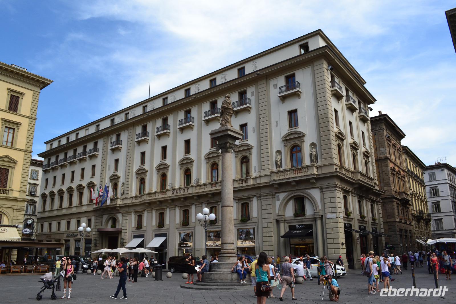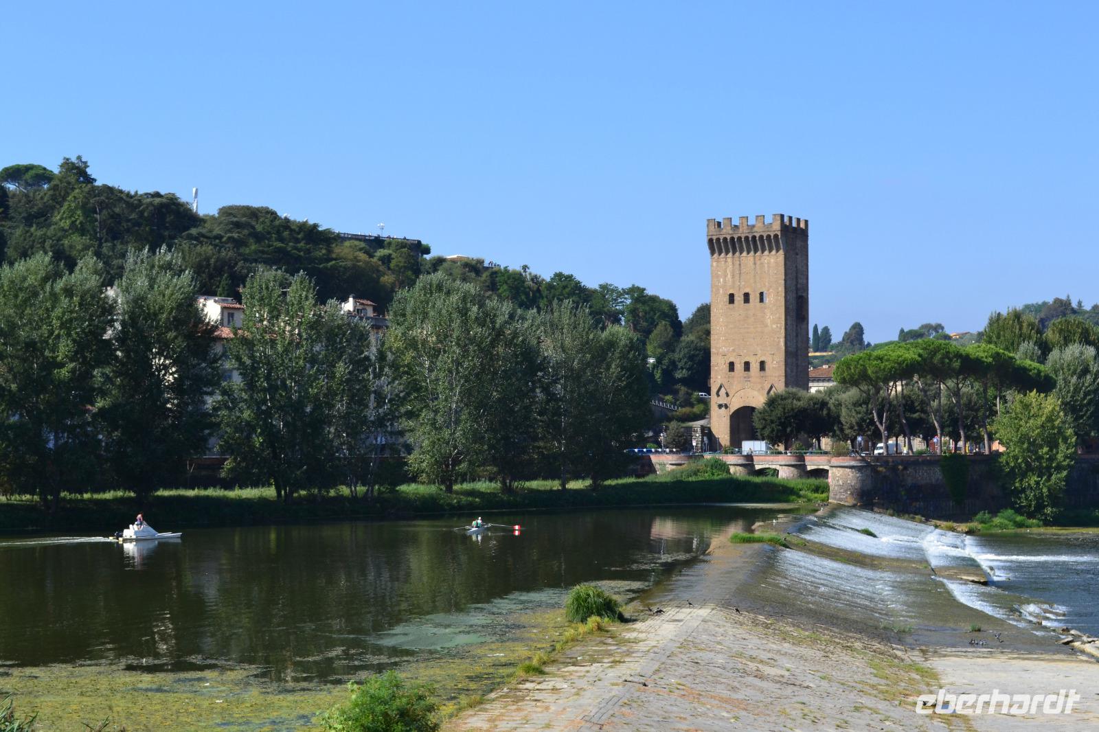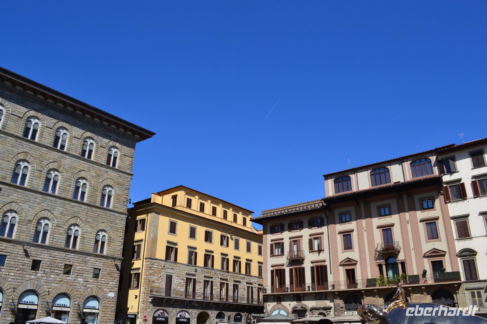 Vom "Elbflorenz" Dresden bis ins "richtige" Florenz hat uns unsere Reise schon geführt. Heute stürzen wir uns kopfüber hinein in die Intrigen der Familie Medici, das Florenz der Zeit Dantes, die Machtkämpfe zwischen Kaisertreuen und Papstanhängern. Zunächst verschaffen wir uns vom Piazzale Michelangelo aus einen Überblick über das Stadtpanorama. Dann geht es wieder hinunter ans Ufer des Arno, wo wir den Bus verlassen und mit der Stadtführung beginnen. Unser Stadtführer Matthias beeindruckt mit seinem unheimlichen Fachwissen und zieht uns schnell in seinen Bann. An der Nationalbibliothek vorbei laufen wir langsam in Richtung Piazza della Signoria, wo sich das Rathaus der Stadt, der Palazzo Vecchio, befindet. Wir besichtigen den Innenhof des Rathauses und der Uffizien, bevor wir in einem Bogen wieder auf dem Piazza della Signoria ankommen und uns zur Mittagspause verabschieden.