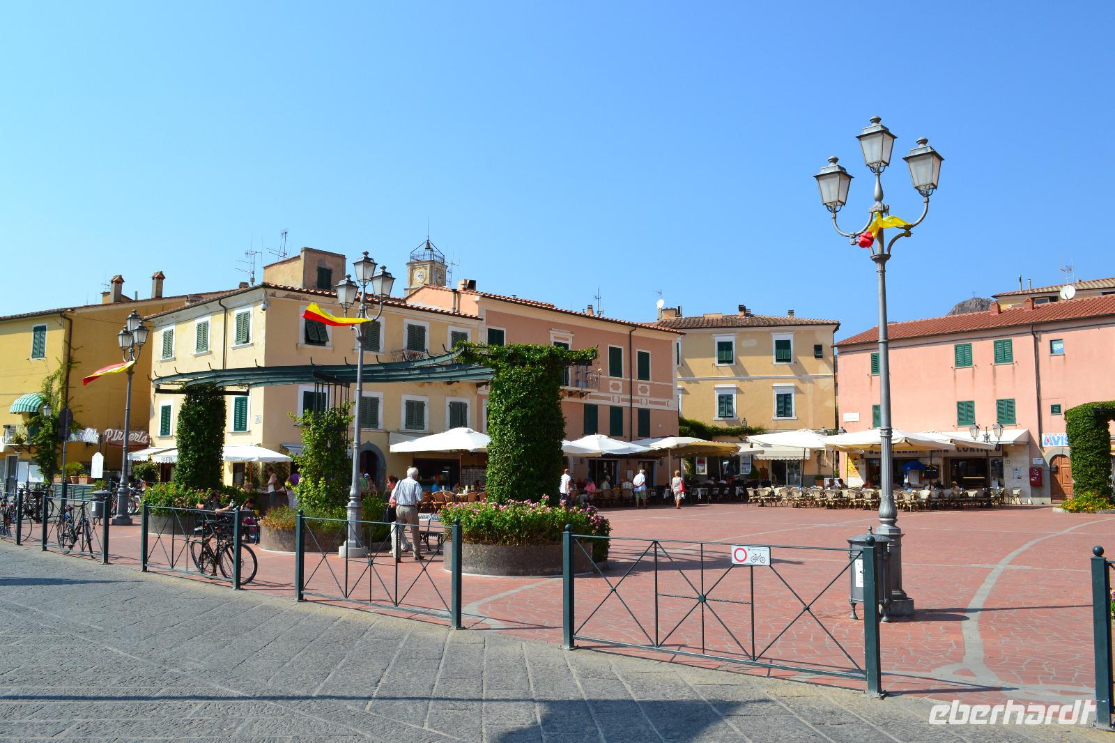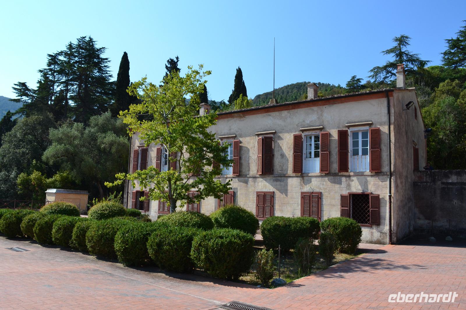 Wir werden den ganzen Tag auf der Insel Elba verbringen. Soviel ungeteilte Aufmerksamkeit wäre sicher ganz im Sinne des "kleinen Franzosen" gewesen, der hier nicht einmal 10 Monate im Exil verbrachte. Doch vom Großteil der Einwohner wird Napoleon auch heute noch verehrt, überall werden wir seine Flagge mit den drei fleißigen Bienen wehen sehen. Vielleicht sind die Einwohner aber auch nur gewiefte Geschäftsleute, denn mit dem Namen "Napoleon" lassen sich natürlich immer Touristen anziehen. Am Hafen von Piombino winkt uns schon unsere örtliche Reiseleiterin Jo Oli zu. Wir sollen uns beeilen, wir schaffen sogar noch die Fähre 9:00 Uhr, eine halbe Stunde früher als geplant. Bei strahlendem Sonnenschein und wieder mehr als 30 Grad erkunden wir zunächst die Sommerresidenz Napoleons, die Villa San Martino, ein umgebautes Bauernhaus. Doch von hier aus hatte Napoleon den Hafen im Blick unter konnte alle ein- und ausfahrenden Schiffe beobachten. Danach widmen wir uns voll und ganz der herrlichen Landschaft und genießen den Blick hinunter in paradiesische Meeresbuchten. In Marina di Campo machen wir eine Mittagspause. Anschließend fahren wir weiter nach Porto Azzurro, wo wir eine weitere Pause einlegen, und dann zurück zur Fähre nach Portoferraio. Durch die Maremma geht es zurück zum Hotel, wo wir den Abend wie immer bei einem Drei-Gänge-Menü ausklingen lassen.