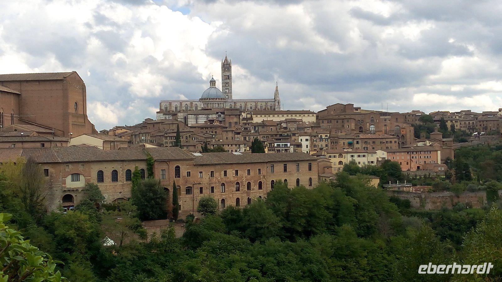 Zufrieden setzen wir unsere Fahrt durch die schöne Toskana fort und kommen in der schönsten (für mich) Stadt der Toskana an. In Siena an der Fortezza werden wir schon von unserer Stadtführerin Susanne erwartet. Nach einem kurzen Weg besuchen wir die