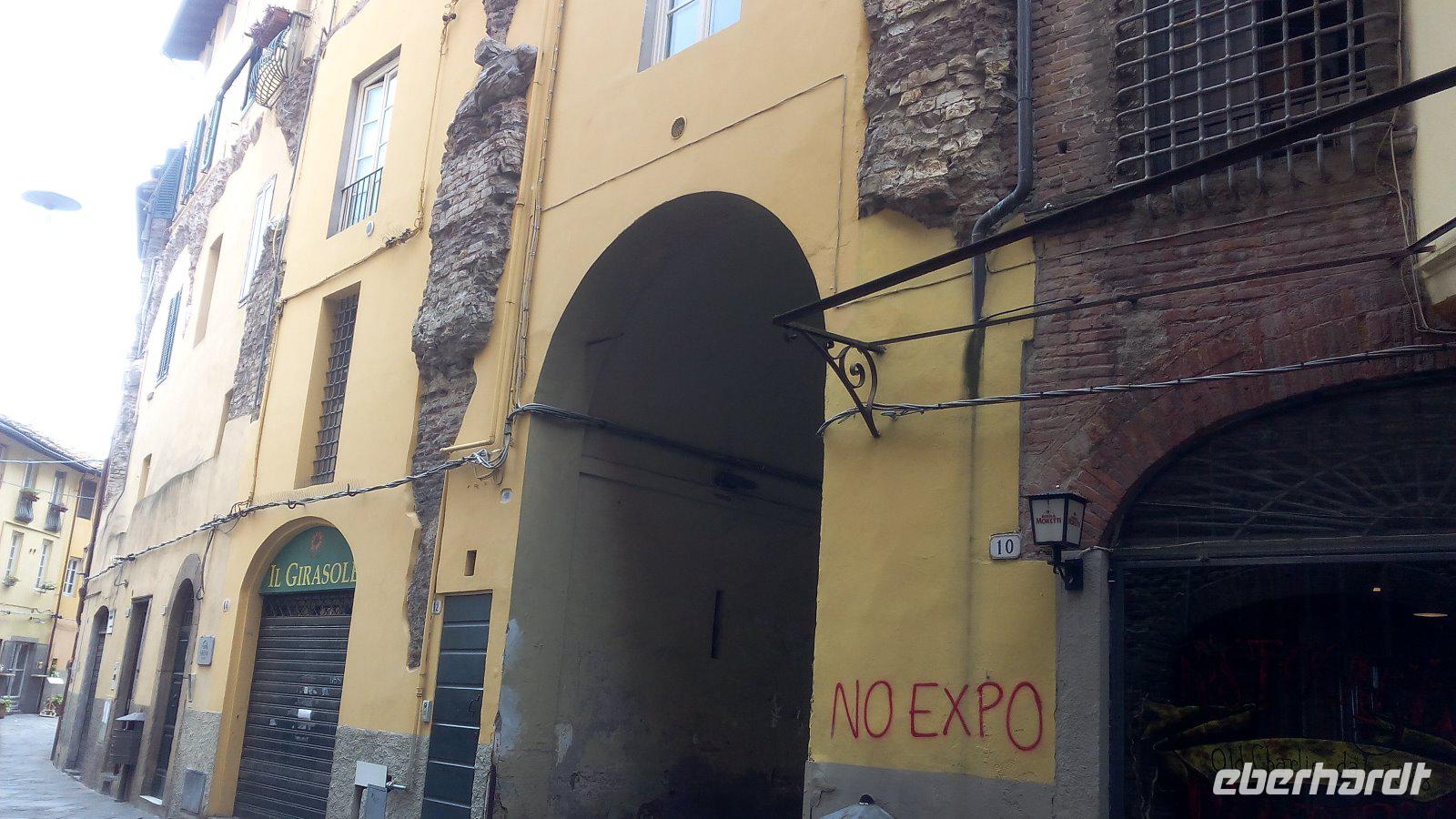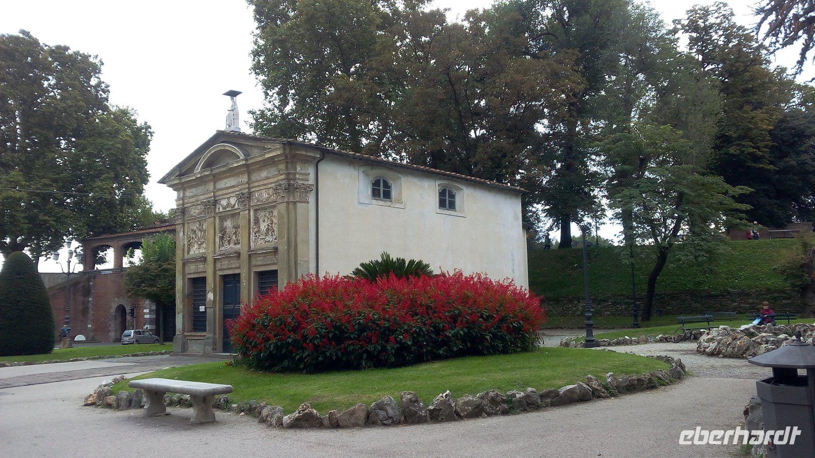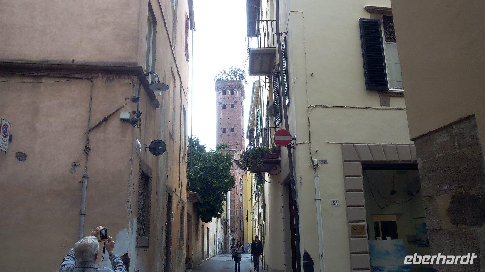 Wir haben Glück und schönes Wetter. Bevor wir nach Lucca fahren verlassen wir unsere Fahrstrecke und holen in Chiesina unsere Stadtführerin Nada ab. Eine temperamentvolle Italienerin und ein Sprachgenie. Sie beherrscht nicht nur die deutsche Sprache in Hochdeutsch, sondern möchte von uns auch noch ein paar sächsische Wörter lernen.