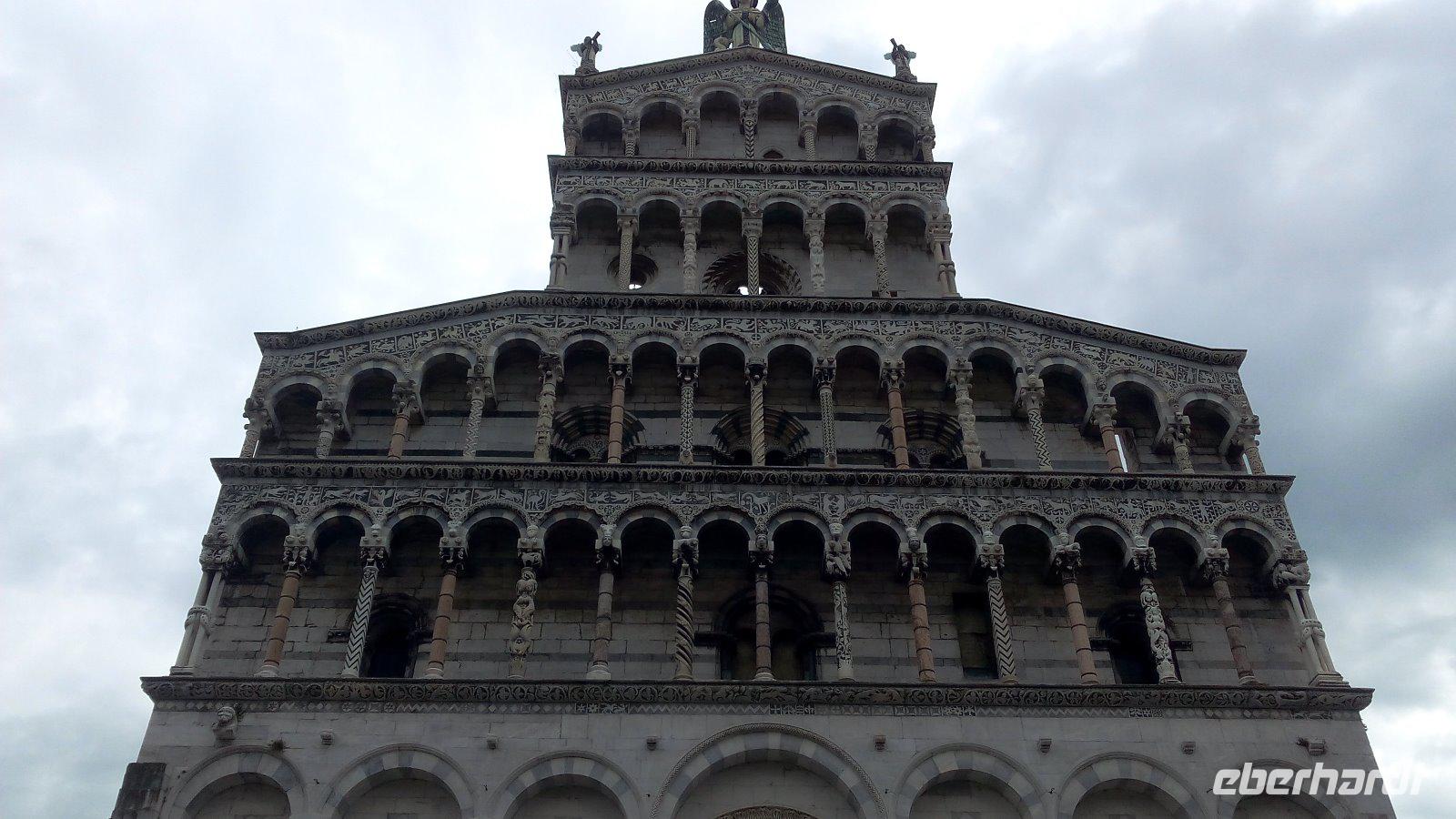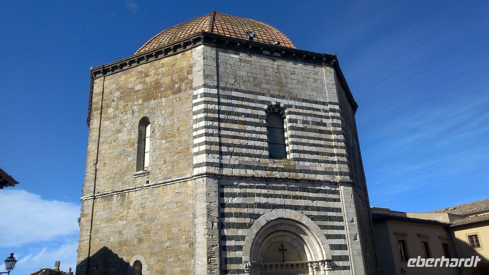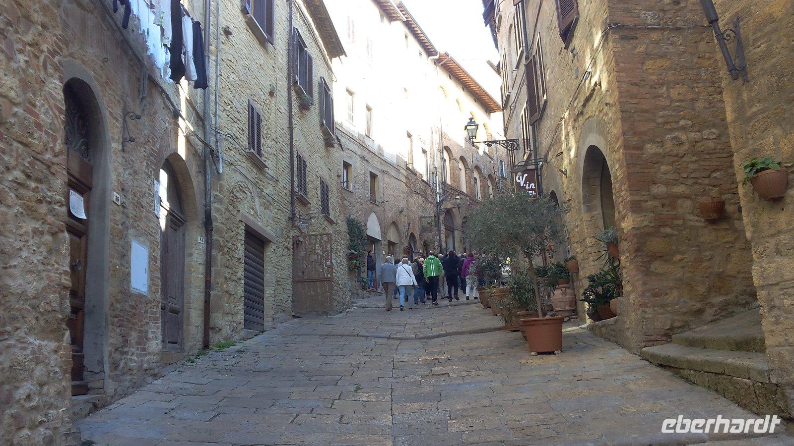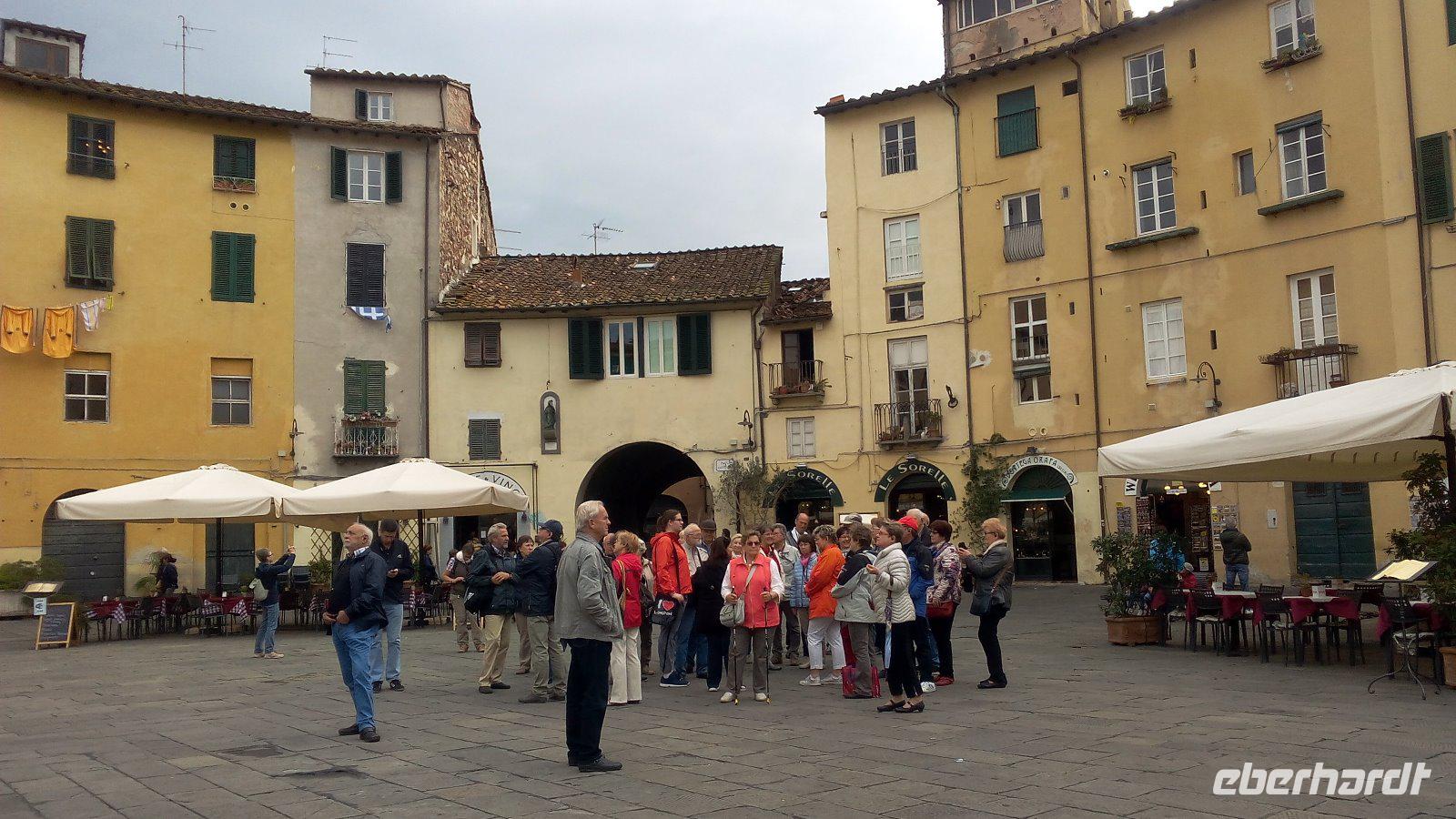 Wir nehmen das Tor San Pietro, um in das Innere der Stadt zu gelangen. Die gewaltige rund 4 km lange Stadtmauer kann man gut entlang wandern. Nada informiert, das die Stadt, die unter den Goten und Langobarden Hauptstadt der Toskana war, eine der schönsten Städte der Toskana ist. Wir spazieren u.a. am Denkmal für Puzzini vorbei zum Piazza Michaele. Einer der schönsten Plätze der Toskana ist Piazza del Mercato, auf dem man den Wandel vom Amphitheater zum Marktplatz erkennen kann. Nach der Stadtführung lassen wir uns Zeit, die Stadt individuell zu erkunden.
