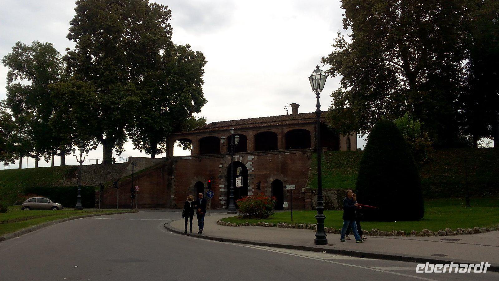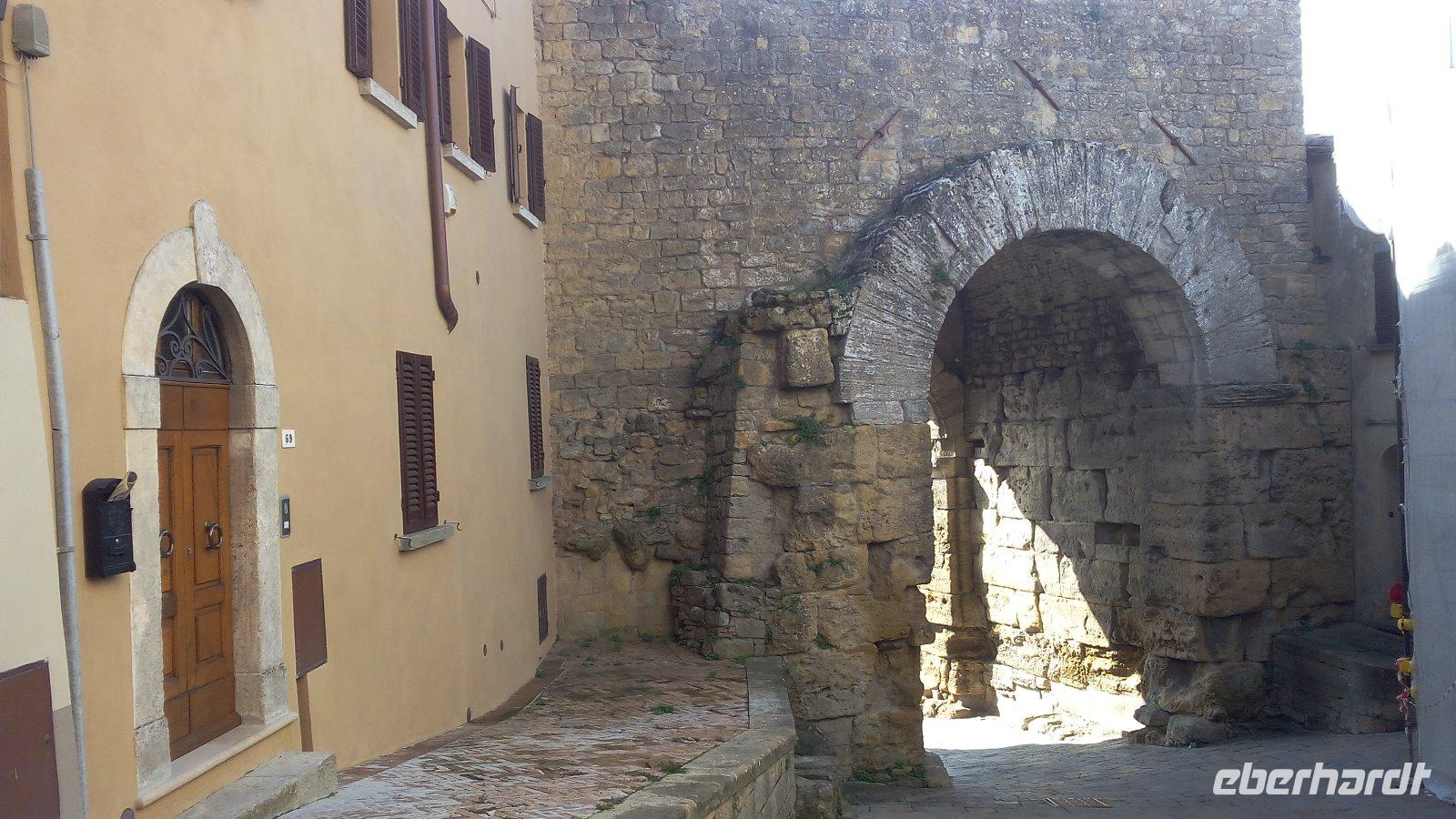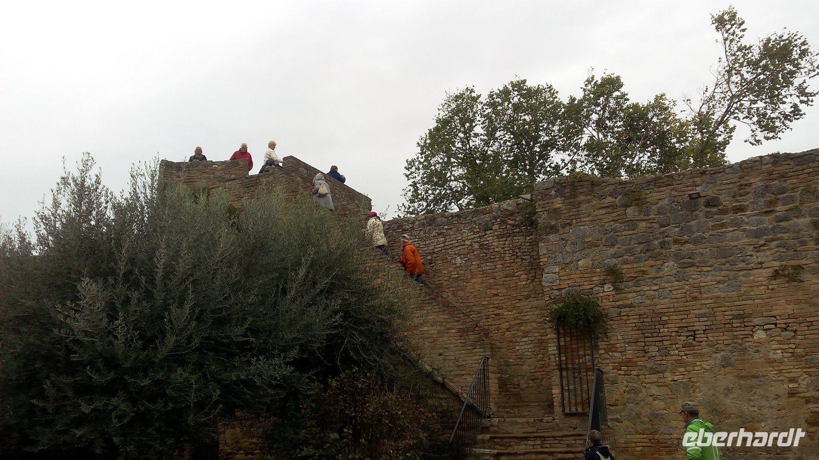 zu gelangen. Entlang der Stadtmauer kommen wir zum Tor des Platzes.