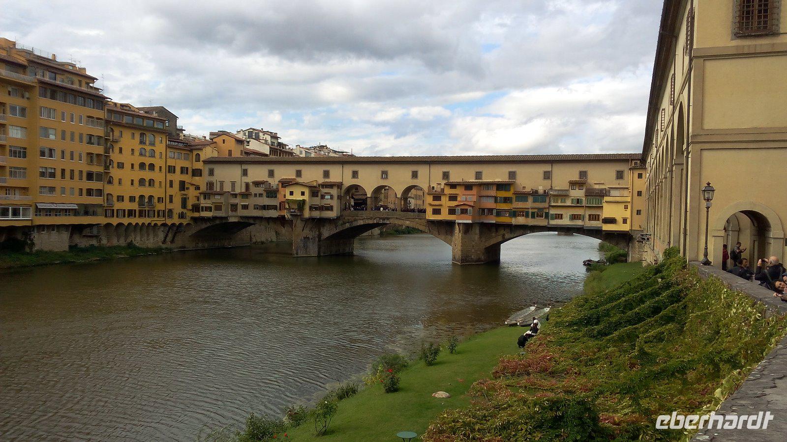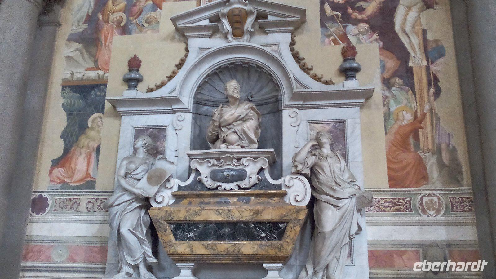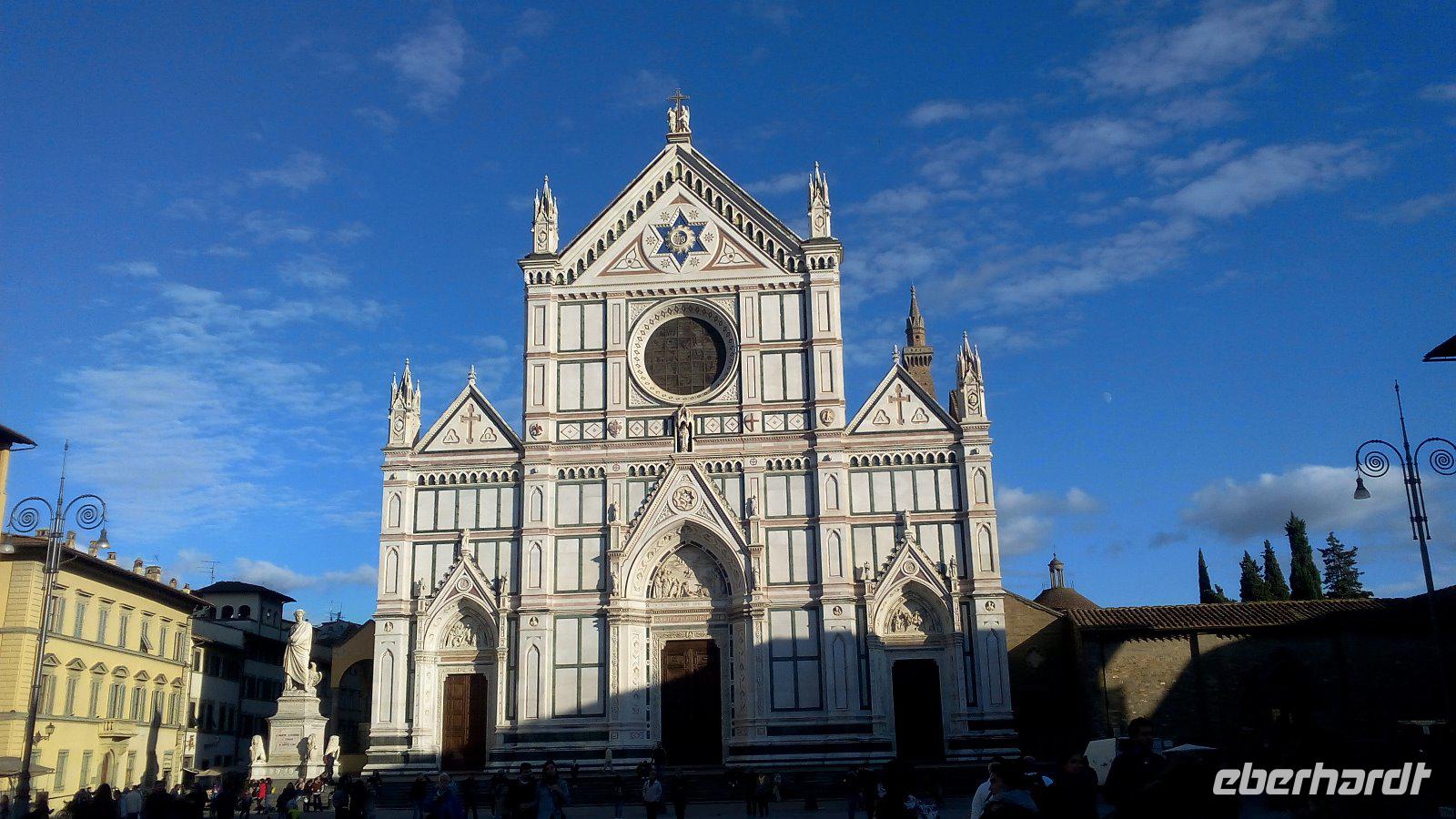 In Florenz treffen wir uns mit unserer Stadtführerin Angela Solda zu Beginn unserer Stadtführung fahren wir mit dem Bus zum Migelangelo Platz. Es ist schön auf dem Balkon der Stadt zu stehen und die unterschiedlichen Gebäude von "oben" zu sehen. Diesen Moment halten wir auf unserem Gruppenbild fest. Nachdem wir wieder am Torre della Zecca angekommen sind, spazieren wir entlang des Arno zur Nationalbibliothek, zum Piazza S.Croce. Wir haben eine Führung in der Kirche S. Croce, in der man die Gräber bedeutender Persönlichkeiten, wie z.B. Michelangelo und Galilei, sieht. Unser Rundgang führt uns weiter zum Piazza Della Signoria, den Uffizien, zur Ponte Viccio die älteste Brücke der Stadt (14Jh) auf der heute die Goldgeschäfte die Kunden in ihren Bann ziehen. Nach einer Mittagspause sehen wir den Piazza del Duomo mit der Cathedrale di S. Maria del Flore(Dom). Glück haben wir an der Taufkapelle(Baptisterium) um die Paradies-Tür am Ostportal sehen zu können. In den goldenen Tafeln (Kopien) werden Szenen des Alten Testaments in perfekter tiefenräumlicher Darstellung mit lebendiger Mimik und Gestik gezeigt.(Originale entstanden zwischen 1425-1452). Nach einem Blick auf das Babtistero San Giovanni, den Dom Santa Maria Del Flore mit dem Campanile endet unsere Stadtführung. Gegen 17:00 Uhr treffen wir uns wieder am Bus und sind uns einig, Florenz erfordert weitere Besuche um die Stadt in ihrer ganzen Schönheit aufnehmen zu können.