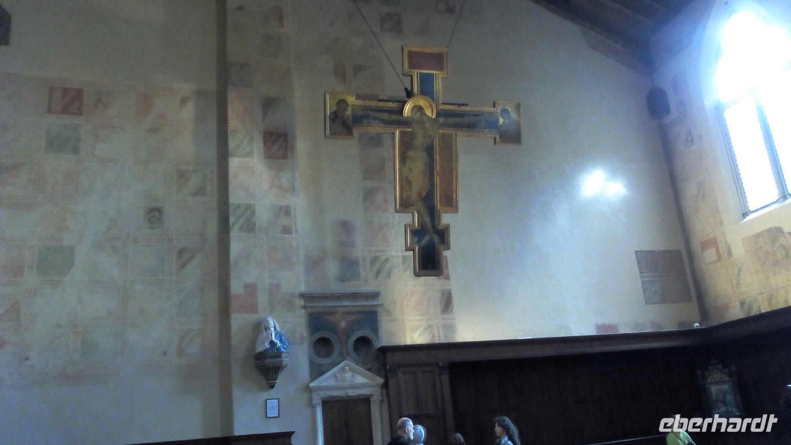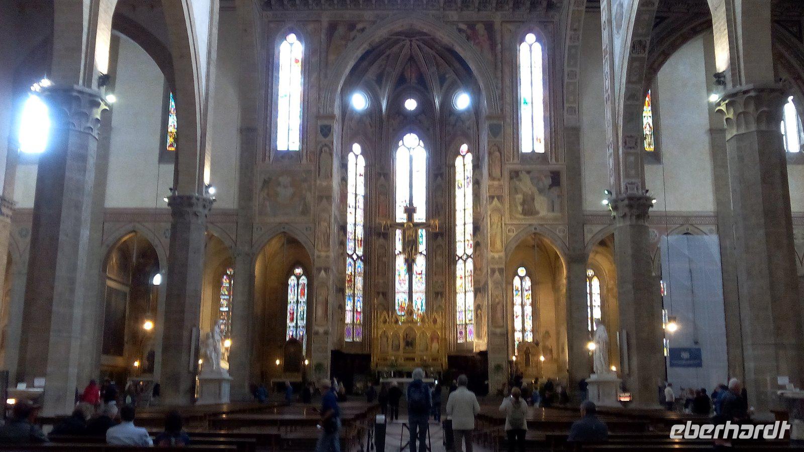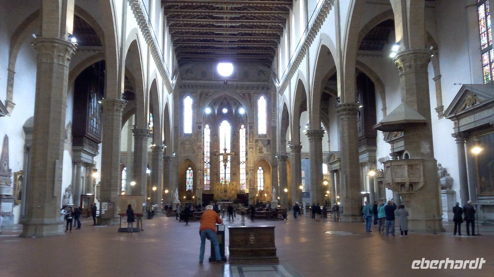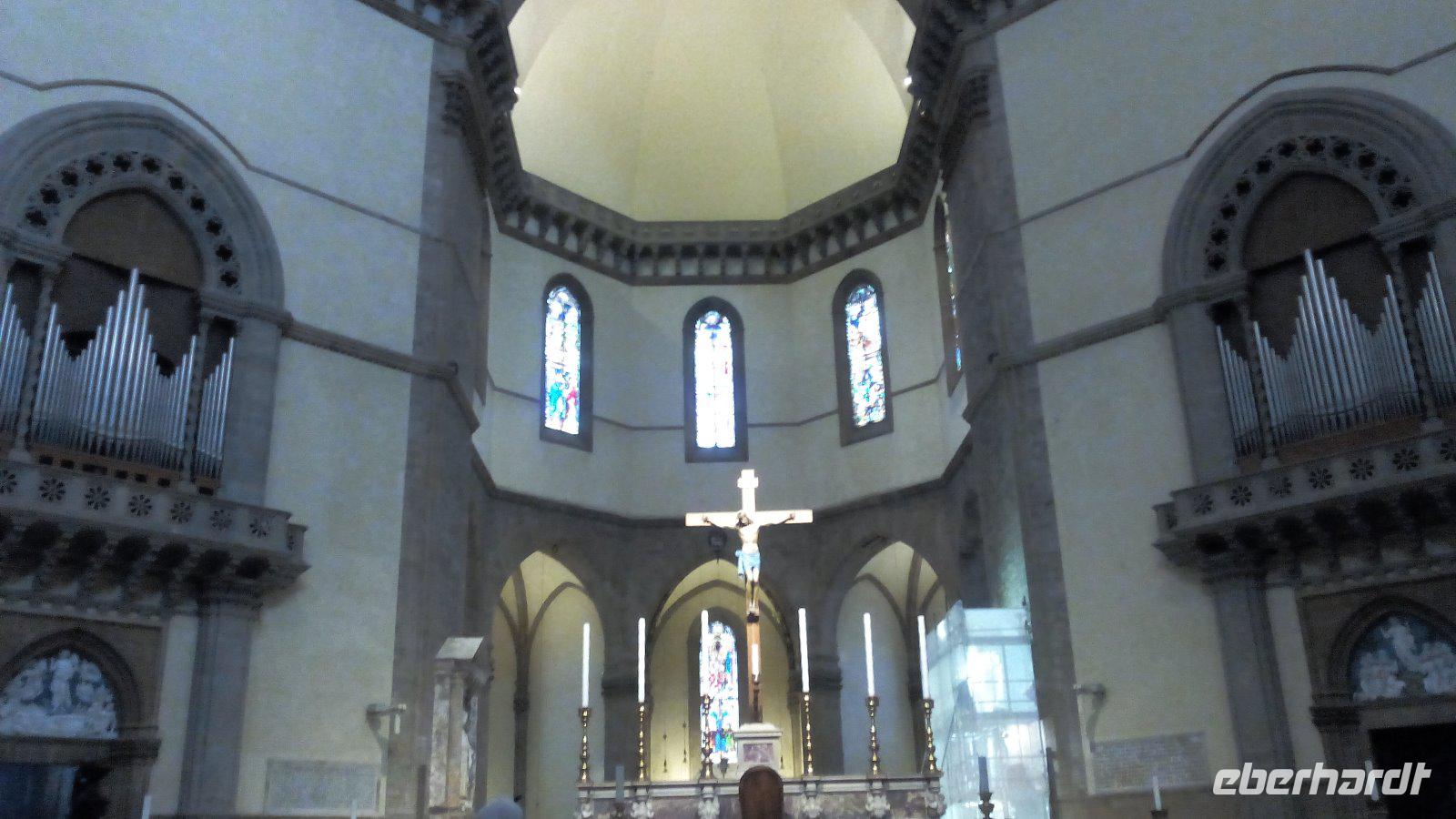 In Florenz treffen wir uns mit unserer Stadtführerin Angela Solda zu Beginn unserer Stadtführung fahren wir mit dem Bus zum Migelangelo Platz. Es ist schön auf dem Balkon der Stadt zu stehen und die unterschiedlichen Gebäude von "oben" zu sehen. Diesen Moment halten wir auf unserem Gruppenbild fest. Nachdem wir wieder am Torre della Zecca angekommen sind, spazieren wir entlang des Arno zur Nationalbibliothek, zum Piazza S.Croce. Wir haben eine Führung in der Kirche S. Croce, in der man die Gräber bedeutender Persönlichkeiten, wie z.B. Michelangelo und Galilei, sieht. Unser Rundgang führt uns weiter zum Piazza Della Signoria, den Uffizien, zur Ponte Viccio die älteste Brücke der Stadt (14Jh) auf der heute die Goldgeschäfte die Kunden in ihren Bann ziehen. Nach einer Mittagspause sehen wir den Piazza del Duomo mit der Cathedrale di S. Maria del Flore(Dom). Glück haben wir an der Taufkapelle(Baptisterium) um die Paradies-Tür am Ostportal sehen zu können. In den goldenen Tafeln (Kopien) werden Szenen des Alten Testaments in perfekter tiefenräumlicher Darstellung mit lebendiger Mimik und Gestik gezeigt.(Originale entstanden zwischen 1425-1452). Nach einem Blick auf das Babtistero San Giovanni, den Dom Santa Maria Del Flore mit dem Campanile endet unsere Stadtführung. Gegen 17:00 Uhr treffen wir uns wieder am Bus und sind uns einig, Florenz erfordert weitere Besuche um die Stadt in ihrer ganzen Schönheit aufnehmen zu können.