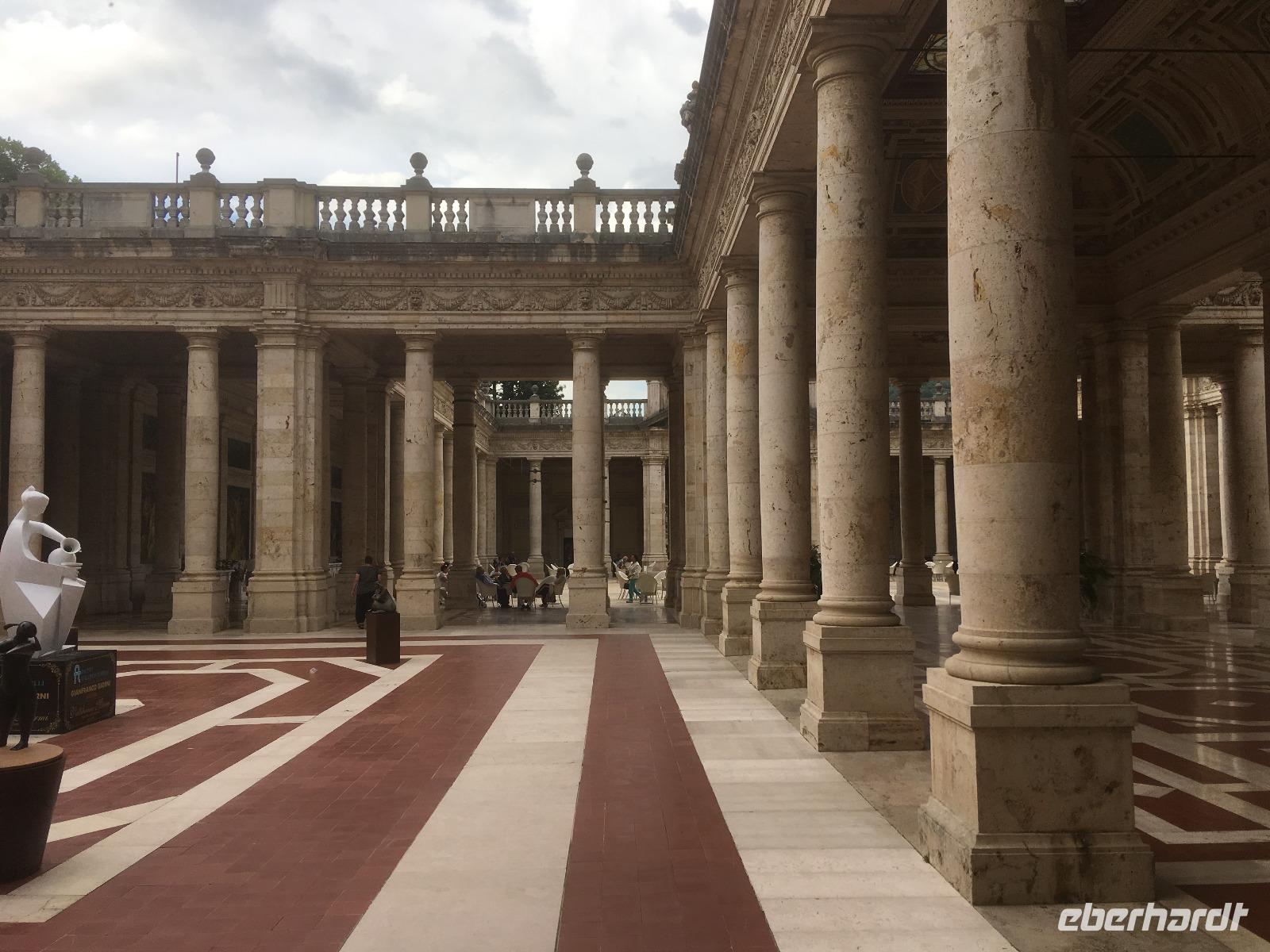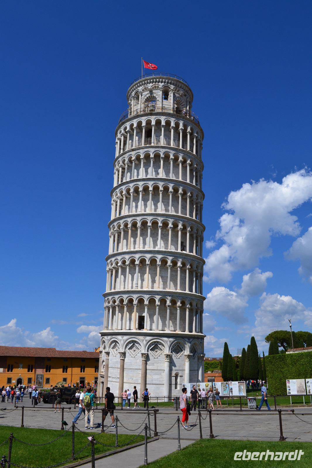 Nach dem Frühstück fahren wir wieder auf die Brennerautobahn und setzen unsere Reise in die Toskana fort, vorbei an der Franzensfeste, an Brixen, Bozen und Trient. Apfelplantagen und Weingüter säumen die Berghänge rechts und links, und immer wieder thront eine kleine Burg auf einem Hügel. Die Reise über den Brenner, die vor uns schon viele andere berühmte Persönlichkeiten unternahmen, wie Goethe, Wagner oder Kaiser Barbarossa, ist immer wieder ein Erlebnis. Dann erreichen wir die Po-Ebene, und mit einem Mal wird die Landschaft flach wie ein Brett. Wir fahren an Verona und Mantua vorbei (nicht ohne an Shakespeares „Romeo und Julia" zu denken), folgen der alten Römerstraße Via Emilia in Richtung Modena, und biegen dann bei Bologna auf die Autobahn durch die Apenninen ab. Wir nehmen die neue, direkte Route, die uns zur dramatischen Musik von Pavarotti, der in Modena geboren wurde, durch viele Tunnel und tief unter die Erde führt. Der längste Tunnel ist über acht Kilometer lang. Wir sind froh, als er am Ende wieder ans Tageslicht und nicht direkt in Dantes Hölle führt. Dann haben wir unsere Zielregion erreicht: die wunderschöne Toskana! Florenz liegt direkt vor uns, muss sich aber noch ein paar Tage gedulden, bis wir ihm einen Besuch abstatten. Heute fahren wir erst einmal direkt weiter bis nach Pisa, das wir am frühen Nachmittag erreichen. Natürlich freuen sich meine Gäste alle auf den berühmten „Schiefen Turm". Eine Ironie der Geschichte, dass es ausgerechnet der Campanile ist, der heute so viele Besucher aus aller Welt anzieht, und viele klimpernde Münzen in die Stadtkasse von Pisa spült. Dem ersten Architekten war die Sache so peinlich, dass er seinen Namen von allen Dokumenten tilgen ließ, als sich der Turm zu neigen begann. Auch die Stadt Pisa war wenig erfreut, wollte man doch eigentlich den großen Konkurrenten Genua, Lucca, Siena und vor allem Florenz beweisen, dass man die größte aller toskanischen Städte ist! Immerhin konnte Galileo Galilei vom Turm aus dann später seine Fallversuche durchführen. Der von der alten Stadtmauer umrahmte „Platz der Wunder" in Pisa hat aber noch viel mehr und vor allem größere Gebäude zu bieten - den beeindruckenden Dom, den alten Friedhof und das Baptisterium, die größte Taufkirche der Christenheit. Wir haben Glück und können für die ganz mutigen unter uns Eintrittskarten für den Turm ergattern. Alle anderen haben Gelegenheit, sich zur Abkühlung das erste Gelato auf dieser Reise zu kaufen. Nachdem wir uns sattgesehen und -gegessen haben, fahren wir in die altehrwürdige Kurstadt Montecatini Terme, wo wir für vier Nächte unser Quartier beziehen. Vor dem Abendessen spendiert uns das Hotel sogar einen Willkommenstrunk, und wir können auf der Terrasse die Abendsonne genießen.