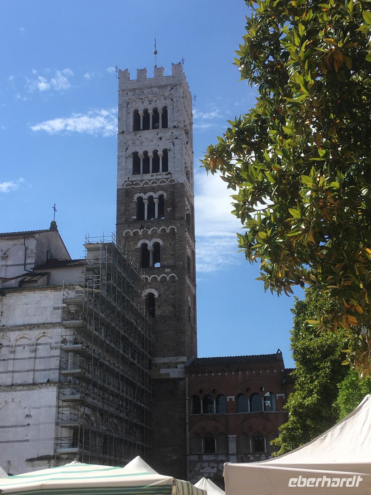 Lucca stellt unter den toskanischen Städten eine Besonderheit dar. Nicht nur konnte sich Lucca bis zuletzt erfolgreich den Expansionsbestrebungen von Florenz widersetzen. Unter den Goten und Langobarden war es zudem die Hauptstadt der Toskana. Auch unter Napoleon kam Lucca eine wichtige Rolle zu. Meine sehr herzliche und temperamentvolle italienische „Mama", Nada, legt gleich munter los und führt uns in der Chiesa dei Santi Paolino e Donato mit einem amüsanten Exkurs in die Stadtgeschichte ein. Anschließend haben wir alle eine Verabredung mit dem schönsten Mann von Lucca, Giacomo Puccini, sehen die Kirche San Miguele en Foro und spazieren zum Domplatz. Heute ist in der Altstadt ein großer Antiquitätenmarkt. Wir könnten herrliche alte Möbel und sogar Springbrunnen erwerben. Doch unser Interesse gilt den alten Gemäuern, wie der Kirche San Frediano mit ihrem schönen Mosaik, die einem irischen Mönch geweiht ist, oder der Piazza del Mercato, die auf den Überresten des alten römischen Amphitheaters erbaut wurde und dessen ovale Form widerspiegelt. Hier beenden wir auch die Stadtführung, was etwas gemein von Nada ist, denn der Geruch von frischer Pasta und Pizza kitzelt in der Nase. Es fällt schwer zu widerstehen... Neu im Programm ist der Zitronengarten in der Nähe von Lucca, den wir am Nachmittag besuchen. Die hier gezüchteten und ausgestellten Zitrusbäume dienen vor allem dekorativen Zwecken. Irgendwo an einem geheimen Ort wird trotzdem ein leckerer Zitronenlikör produziert, den wir zum Abschluss unseres Besuchs probieren können. Nach dem Abendessen wollen wir noch mit der Funicolare nach Montecatini Alto hinauffahren. Das auf zwei Hügeln verteilte hübsche kleine Dorf ist der ursprüngliche Siedlungskern und stammt aus einer Zeit, als sich unten in der Ebene noch ein nur wenig einladendes Sumpfgebiet erstreckte. Doch als wir in der Standseilbahn Platz genommen haben, bricht ein heftiges Gewitter über Montecatini herein. Oben angekommen, warten wir noch ein Weilchen ab in der vergeblichen Hoffnung, dass der Regen nachlässt. So bleibt uns nur, in ein schönes Weinlokal zu flüchten. Um 23 Uhr hat das Gewitter aufgehört und wir wollen wieder nach unten fahren. Allerdings ist eine andere, gut angeheiterte Reisegruppe nicht klar zu identifizierender deutschsprachiger Herkunft ebenfalls auf diese Idee gekommen, sodass wir die ganze Fahrt über - dicht gedrängt wie die Ölsardinen - mit Gesängen gefolt*** bzw. erheitert werden, die die acht Minuten Fahrt zu einer halben Ewigkeit werden lassen. Auf dem anschließenden Spaziergang zum Hotel können wir uns von diesem einmaligen Erlebnis erholen und freuen uns auf den morgigen Tag in Florenz.