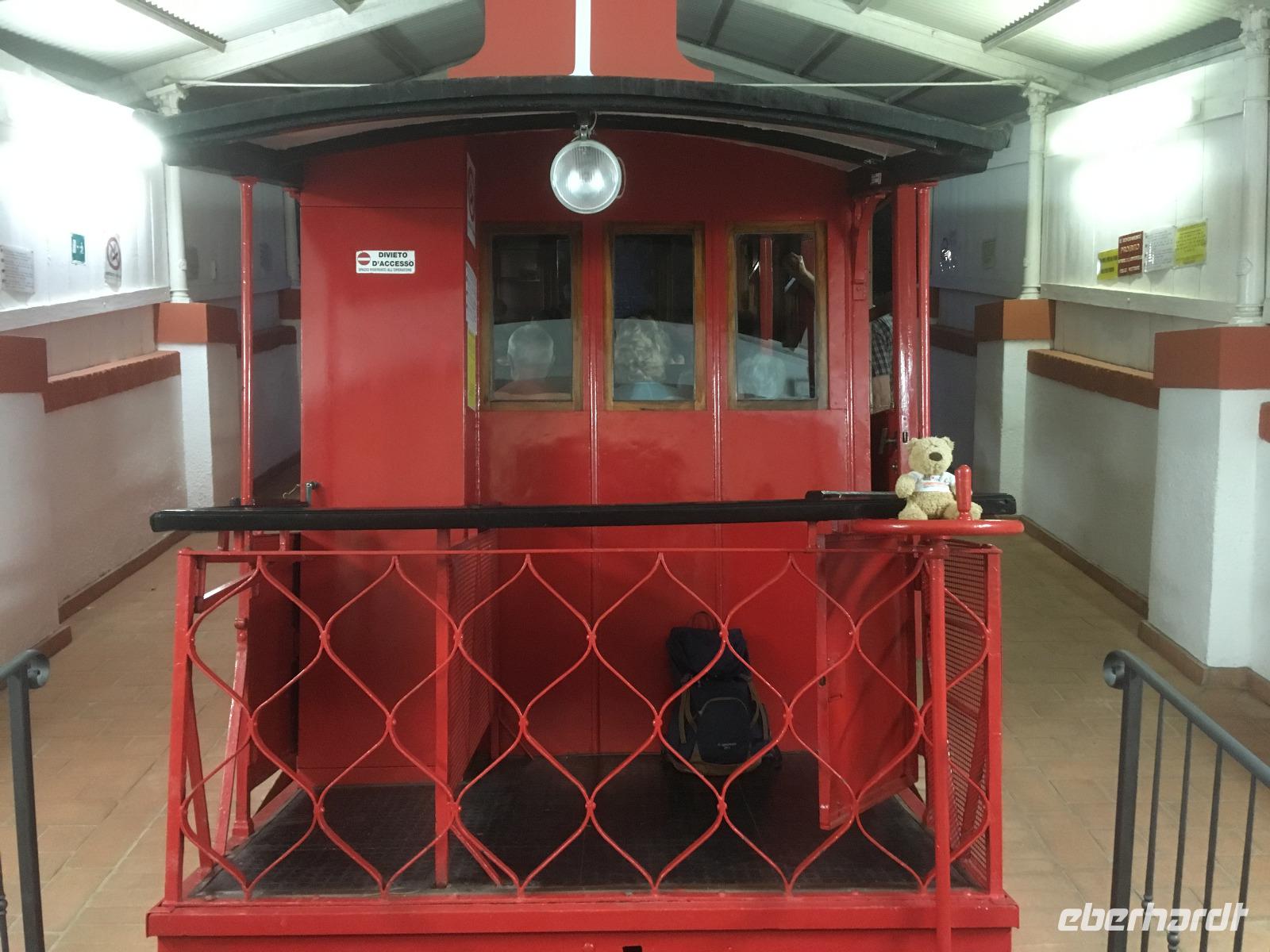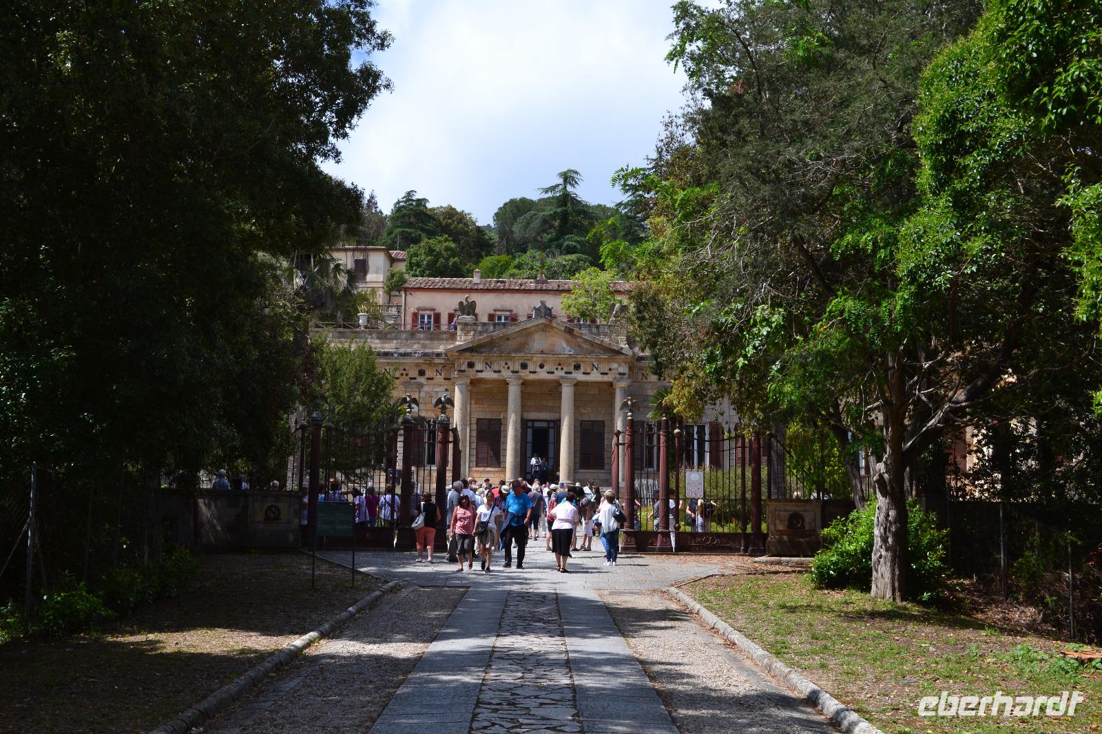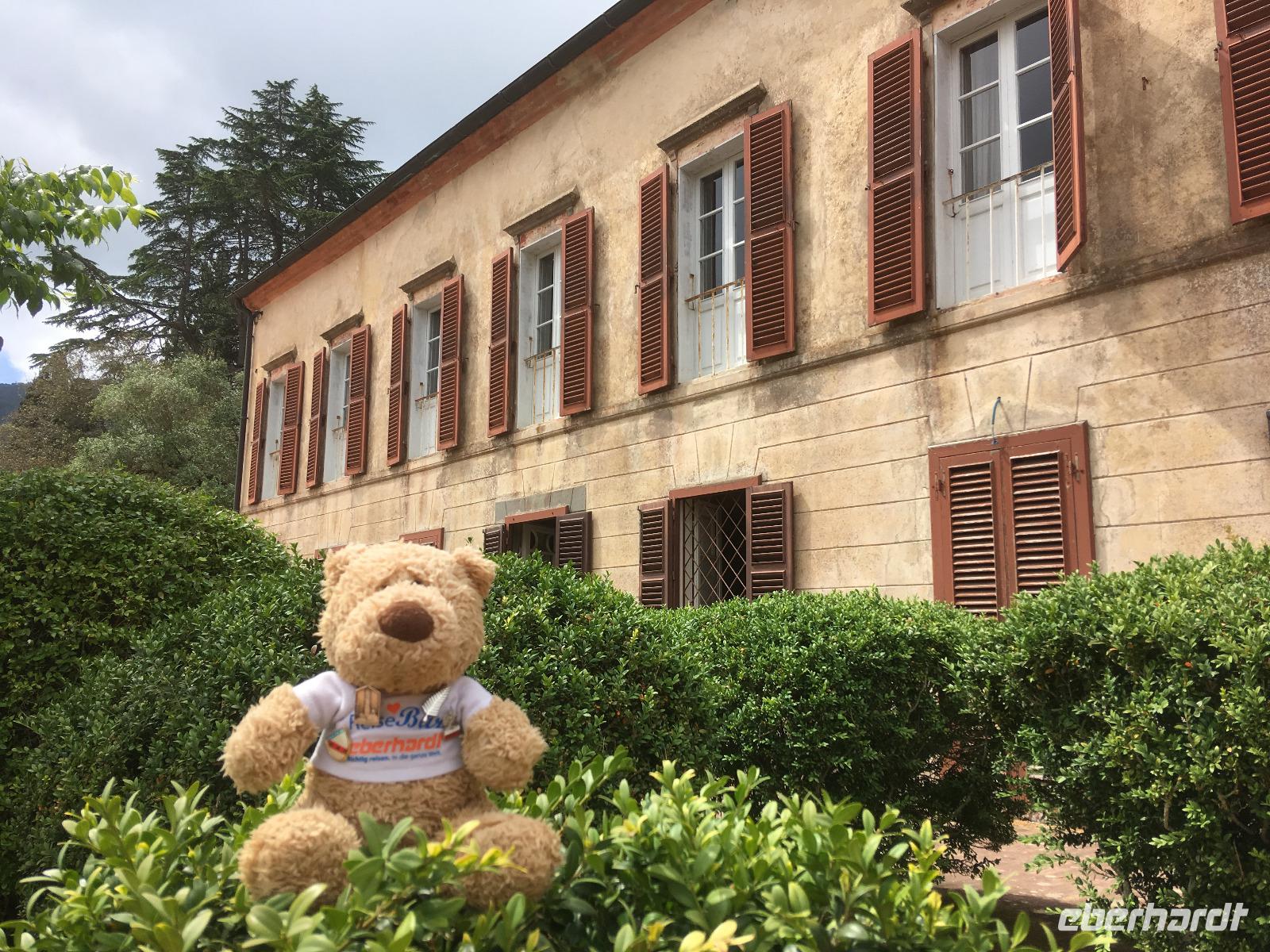 Der heutige Tag steht ganz im Schatten des großen Imperators Napoleon Bonaparte. Auf Schritt und Tritt wird er uns bei unserem Ausflug nach Elba verfolgen, obwohl er in seinem ersten Exil nicht einmal 10 Monate auf der Insel verbrachte. Gleichwohl hat er in dieser Zeit viel für die Entwicklung der Insel getan, wie uns unsere heutige örtliche Reiseleiterin Jo zu berichten weiß. Auch wenn sein Name heutzutage allerorts hauptsächlich aus Marketinggründen fällt - ein bisschen Bewunderung schwingt doch immer noch mit, wenn die rot-weiße Fahne mit den drei fleißigen Bienen im Winde flattert. Mit der Fähre setzen wir also am Morgen in gut einer Stunde vom Hafen in Piombino nach Porto Ferraio auf Elba über und beginnen dort unsere Rundfahrt. Zum Baden mag es heute dank des kräftigen Windes zu kalt sein, aber der blaue Himmel ist endgültig zurück und die Sonne lacht vom Himmel. Wir besichtigen zunächst die Villa San Martino, die Sommerresidenz Napoleons auf Elba. Zwar handelt es sich letztendlich nur um ein erweitertes Bauernhaus, doch vermochte es Napoleon mit Fantasie und Improvisationstalent, diesem Gebäude herrschaftliches Flair zu verleihen. Viel wichtiger war ihm jedoch der Ausblick auf die Bucht von Porto Ferraio, sodass er die ein- und auslaufenden Schiffe immer im Auge behalten konnte - schließlich plante er ja von langer Hand seine Flucht. An der Bucht von Procchio machen wir anschließend einen Fotostopp und durchqueren dann die Insel bis Marina die Campo, wo wir am Hafen unsere Mittagspause einlegen. Der Rückweg zum Bus führt auch hier dummerweise wieder an einer Eisdiele vorbei. Wer soll/kann denn da widerstehen? Nach einem weiteren Fotostopp an der Südküste, bei dem wir im Dunst auch die schemenhaften Umrisse der sagenumwobenen Insel Monte Christo erkennen können, erreichen wir Porto Azzurro, wo sich uns Gelegenheit für eine Kaffeepause bietet. In Porto Ferraio erwartet uns dann ein kleiner Schockmoment: die Fähre ist kaputt! Zum Glück müssen wir aber nur eine halbe Stunde warten, dann können wir mit der nächsten Fähre wieder auf's Festland übersetzen.