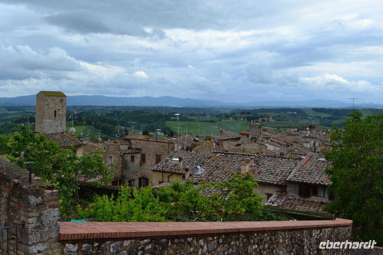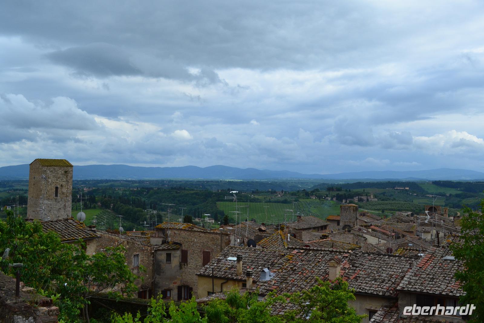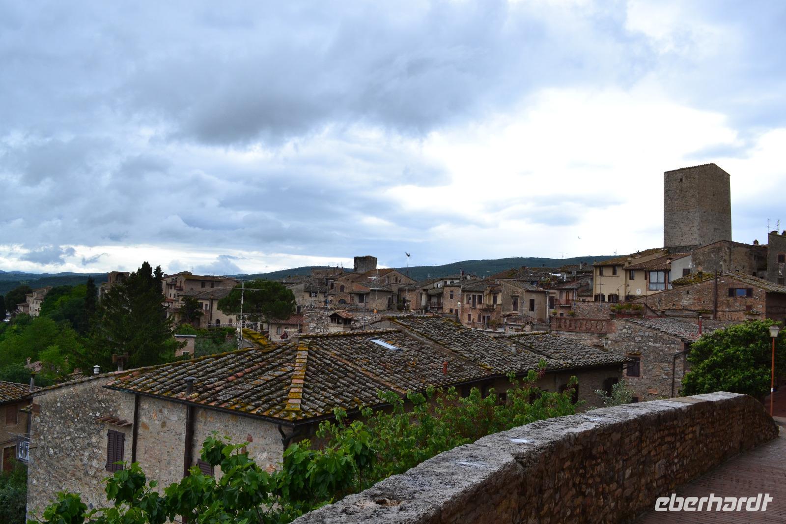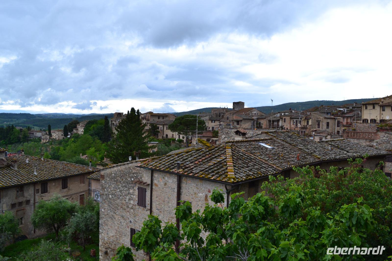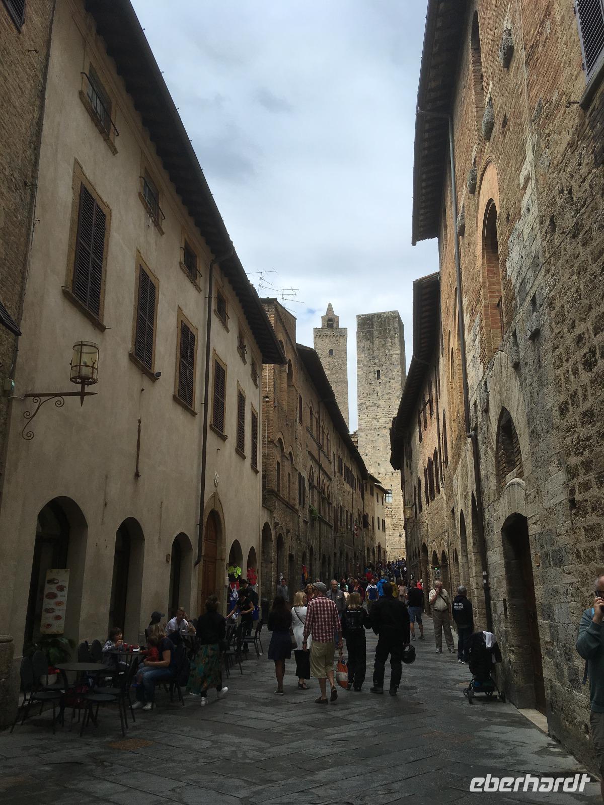 Nach vier Nächten wechseln wir heute unser Quartier und ziehen an die Küste. Auf dem Weg wollen wir auf einem Safran-Bauernhof einkehren und San Gimignano, das Manhattan des Mittelalters, besichtigen. Bis zum Mittagessen ist jedoch noch etwas Zeit, sodass wir eine kleine Panoramafahrt durch das Chianti-Gebiet unternehmen. Unterwegs erzähle ich meinen Gästen, woran sie einen echten Chianti-Wein erkennen, und wir genießen den Blick auf scheinbar endlose Weinberge. Nur mein lieber Busfahrer tut mir etwas leid, als er den Bus auf dem letzten Stück beim wieder einsetzenden Regen durch enge Kurven steuern muss. Auf dem Bauernhof erwartet uns ein leckeres Pastagericht - natürlich mit Safran. Den angebotenen Nachschlag kann ich einfach nicht ablehnen, wenn unsere charmante Gastgeberin höflich aber bestimmt auf meine langen Seiten verweist. Außerdem weiß man ja nie, wann es wieder etwas zu essen gibt. Nach dem Essen können wir von ihr alles über die Safran-Herstellung erfahren. Zudem haben wir vom Bauernhof aus einen tollen Blick auf die „Skyline" von San Gimignano. Das macht uns natürlich neugierig, und wir fahren nun gut gestärkt und voller Vorfreude hinauf in die kleine Stadt. Hier begegnet uns Luisa wieder, die uns nach Siena nun auch durch San Gimignano führt. Unsere Blicke schweifen immer wieder nach oben, hinauf zu den schlanken Geschlechtertürmen, die von einer lange vergangenen Zeit zeugen, als die Familien von San Gimignano unvorstellbar reich und mächtig gewesen sind. Nach der Eroberung durch Florenz ist die Zeit in diesem Städtchen 1563 stehengeblieben, als Großherzog Cosimo I. de' Medici erließ, dass kein noch so geringer Betrag mehr in San Gimignano investiert werden dürfe. Nach dem kleinen Spaziergang wollen wir nun aber alle das leckere Gelato vom mehrfachen Weltmeister und seinem ärgsten Konkurrenten testen! Welches Eis besser ist? Das müssen Sie schon selbst entscheiden! Am Abend erreichen wir glücklich und zufrieden unsere neue Unterkunft, das Parkhotel „I Lecci".