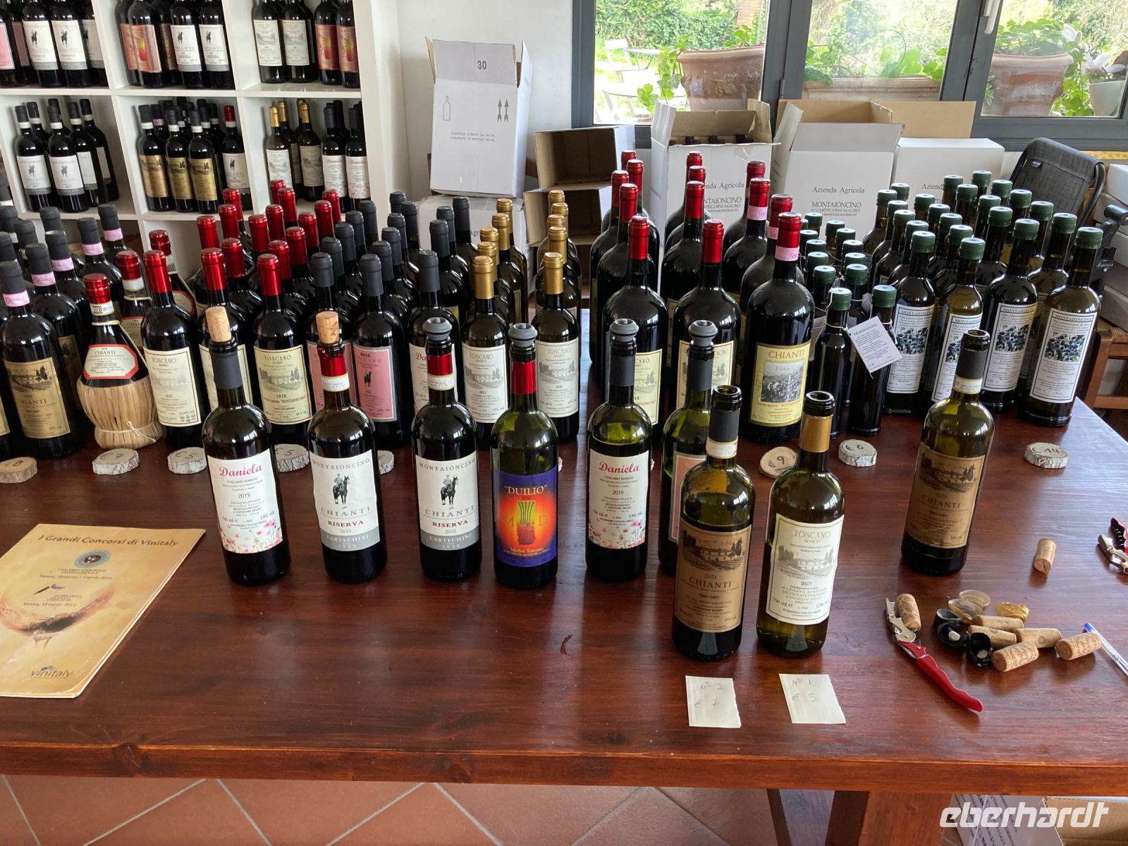 Am nächsten Morgen setzen wir die Fahrt durch die Südalpen/Dolomiten fort. Wir lassen die Franzensfeste hinter uns, Brixen, Bozen und Triest. Rechts und links der Brenner-Autobahn sehen wir schier endlos viele Weinreben und Apfelbäume. Meine heutige Musikauswahl – die wunderbaren Kastelruther Spatzen – stößt auf wenig Gegenliebe, weshalb ich sie auch zu meiner eigenen Erleichterung nach 1,5 Titeln unterbrechen darf. Vielleicht wäre nach der Weinverkostung der bessere Zeitpunkt dafür gewesen, allein sie ist in erst hinter Florenz und bis dahin sind es noch ein paar Stunden Fahrt durch Po-Ebene und die Apenninen. Die Mittagspause machen wir heute kurz hinter Bologna und nicht nur unser Chauffeur Jan ist erleichtert, dass er die überraschende Polizeikontrolle auf dem Parkplatz ohne Schwierigkeiten übersteht. Nach vielen, vielen Tunnelkilometern sind wir am frühen Nachmittag in der Toskana angekommen und feiern dies standesgemäß mit einer Weinverkostung auf einem kleinen Bauernhof bei Empoli. Während die Mama großzügig Salami, Schinken, Brot und Pecorino verteilt, schenkt der Papa großzügig von seinem selbstgemachten Wein ein (nicht ohne vorher jeweils selbst ein Schlückchen zu probieren). Wir lassen uns freundlich bewirten und genießen dabei das herrliche Toskana-Panorama mit Weinbergen, Zypressen und kleinen Villen. Auch der Himmel ist aufgerissen, sodass die Reben und auch wir ein paar Sonnenstrahlen tanken können. 1 Weißwein, 3 Rotweine und 1 Dessertwein später finden wir doch alle irgendwie wieder den Weg zurück in den Bus und gelangen — Jan sei dank — bis nach Montecatini Terme. Im mondänen Kurort, der seit zwei Jahren zum Unesco-Weltkulturerbe zählt, beziehen wir unsere nächste Unterkunft unweit des Kurparks. Vor dem Abendessen bleibt sogar noch Zeit für einen kleinen Spaziergang in der herrlichen Abendsonne.