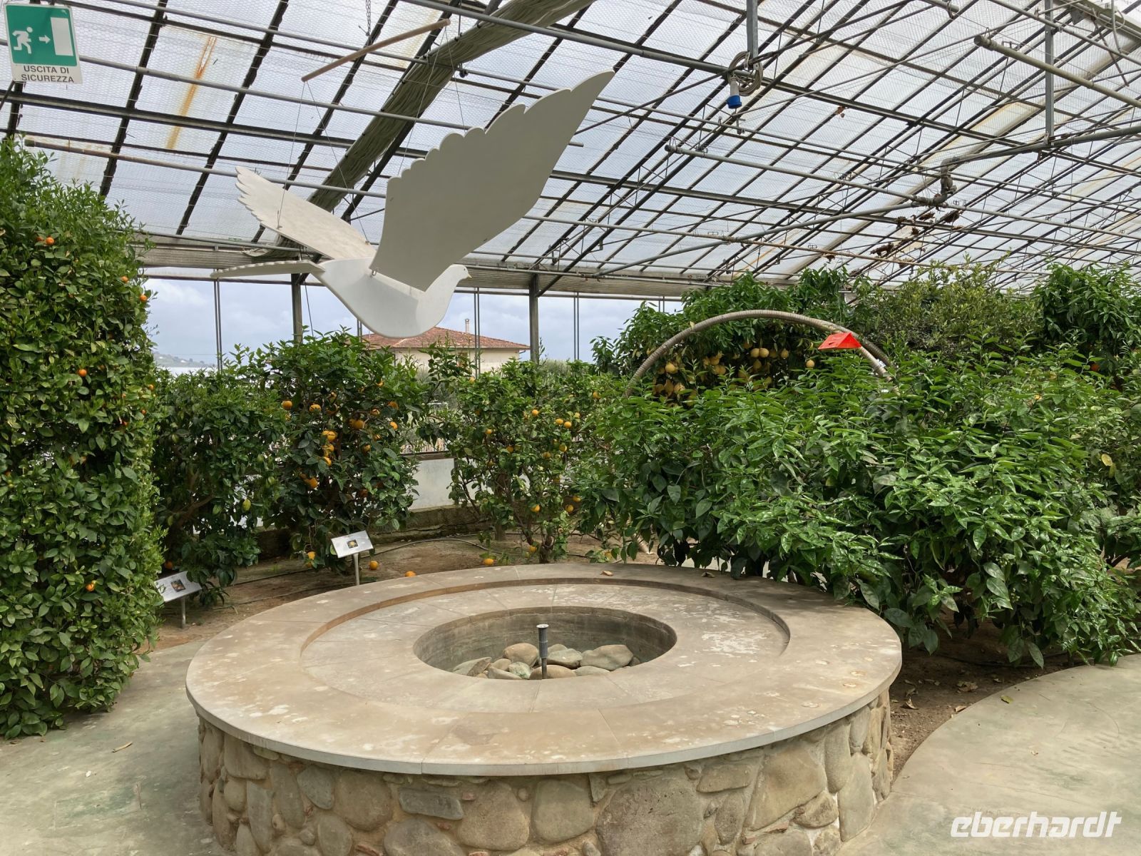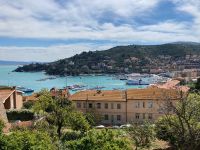Für unseren Auflug nach Elba bekomme ich wieder Verstärkung an die Seite. Kurz vor Piombino wartet unsere örtliche Reiseleiterin Jo auf uns. Sie wird uns am heutige Tag die Höhepunkte von Elba zeigen. Dazu setzen wir zunächst mit der Autofähre nach Portoferraio über. Die Überfahrt ist sehr ruhig, es ist noch bewölkt heute morgen, soll aber besser werden. Unser erstes Ziel ist die Sommerresidenz von Napoleon in San Martino. Die kleine Villa, eigentlich ein einfaches Bauernhaus, liegt strategisch günstig an einem Hang, sodass Napoleon einen guten Blick auf die Bucht von Portoferraio hatte und die ein- und auslaufenden Schiffe beobachten konnte. Und nur darauf kam es ihm an, schließlich plante er bereits insgeheim seine Flucht. Viel Luxus hatte er nicht, weshalb die Villa vor allem wegen ihrer opulenten und detaillierten Wandmalereien bekannt ist, die den Eindruck von Ruhm und Reichtum wecken sollten. Wir setzen unsere Rundfahrt entlang der Küste fort, durchqueren dann die Insel an der schmalsten Stelle und machen am Sandstrand von Marina di Campo unsere Mittagspause. In einem Restaurant an der Strandpromenade haben wir vorsorglich Tische reserviert, sodass meine Gäste hier auf jeden Fall Plätze und ein Mittagessen bekommen können. Bevor wir Marina di Campo verlassen, müssen wir natürlich noch das berühmteste Gelato der Insel probieren. Am Nachmittag geht es dann —mit einem Foto-Zwischenstopp mit Blick zur Insel Montechristo — weiter nach Porto Azzurro. Inzwischen sind die Wolken verschwunden und wir erleben einen strahlend blauen Himmel. Wer seinen Gelato-Appetit bis hierhin zügeln konnte, hat nun natürlich am Hauptplatz am kleinen Yachthafen das schönere Ambiente und Wetter dafür. Querfeldein bringt uns Jan nach Portoferraio zurück, denn die Fähre zum Festland wartet leider schon auf uns. In Piombino verabschieden wir uns von Jo und fahren zurück zum Hotel. Es ist schon unser letzter Abend an diesem hübschen Flecken Erde, weshalb wir (scherzhaft?) beschließen, uns hier schon bald zu einem Wiedersehenstreffen zu verabreden.