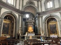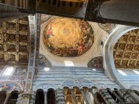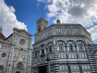 Nach dem Frühstück zieht es mich und fast alle meine Gäste noch einmal zum Strand. Wir nehmen schweren Herzens Abschied vom Tyrrhenischen Meer und vom Hotelresort, in dem es uns in den letzten Tagen sehr gut ergangen ist. Jan fährt uns vorbei an Pisa und Lucca zu unserem vorletzten Hotel auf dieser Rundreise, das sich in Pistoia befindet. Nach der Ankunft wartet dort ein leichtes Mittagessen auf uns. Frisch gestärkt fährt uns Jan anschließend in die Altstadt. Gemeinsam unternehmen wir einen Spaziergang zum Domplatz mit den wichtigsten historischen Bauten — Palazzo del Comune, Cattedrale di San Zeno und Baptisterium — sowie zur Wallfahrtskirche Santuario Basilica della Madonna dell'Umiltà mit ihrer weithin sichtbaren Kuppel. Der einsetzende leichte Regen hindert uns nicht daran, währenddessen unsere Gelato-Verkostung auch in Pistoia fortzusetzen. Er hört jedoch schnell wieder auf und wir können unseren Bummel bei auflockernder Wolkendecke mit etwas Sonnenschein beenden, dabei auch ein bisschen die Schaufenster mit schicken Taschen begutachten und/oder einen Kaffee trinken.