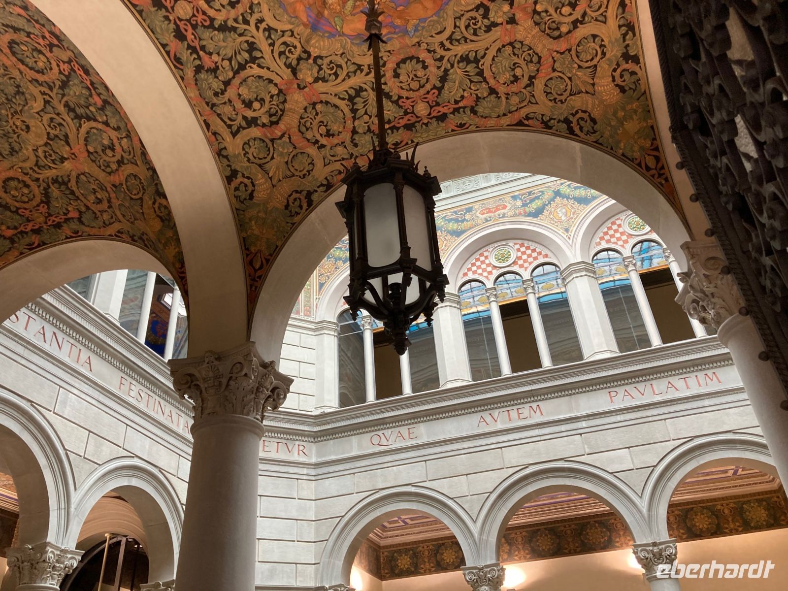 Durch die Apenninen und an Bologna und Venedig vorbei fahren wir am Freitag zunächst bis nach Udine. Dort erwartet uns unsere Stadtführerin Emmanuele am vereinbarten Treffpunkt. Sie animiert uns sogleich, die einzige Erhebung dieser hübschen Stadt im Friaul zu erklimmen – den Schlossberg. Der Aufstieg wird mit einer tollen Aussicht über Udine bis zu den Alpen belohnt. Vom Schlossberg geht es hinab zum Platz der Freiheit, der mit seinen Loggien und Säulen der venezianischen Architektur nachempfunden ist. Auf der Piazza Giacomo Matteotti machen wir eine Kaffeepause (bzw. Cioccolata italiana für den Andreas), um die Wartezeit zu überbrücken, bis der Dom am Nachmittag wieder seine Pforten für Besucher öffnet. Emanuele möchte uns nämlich unbedingt das Innere zeigen, denn der Dom von Udine ist für seine herrlichen Fresken berühmt. Über die Marktstraße schlendern wir gemütlich dorthin und sind nach dem Eintreten durch das Portal auch sogleich überwältigt. Vom Dom sind es nur 10 Minuten zu Fuß zum Hotel, wo Jan bereit mit dem Bus auf uns wartet. Wir beziehen unsere Zimmer und begegnen uns anschließend im Zentrum von Udine auf individuellen Spaziergängen durch die Altstadt. Auch die Sonne legt sich noch einmal mächtig ins Zeug, um uns den letzten Urlaubsabend zu versüßen. Beim letzten gemeinsamen Abendmahl lassen wir die schöne Reise Revue passieren.