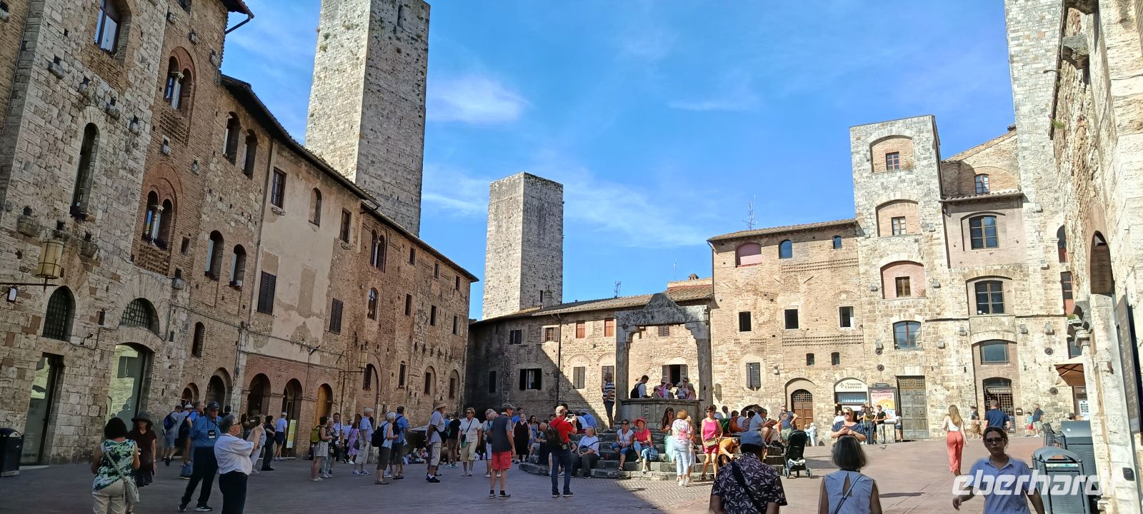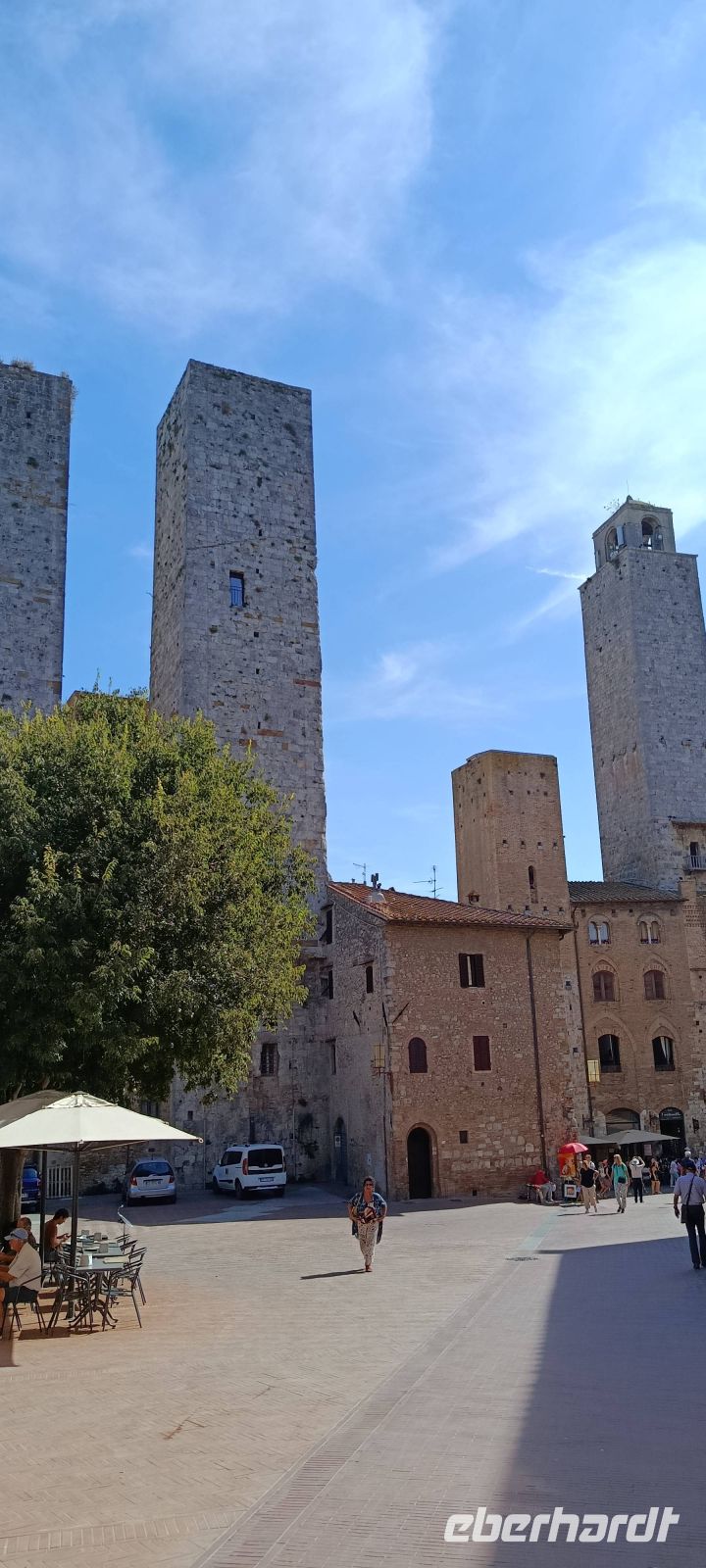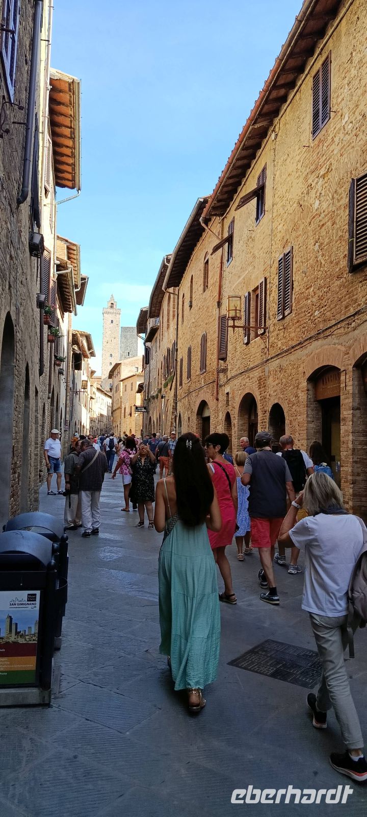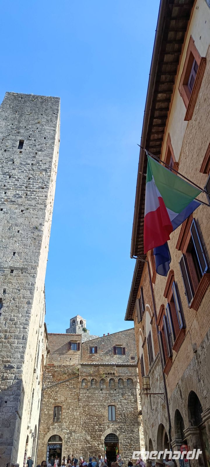 Vor den Toren der Stadt erwartet uns Luise, unsere Stadtführerin, mit ihr lernen wir San Gimignano kennen. Im Anschluss, in der Freizeit schauen wir uns noch ein wenig um, einige essen am Brunnenplatz ein Eis in der Eisdiele, deren Besitzer die Eis-Weltmeisterschaften gewonnen hat und andere wiederum besuchen noch die mittelalterliche Kirche Collegiata Santa Maria, in der ausgezeichnet erhaltene Fresken zu sehen sind.