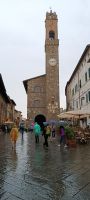 Nach der Mittagspause in Siena fahren wir weiter nach Montalcino. Dieses zauberhafte Winzerstädtchen liegt von Weinbergen umgeben ca. 30 km von Siena entfernt. Bekannt ist es für den hervorragenden Rotwein, den Brunello di Montalcino. Wir schlendern durch die Gassen und genießen die Ruhe abseits der großen Touristenströme.Viele kleine Läden, Cafes und Weinlokale laden zum Einkehren ein. Die eine oder die andere Flasche Rotwein wird als Urlaubssouvenir gekauft. Auch wurde hier der Film Gladiator mit Russell Crowe gedreht. Nur der dauernde Nieselregen trübt den Genuss.