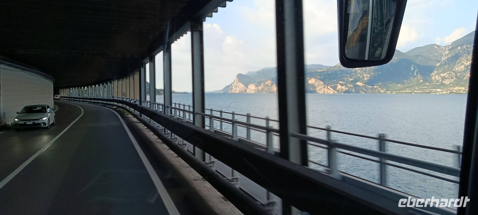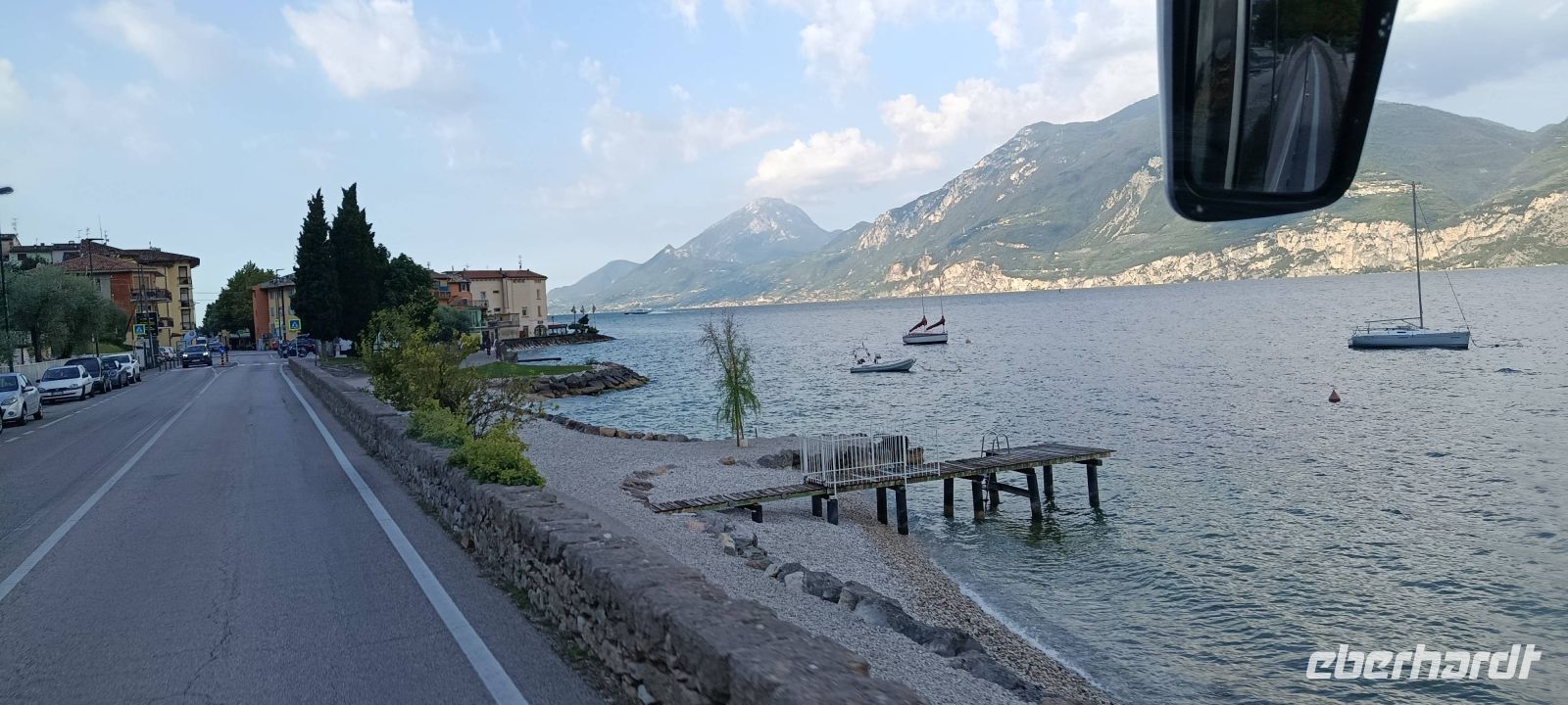 Durch den kurzfristigen Hotelwechsel nach Torbole waren wir unmittelbar am Gardasee . Nach dem Frühstück am nächsten Tag nutzten wir diesen Umstand und so hatten alle Gäste die Möglichkeit, die Uferstraße am Nordufer bis zum Süden zu fahren , bevor wir bei Affi erneut auf die Autobahn mussten. So kamen bei vielen Gästen Erinnerungen an "Gardasee Urlaube" in der Vergangenheit auf.