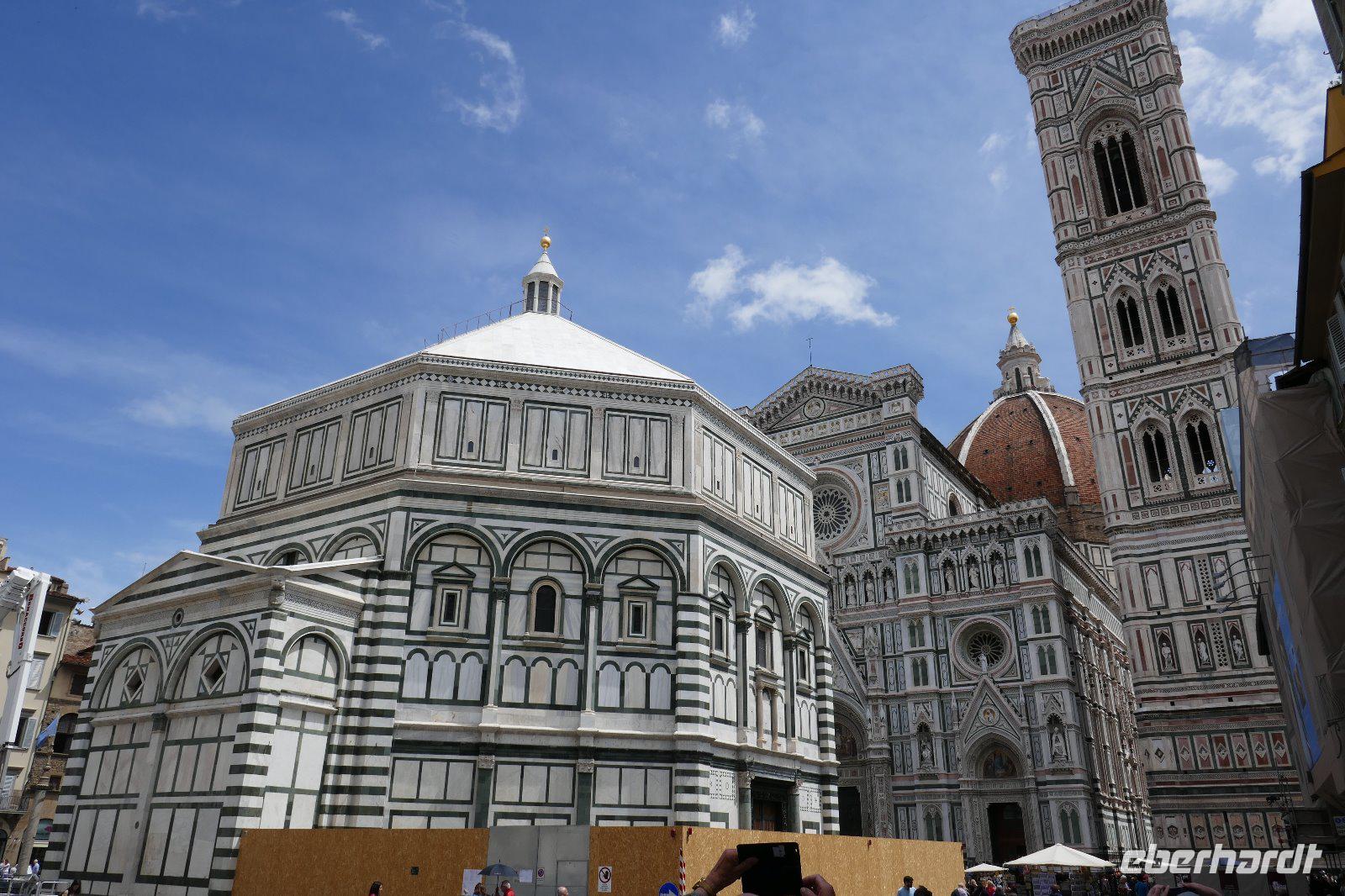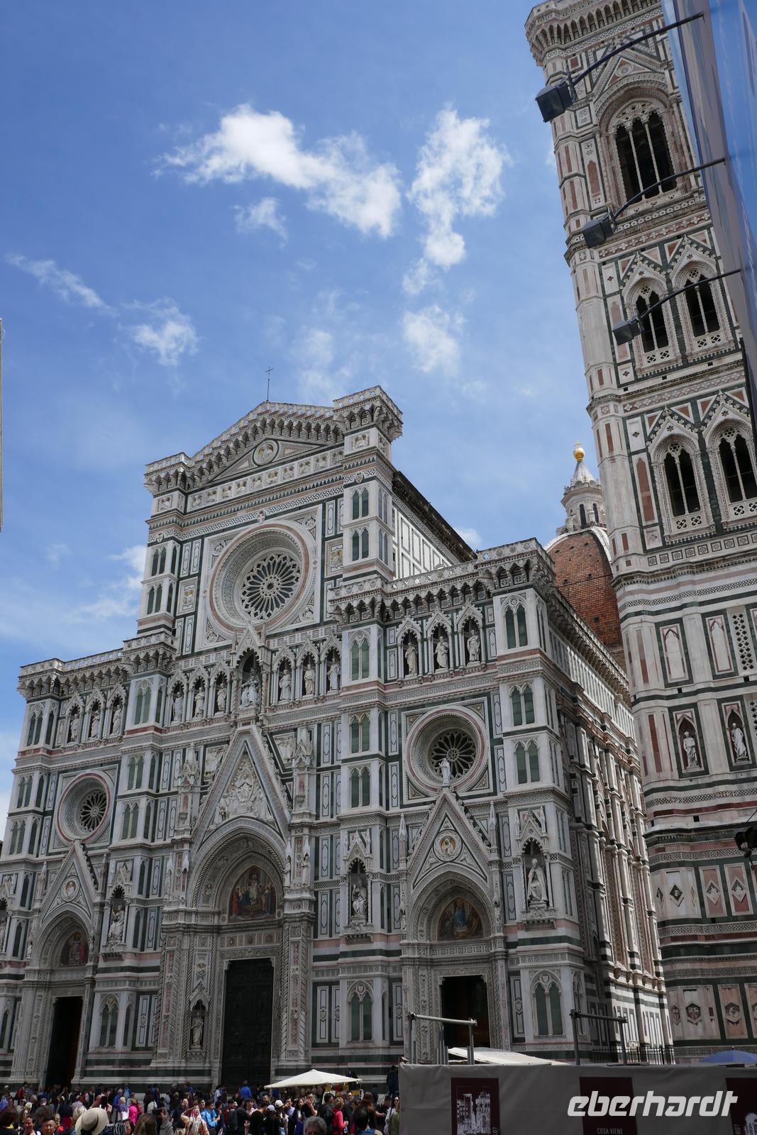 Wiege der Renaissance, "Italienisches Athen"- viele Attribute werden Florenz verliehen. Der Reichtum an Kunst und Kultur in Florenz ist überwältigend. Fast ein Jahrhundert war diese Stadt das geistig-kulturelle Zentrum des Abendlandes. Philosophie, Literatur und Wissenschaft aber vor allem die Kunst blühten und das Handels- und Finanzwesen florierten. Zahlreiche Persönlichkeiten u. a. Dante, Machiavelli, Leonardo da Vinci, Michelangelo oder Galilei residierten in jener Zeit in dieser Stadt. Lange Zeit beherrschte die Dynastie der Medici die Geschicke dieser Stadt. Die Stadt mit ihren reizvollen Gassen und Häusern. Mit ihren Skulpturen, Palästen und Kirchen wirkt sie wie ein "Freilichtmuseum". Nun galt es, diese Stadt zu erobern - keine leichte Aufgaben für einen Tag. Aber Dank der hervorragenden Stadtführer besuchten wir die wichtigsten Sehenswürdigkeiten der Stadt. Dom, Piazza Signoria, Palazzo Vecchio, Uffizien, Santa Croce - um nur einige zu nennen.