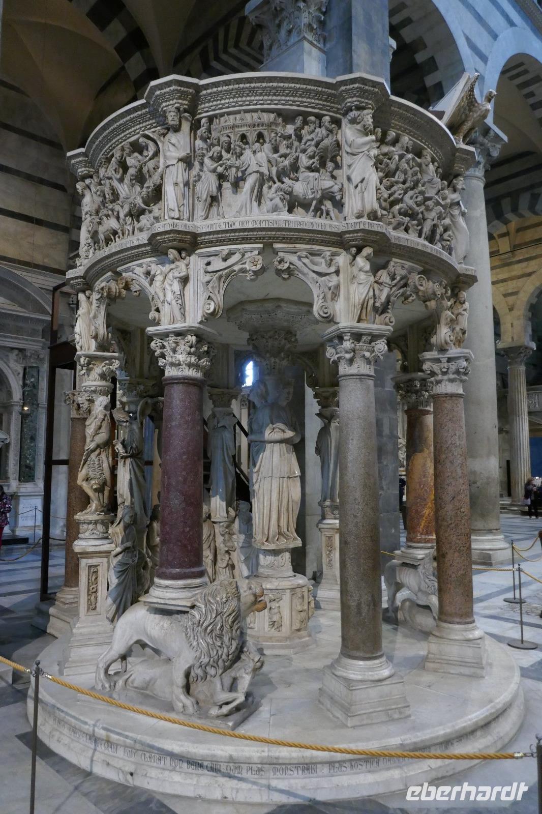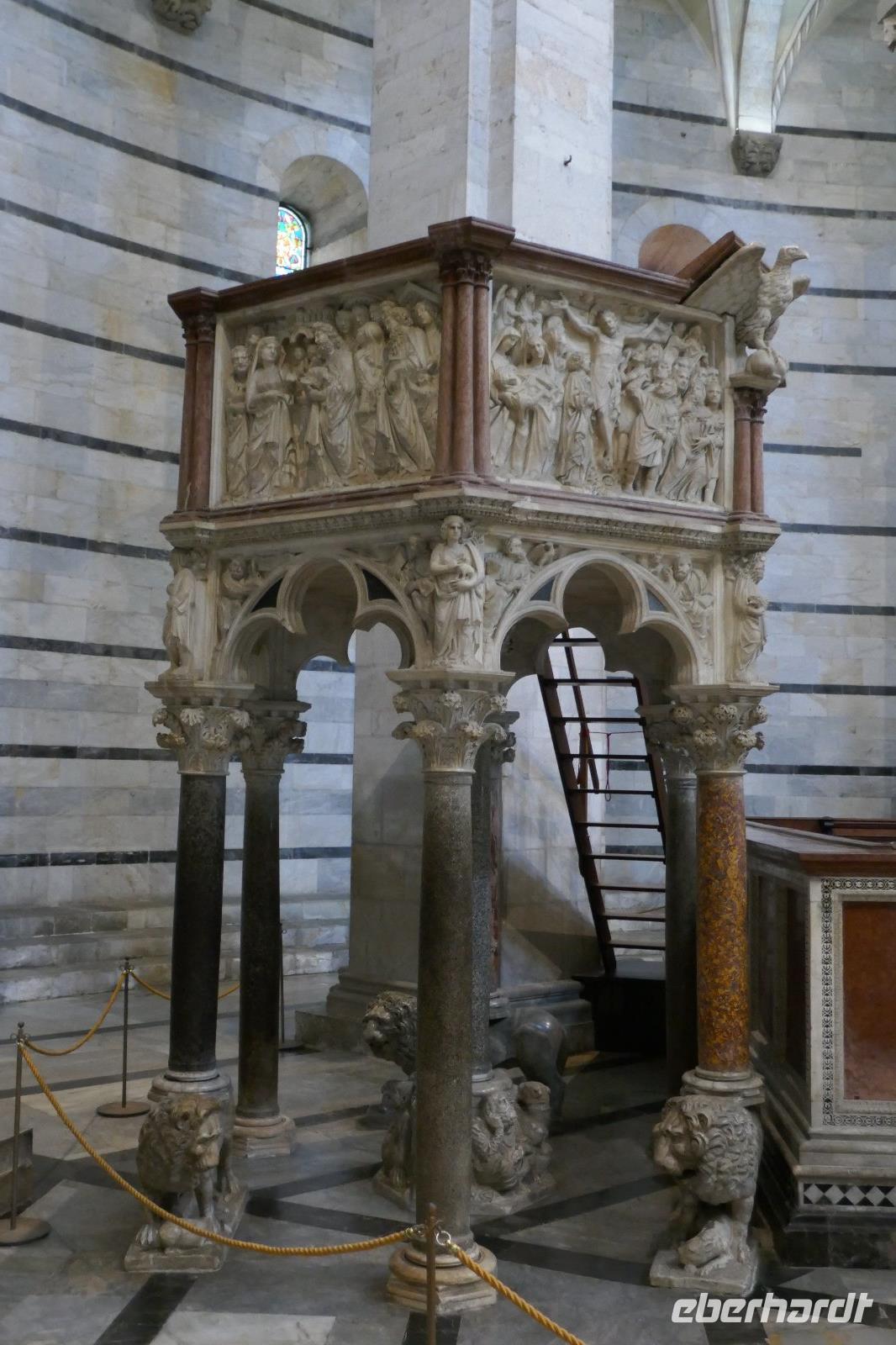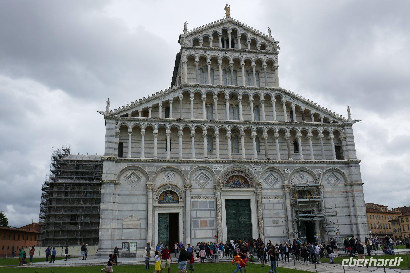 Als wir an der Piazza dei Miracoli standen, glänzten Baptisterium, Dom und Turm im glänzenden Marmor. Jeder fragt sich nun: Ist der Turm eine Bausünde oder doch ein Wunder? Egal, auf jeden Fall ist er der Star des Platzes. Die Innenbesichtigung des Baptisteriums brachte nicht nur Baukunst hervor, sondern mit einem Acapella-Gesang konnten wir uns von der Akustik eindrucksvoll überzogen. Danach ging es in den reich ausgestattet Dom. Eine Besonderheit abseits der Ströme ist hier für Deutsche ein Sarkophag wichtig. Dieser war einst sogar Teil des Hauptaltars - also der, der den Papst in jener Zeit bekämpfte stand lange Zeit im Mittelpunkt der Kirche. Am Ende standen wir nun vor dem schiefen Konstrukt, das durch eine einfache Sache, nach viel probieren, gesichert wurde. Es blieb dann noch Zeit für eigene Entdeckungen, bevor es wieder nach Marina di Pietrasanta zurück ging.