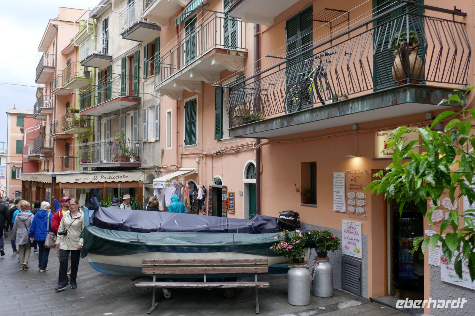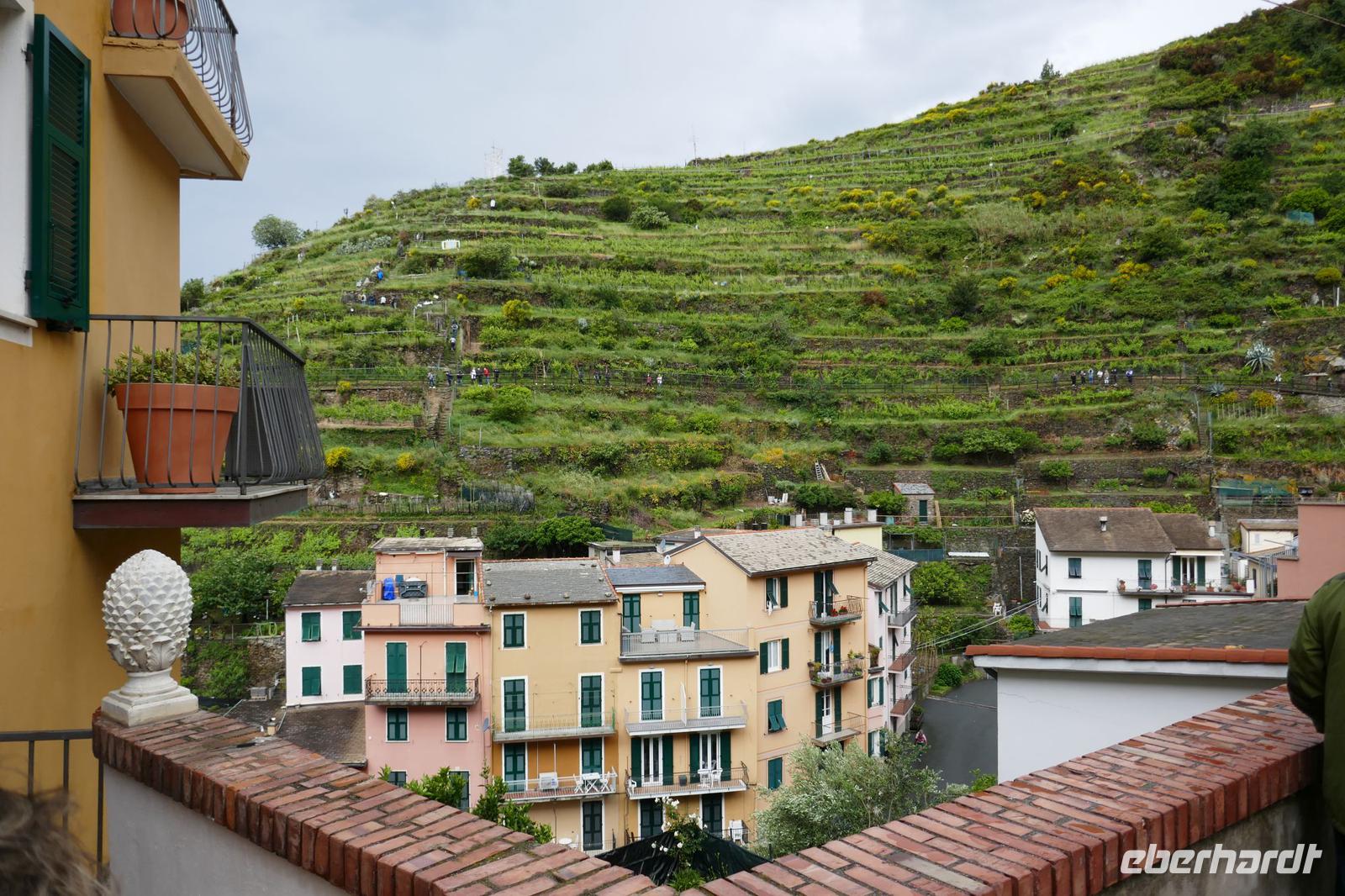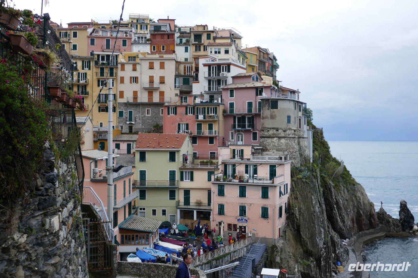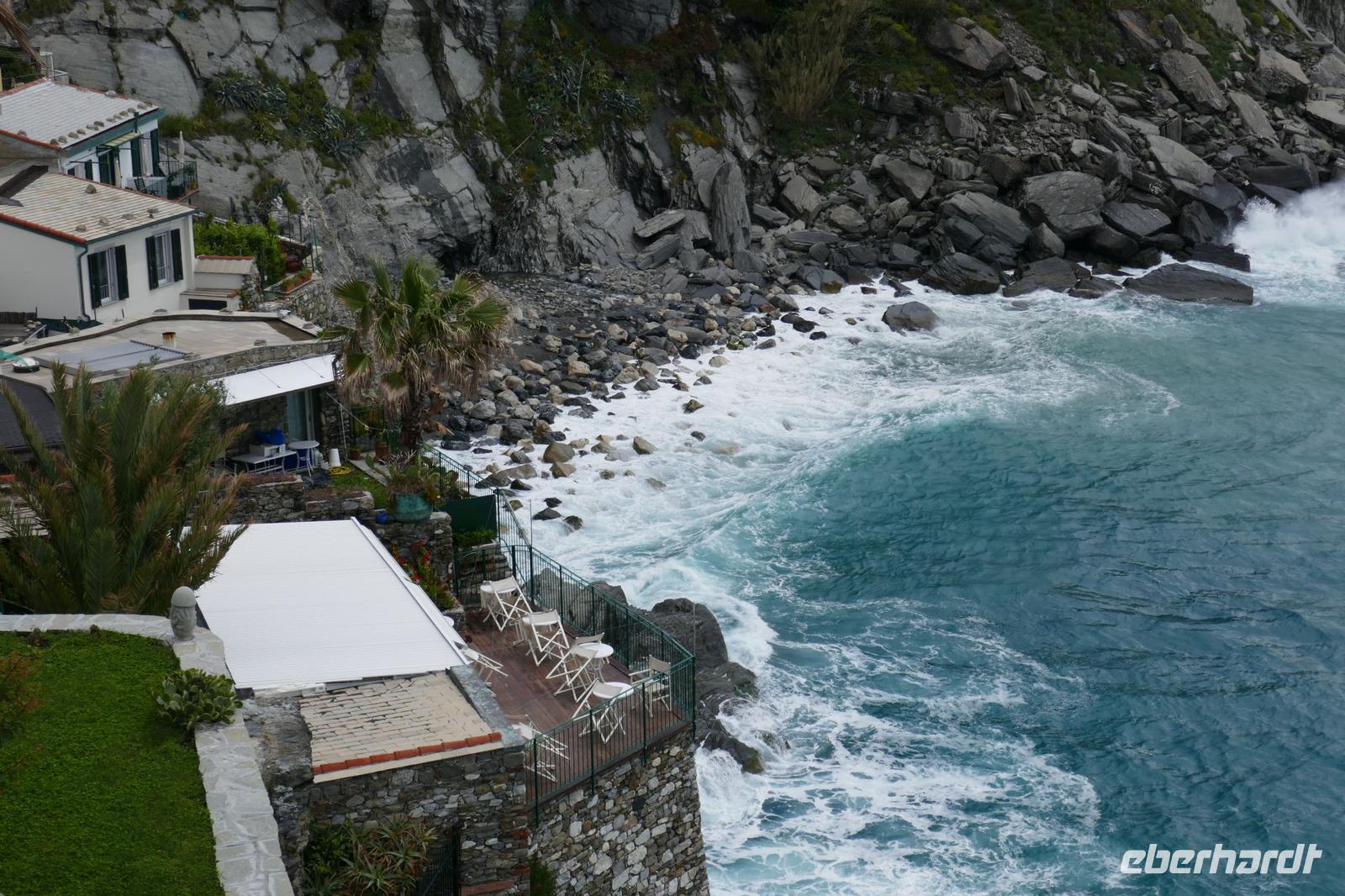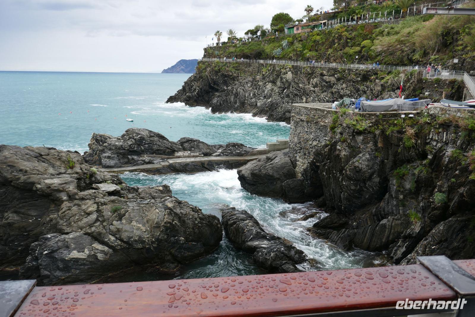 Heute hat es der Wettergott gut mit uns gemeint. Am Anfang noch dichte Wolken und etwas Regen, aber beim Ausstieg in Manarola war es trocken und tagsüber wurde es immer besser. Einziger Wehrmutstropfen: Wind und Wellengang machte eine Bootsfahrt unmöglich - aber die Sicherheit ging in jedem Fall vor.