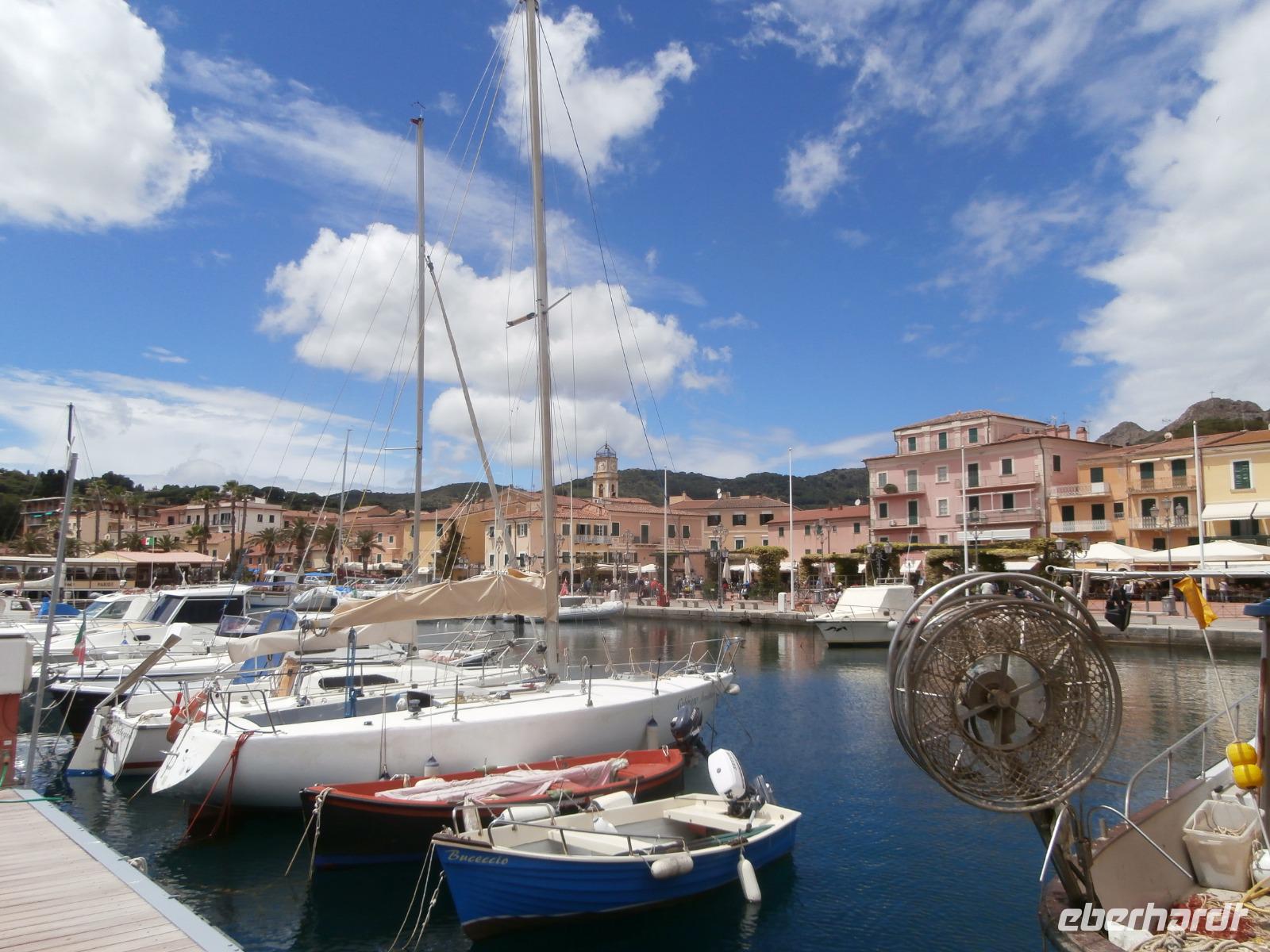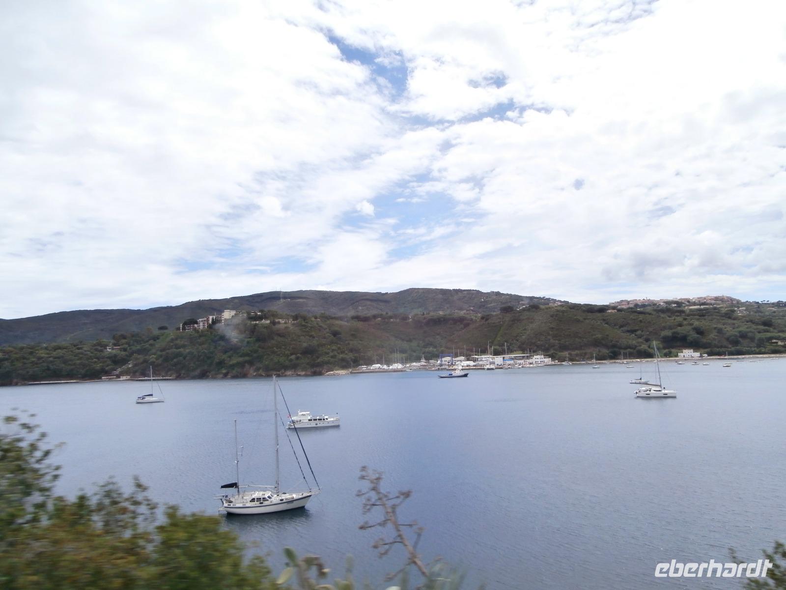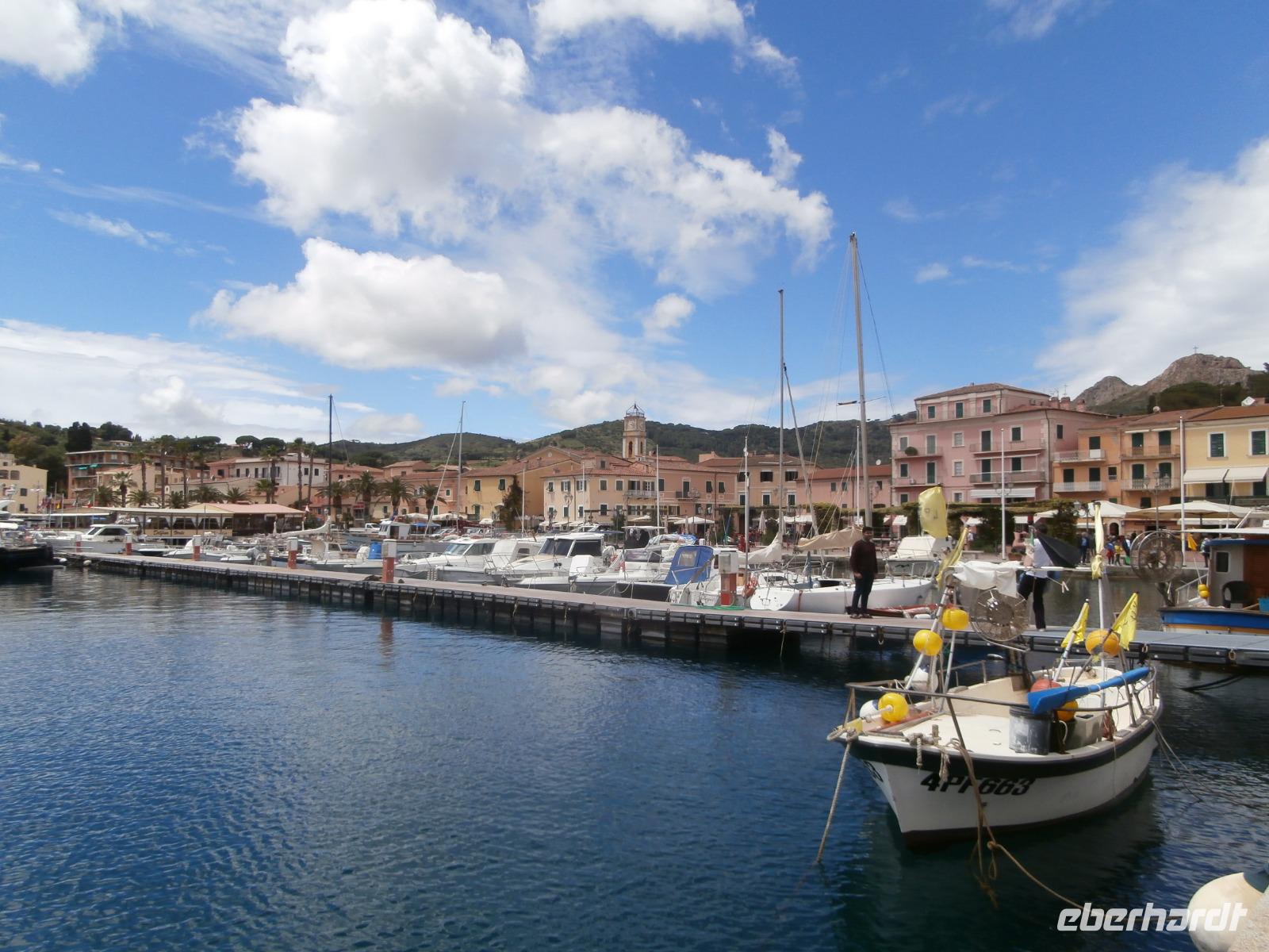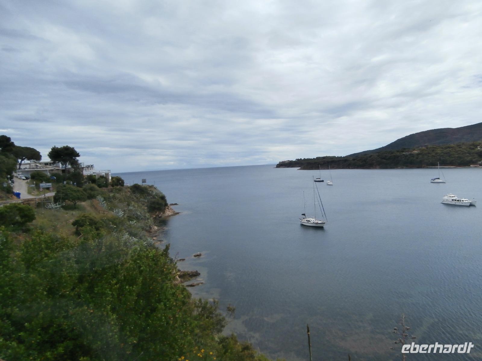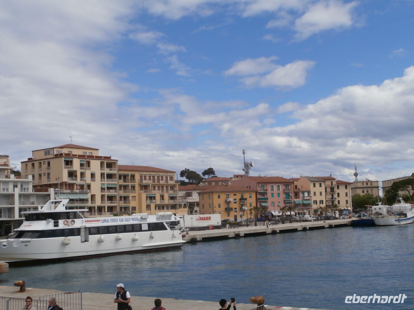 Heute Morgen fahren wir mit 2 Bussen von Marina di Pietrasanta entlang der Küste bis nach Piombino zum Fährhafen. Unterwegs treffen wir unsere örtlichen Reiseleiterinnen Antonietta und Jo, sie erzählen uns noch das Ein oder Andere zur Überfahrt mit der Fähre und schnell erreichen wir den Hafen. Uns gelingt es, die Fähre eine halbe Stunde früher zu nehmen, so dass wir auf der Insel mehr Zeit zur Verfügung haben. Schnell ist der Bus im Bauch der Fähre verschwunden und wir nehmen unsere Plätze im Außenbereich ein, bei schönem Wetter haben wir eine tolle Überfahrt hinüber zur Insel Elba. Unsere Inselrundfahrt mit Mittagspause in Marina di Campo starten wir in Portoferraio, tolles Licht und klare Luft bieten bei unseren Fotostopps ideale Bedingungen zum Fotografieren. Auf der Inselrundfahrt kommen wir am Golf von Biodola und Procchio vorbei. Wir lassen die malerische Landschaft, die kleinen Dörfer und Siedlungen an uns vorüberziehen. Die Insel Elba, mit der Form eines Fisches, begeistert uns alle und über die Strada del Monumento, erreichen wir Porto Azzuro. Hier laden uns bei fantastischen Wetter die alten Gassen hinter der Piazza am Hafen zum Bummeln ein. Am Hauptplatz können wir lecker Eis essen oder einen Cappuccino trinken. Der Ort wird von der Festung di Potolongone aus spanischer Zeit überragt. Unser letzter Punkt heute ist der Besuch der Napoleon Villa in San Martino, hier werden wir an Napoleon, den großen Feldherrn, erinnert, der vor 200 Jahren, vom 4. Mai 1814 bis zum 1. März 1815, auf Elba kommt. In seiner Verbannung hätte er gern seine Frau, die Kaiserin und österreichische Erzherzogin Marie-Louise und den gemeinsamen Sohn, den König von Rom, bei sich gehabt. Aber es kommt nur seine Geliebte, die polnische Gräfin Marie Walewska mit ihrem Sohn. Nach zwei Tagen gibt es einen Abschied für immer und so richtig verstehen kann man Napoleon nicht, der nach kurzem Aufenthalt diesen Ort fluchtartig verlässt. Nach der Rundfahrt geht's mit der Fähre wieder zurück zum Festland und kurz hinter Piombino verlassen uns Antonietta und Jo. Eine schöne, aber auch lange Fahrt haben wir wieder zurück zum Hotel an der Versiliaküste in Marina di Pietrasanta. Etwas später treffen wir uns heute zum Abendessen und hier vor Ort an der Küste war das Wetter nicht so schön wie auf Elba, Glück gehabt.