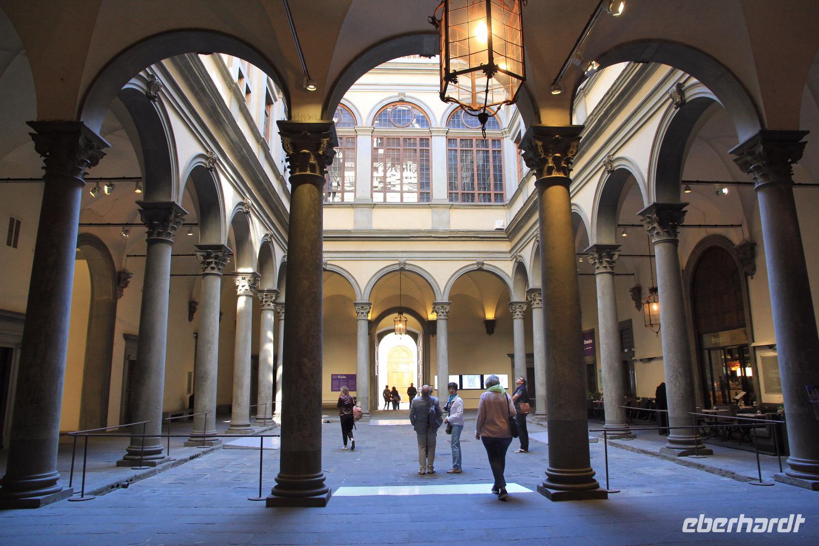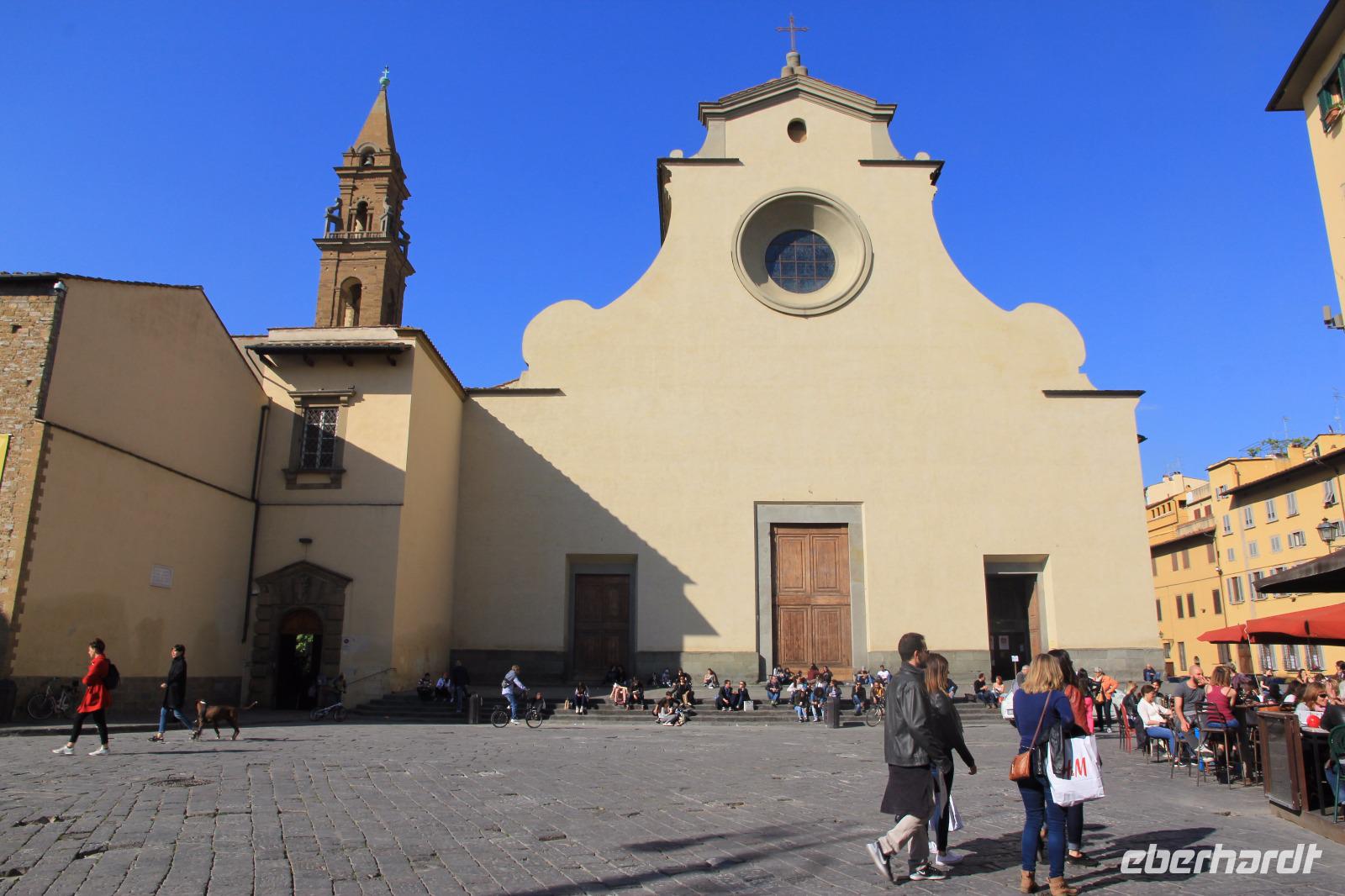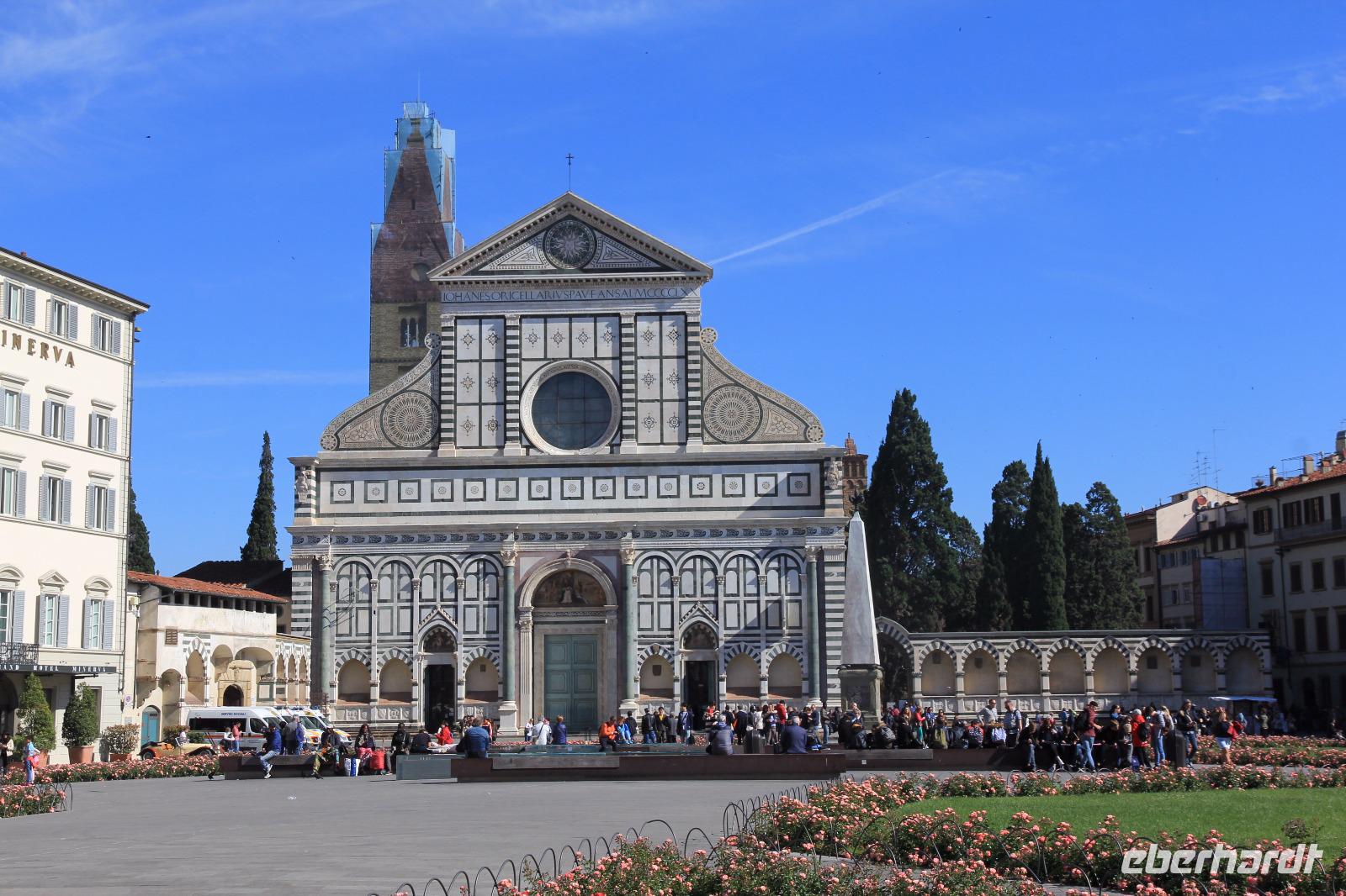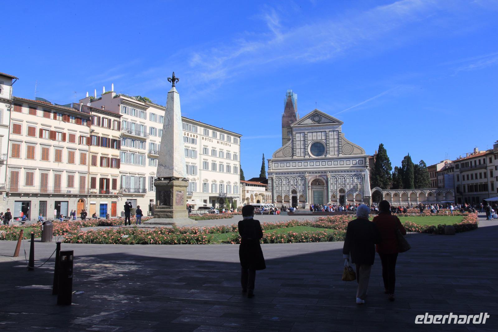 Heute ist unser erstes Ziel die Piazza S. Maria Novella. Auf dem Weg dahin verneigen wir uns vor der strotzenden Präsenz des Palastes der Strozzi. Die älteste Apotheke der Welt, die als Klosterapotheke des Dominikanerklosters im 13. Jahrhundert schon heilende Essenzen verabreichte, ist heute eine originelle Verkaufsstelle für trendige Wellness-Produkte und Nahrungsergänzungsmittel. Da erst vor wenigen Wochen das Gelände des Dominikanerklosters von den kasernierten Carabinieri verlassen wurde, sind wir nun gespannt, was aus diesem architektonischen und historischen Kleinod wird. Wir gehen dann zum Mercato Centrale, einer zweigeschossigen Markthalle aus der Gründerzeit, die von einer schier unendlichen Zahl von mobilen Verkaufsständen der hiesigen Lederindustrie gesäumt wird. Anschließend erhalten wir nach einer 20-minütigen Wartezeit Zugang in die Kapelle der Medici. Im Inneren lässt uns der Gesang der in Italien bekannten Vokal-Gruppe „PrismaticoInCanto" innehalten und Andacht üben. Höhepunkte dieser Besichtigungen sind natürlich die von Michelangelo gestalteten Grabmäler für Giuliano, des Herzogs von Nemours, und für Lorenz, des Herzogs von Urbino. Unsere Mittagsrast mit einen guten Essen gestalten wir auf der Piazza S. Spirito, bevor wir am Nachmittag die Capella Brancacci besuchen. Diese Kapelle verbildlicht uns den Übergang von der Malerei der Spätgotik zur Malerei der Renaissance der Frühen Neuzeit. In einem einzigen Frescen-Zyklus bilden der Meister Masolino und sein Schüler Masaccio zwei epochal unterschiedliche Malweisen ab. Den Abend gestalten die Reisegäste frei mit indivdiuellen Einkäufen und Restaurantbesuchen.