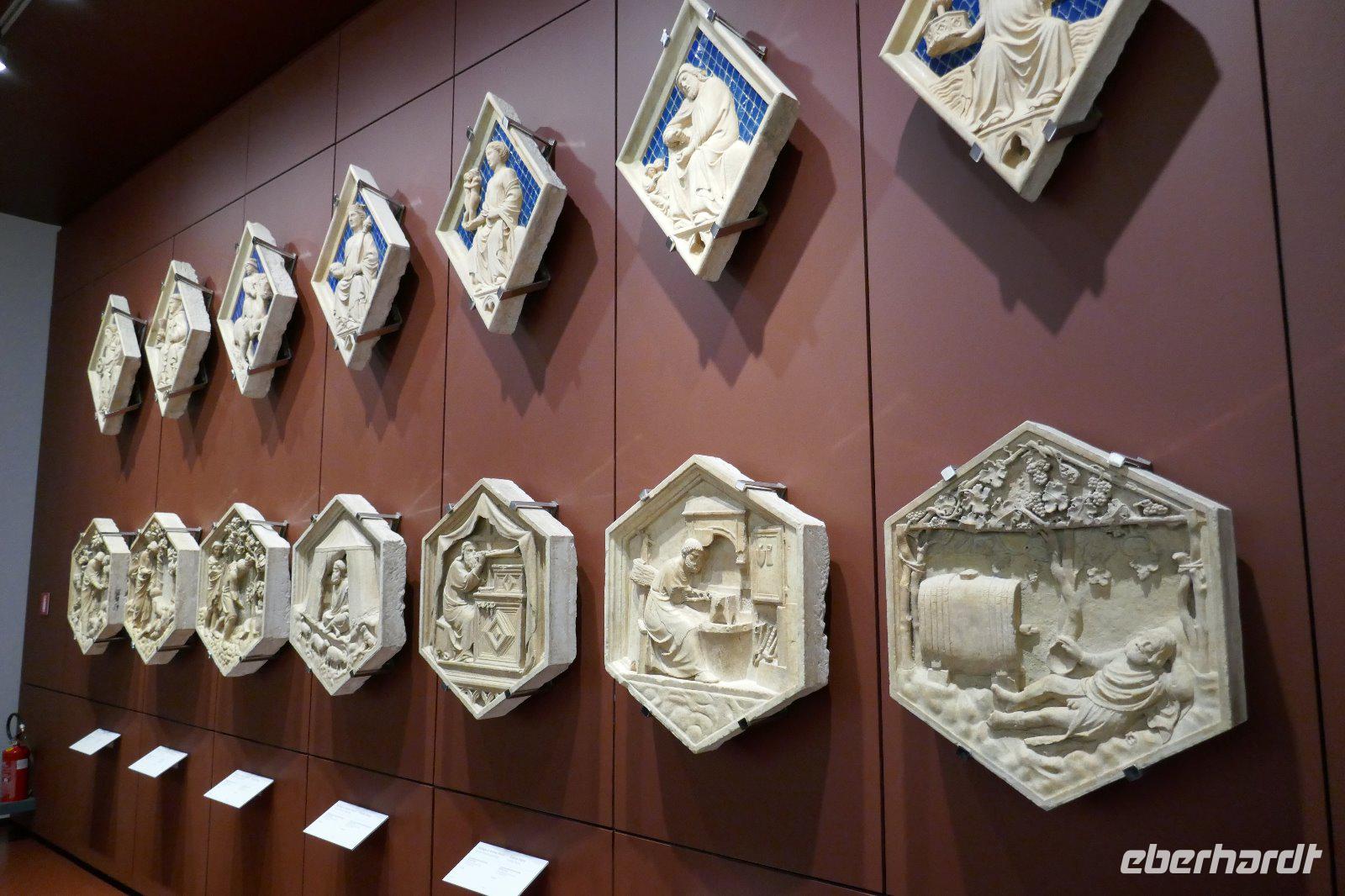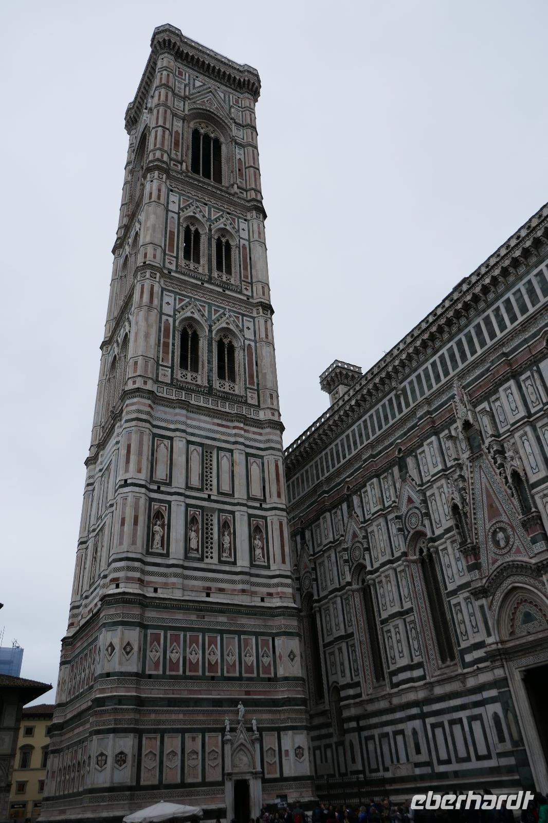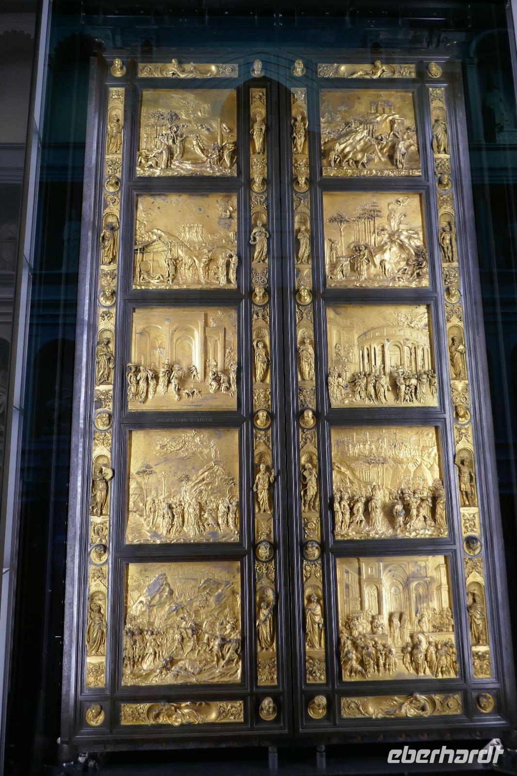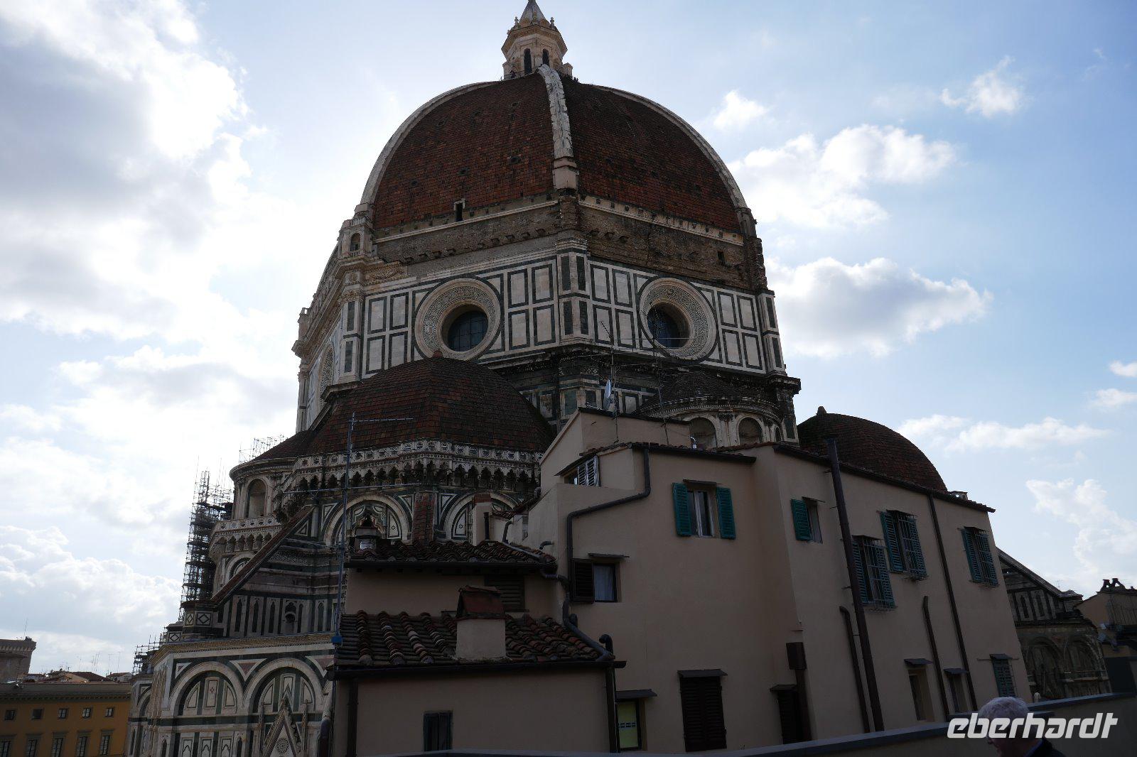 Mit dem beginnenden Leben in der Stadt wurden wir geweckt und nach dem Frühstück erwartete uns schon unsere Stadtführerin Angela in der Hotellobby. Durch eine schon pulsierende Stadt ging es entlang zahlreicher Palazzi über die Ponte Vecchio (einst herrschten hier die Fleischer um dann des Geruches wegen den Goldschmieden zur Verfügung gestellt wurde) zur Brancacci-Kapelle, die eine Seitenkapelle der Kirche Maria del Carmine ist und zum Karmeliterkloster gehört. Sie wurde von Pietro Brancacci in Auftrag gegeben und 1386 begonnen. Auftraggeber der Fresken hingegen war der seefahrende Seidenkaufmann Felice Brancacci, Neffe und Erbe von Pietro. Als „Sixtinische Kapelle" der Frührenaissance werden die Fresken genannt. Präzise ermittelte Perspektiven und eine einheitliche Beleuchtungsrichtung gepaart mit geschickten Hell-Dunkel-Effekten sowie der naturgetreuen Darstellung waren sie Grundlage der zukünftigen Malerei in Florenz. Michelangelo und andere Künstler nahmen diese Arbeiten von Masaccio zum Vorbild. Herausragend sind der Sündenfall und die Vertreibung aus dem Paradies aber auch die Szenen aus dem Leben des Apostel Petrus u. anderem Petrus auf dem Thron, Predigt des Petrus oder Kreuzigung Petrus. Nach so vielen Eindrücke war eine Mittagspause fällig. Ausgiebig konnten wir in einem Stadtviertel, das noch den Florentinern gehört, die Köstlichkeiten der Region genießen. Gestärkt ging es über die Ponte S. Trinita wieder in die Altstadt. Entlang der mittelalterlichen kleinen Gassen und vorbei S. Orsamichele wurde noch eine kleine Eis-Pause eingelegt, bevor wir das kirchliche Machtzentrum eroberten. Die Kathedrale Santa Maria del Fiore. Ihre orangefarbige Kuppel prägt das Stadtbild und ist von Weiten sichtbar. Dom u. Baptisterium bilden in ihre Farbgestaltung der Außenfassade eine Einheit und bilden das religiöse Zentrum der Stadt. Die Kuppel ein Meisterwerk von Brunolleschi, der heute noch ehrfurchtsvoll auf sein Werk blickt, denn zur damaligen Zeit war es ein nicht zu lösendes Vorhaben, das ihm gelang. Bei so viel Genialität verwundert es nicht, dass der Fall der Kugel auf der Spitze der Kuppel mit dem Teufel in Verbindung gebracht wurde als diese plötzlich der Schwerkraft schuldend zu Boden fiel. Mächtig thront der Campanile mit seinen ca.90 Metern daneben. Die Paradiestür am Baptisterium konnten wir kaum verfehlen, da dort sich die meisten Menschen tummeln. Auch wenn das Original heute im Dommuseum ist, so ist auch die Kopie ein Meisterwerk. Auch hier werden die plastisch wirkenden 10 Bibelmotive in Perfektion dargestellt. Prächtig auch die heutige Domfassade, die erst in der Zeit, als Florenz Hauptstadt des neuen Königreiches Italien war, fertiggestellt wurde. Die Kunstschätze des Doms befinden sich heute größtenteils im Dommuseum. Also steuerten wir dieses Museum an. Im neuen Glanz hat es eine Vielzahl von Schätzen zu bieten. Anno 1891 gegründet, beherbergt das Museo dell'Opera del Duomo die bedeutendsten Plastiken und Skulpturen Italiens. Das Museum präsentiert die vom Dom, dem Baptisterium oder dem Campanile entfernten Kunstwerke von Arnolfo di Cambio, Lorenzo Ghiberti, Donatello, Luca della Robbia und Michelangelo. So begannen wir den Rundgang im Paradies - Nachbildung des Blicks auf die Domfassade (so bezeichnete man einst den Platz zwischen Baptisterium und Dom). Auf dem weiteren Weg durchs Museum begegneten wir Meisterstücken wie z. B. die Sitzfigur der Evangelisten oder der Holzfigur der Magdalena von Donatello. Höhepunkt aber waren die Pieta von Michelangelo oder die Original Ostflügeltür des Baptisteriums die Paradiespforte von Lorenzo Ghiberti. Nicht zu vergessen die Darstellungen zum Bau der Kuppel, die uns eine gewisse Ehrfurcht einflößte mit welchen primitiven Mitteln so eine Bauwerk gelang.