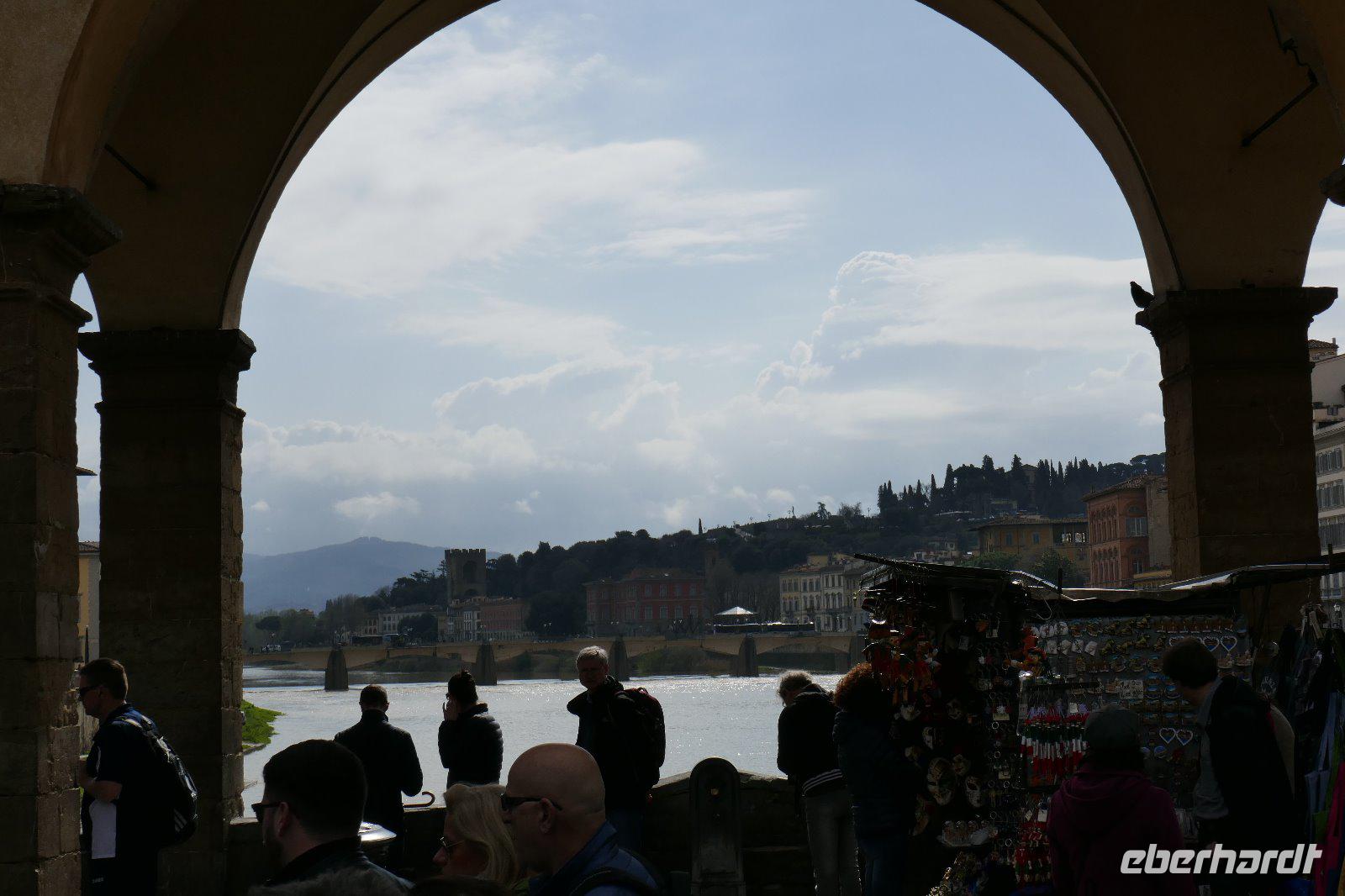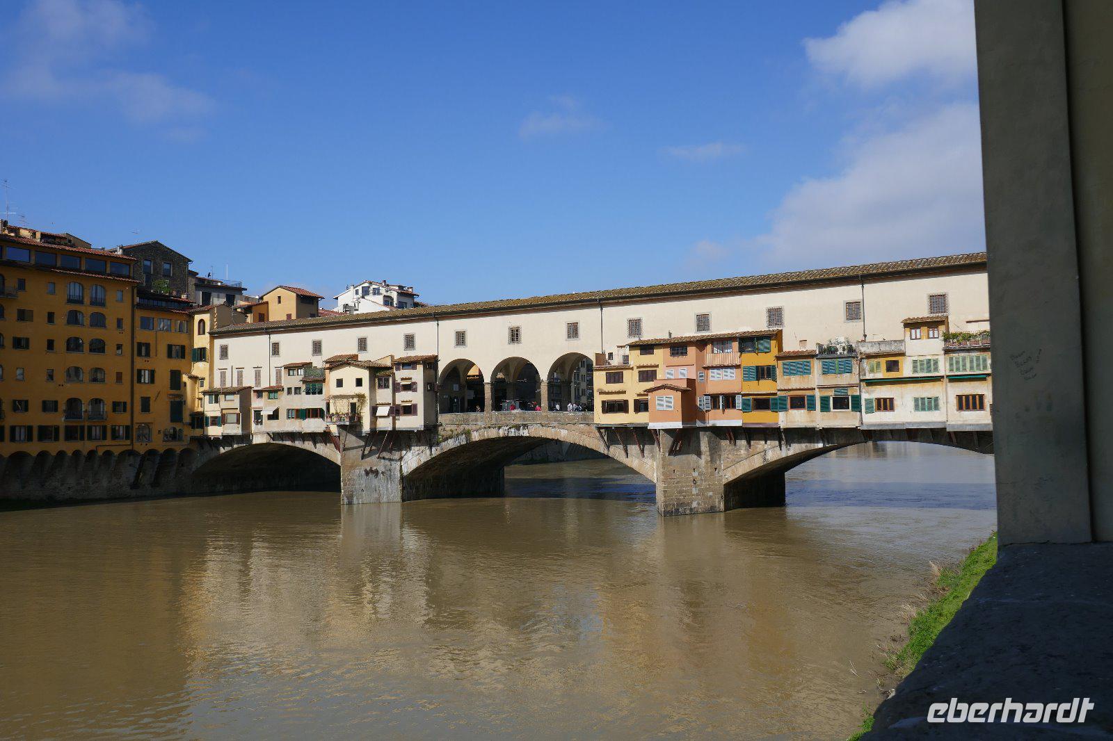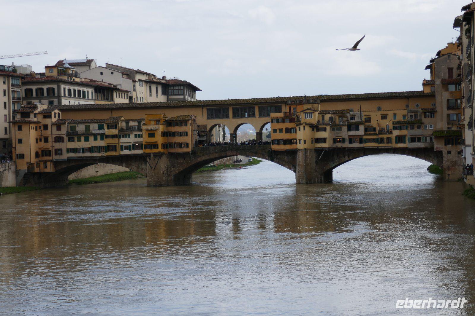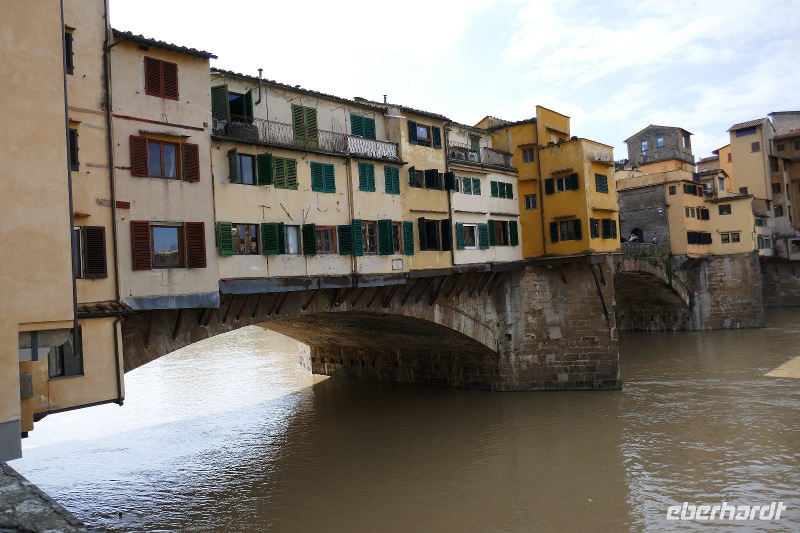 Der Weg führte über die Ponte Vecchio. Einst war sie Domizil für die Fleischer, heute sind seit der Vertreibung durch die Medici nach dem Motto „Geld stinkt eben nicht" nur edle Juwelierläden anzutreffen. . Wir waren durch das viele Gold in den Auslagen geblendet. Ohne eine Investition getätigt zu haben kamen wir schließlich zum Dies sollte nun das Ende unserer heutigen Tour sein, die ganz individuell ausklang und mit einem grandiosen Essen endete.