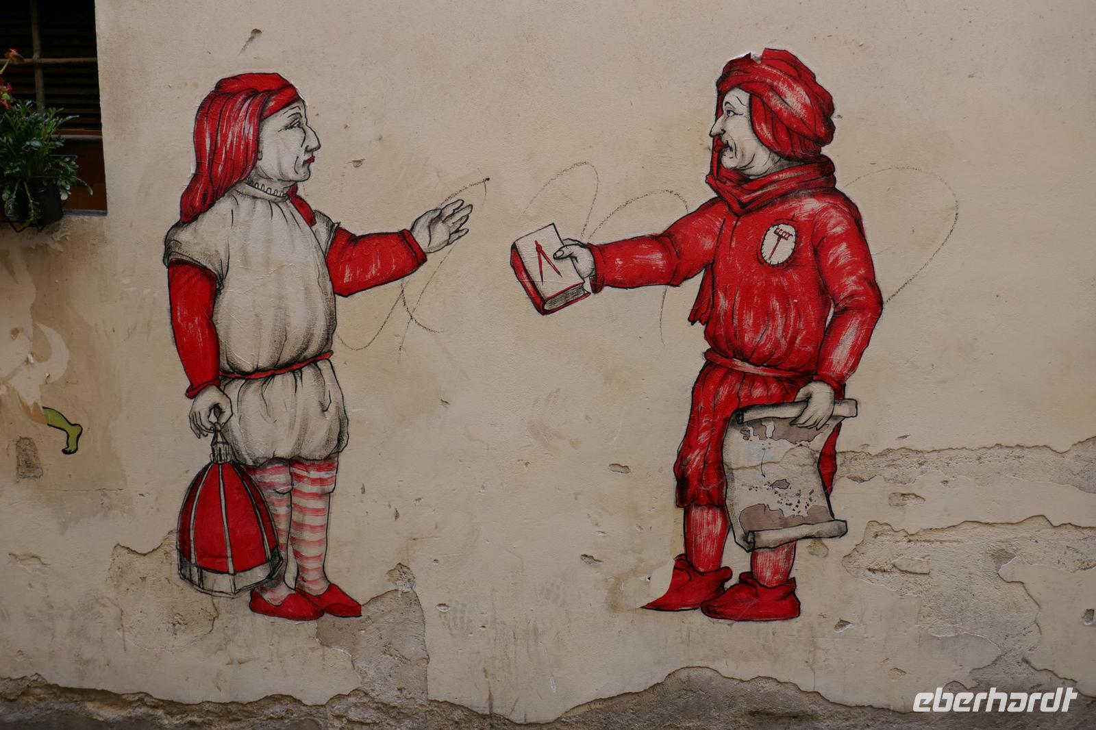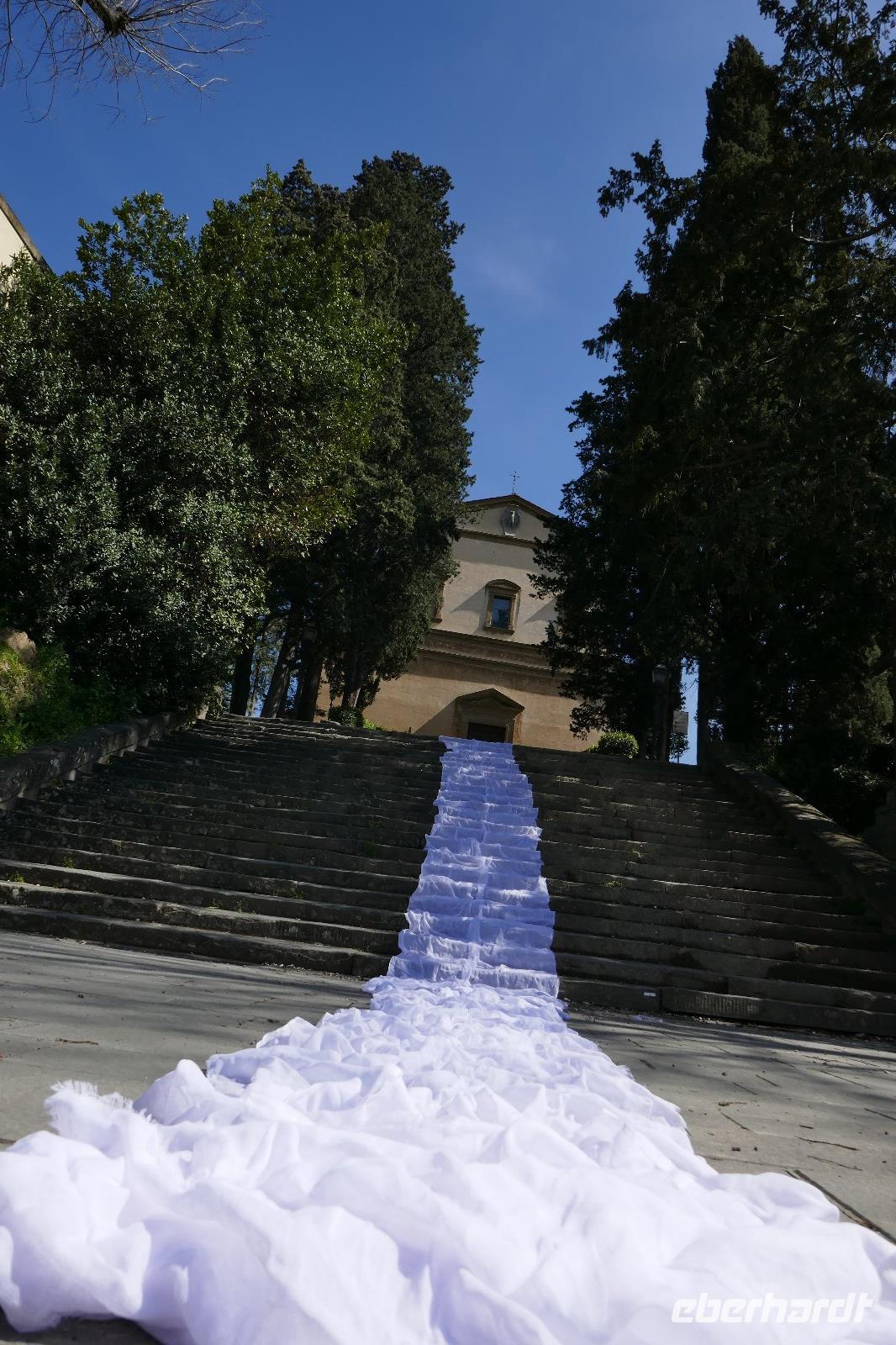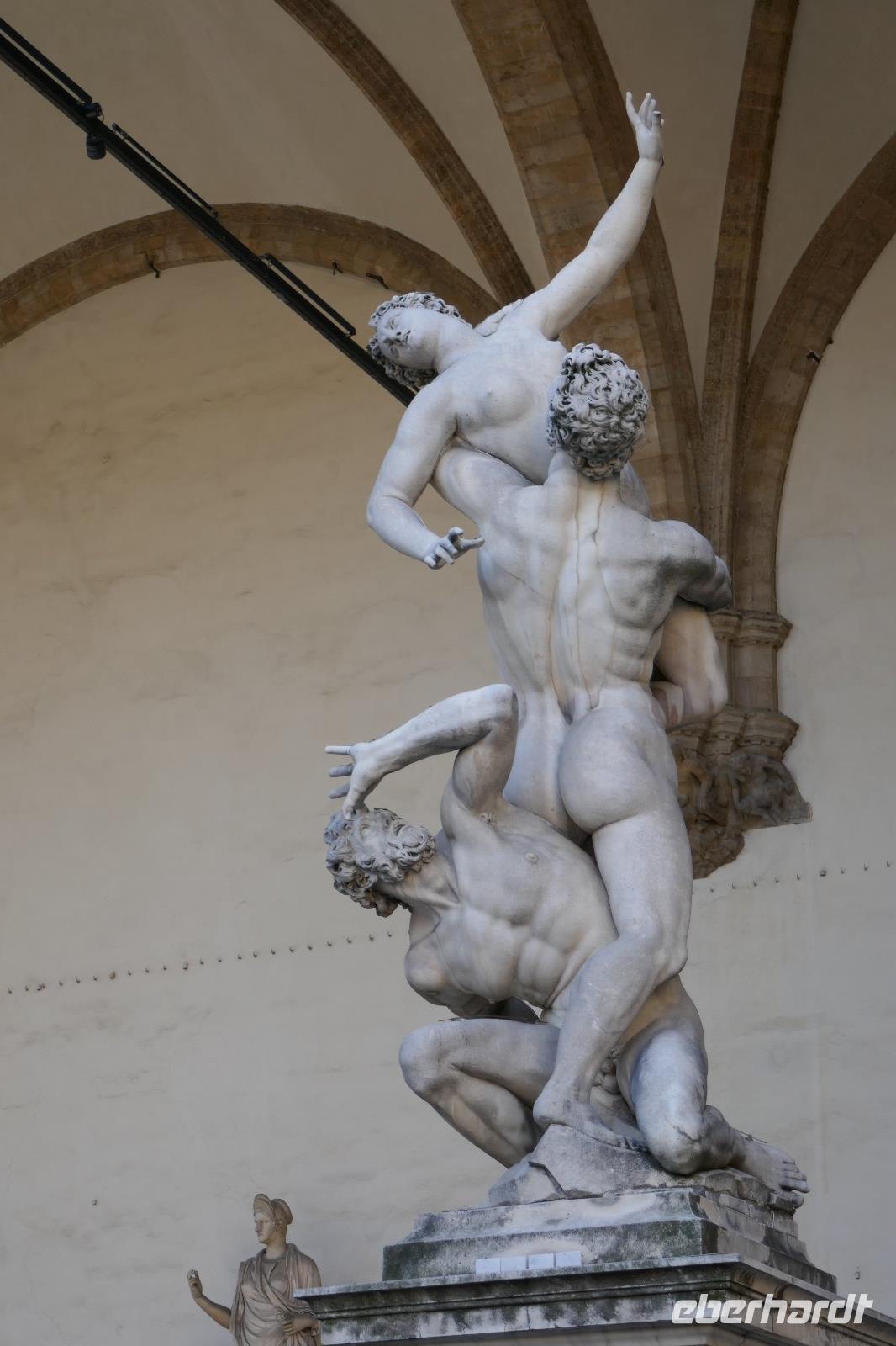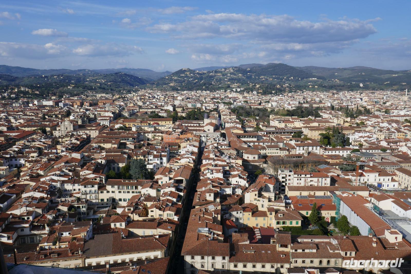 Heute bei strahlendem Sonnenschein versprach Angela einen ruhigen Tag. Am Ende waren auf den Schrittzählern immerhin 10 Km und mehr. Erster Stopp war am Piazza della Signoria. Einst politisches u. soziales Zentrum der Stadt säumen heute die Touristen und zahlreiche Cafés diesen Platz. Die Kunst ist eher an den Rand gedrängt. Sexy Boys an vielen Orten. Die eindrucksvollsten waren der zarte Jüngling, der glorreich seine Trophäe (Kopf der Medusa) zur Schau stellte und ein David wie von Gott geschaffen- breite Schultern u. ausgeprägter Sixpack.Über die Ponte Vecchio erreichten wir schließlich den Palazzo Pitti - einst vom Bankier Pitt in Auftrag gegeben um gegenüber den mächtigen Medicis Einfluss zu dokumentieren mussten diese aber gerade aus finanziellen Nöten dieses Anwesen schließlich an die Medicis verkaufen. Erbaut von keinem anderen als Brunelleschi. Nach dem Ausbau durch die Medicis dokumentierte es einmal mehr den Machtanspruch dieses Herrschergeschlechts. Die Residenz des italienischen Königs Cosimo I de Medici beherbergt heute zahlreiche Museen mit Werken von Raffael, Rubens, Tizian und natürlich die königlichen Gemächer. Dahinter liegt der Boboli-Garten. Dieser Renaissancegarten auf einem Hügel gleich hinter dem Palast wurde in der Mitte des 16. Jahrhunderts angelegt. Der Gartenbaustil, der verschwenderische Einsatz von Statuen, Brunnen und der erneute Panoramablick über die Perle am Arno luden zu einem Spaziergang ein. Nebenbei erfuhren wir viel zum Palast u. Garten und seiner Geschichte. Er ist einer der elegantesten Gärten Italiens und umfasst über 4,5 ha. Bis er seine heutige Ausdehnung erreichte, wurde er immer wieder umgestaltet und erweitert. Herausgekommen ist ein einzigartiger prächtiger Park mit saftig-grünen Wiesen, verschlungenen Pfaden mit wunderschönen Landschaftsausblicken. Um das Ganze zu vervollkommnen, finden sich in der gesamten Anlage besondere dekorative Kunstschätze, die den Park zu einem wahren Freilichtmuseum für Skulpturen machen. Antike Statuen werden ergänzt durch ein riesiges Amphitheater, eine zauberhafte Grotte, unzählige verspielte Brunnen mit Fontänen sowie eine Vogelwiese mit farbenfrohen gefiederten Freunden Auf dem Hügel Montecuccoli liegt der Bardini-Garten. Die barocke Freitreppe ist wohl der spektakulärste Teil des Gartens. Nach dem wir diese erklommen hatten, bot sich auf der Aussichtsterrasse ein herrlicher Blick auf die Stadt. Brunnen mit Mosaiken aus unterschiedlichen Materialien, grünes Theater, Kamelien, Zitrusfrüchte und der Rosengarten ergänzen den barocken Garten, der einst ein Obst u. Gemüsegarten war. Im Rosengarten konnte man die Pracht und den Duft, der Jahreszeit geschuldet, nur erahnen. Doch der Reiz der frühlingshaften Flora entschädigte allemal dafür. Anschließend nahmen wir uns ein wenig Zeit, zwischen Kunst und Botanik zu entspannen die sich in einer Trattoria zur Mittagszeit fortsetzte. Gestärkt ging es steil bergauf zur Kirche San Miniato al Monte. Von der Zunft der Spinner „gesponsert" ist es heute noch Kloster. Diese Atmosphäre versprüht heute noch die Kirche besonders wenn zur Abendmesse die Mönche ihren Gesang anstimmen. Prunkvoll auch das, was die Medici hier hinterlassen haben. Leider für uns derzeit nur sichtbar in Form eines Druckes, denn dieser Teil wird gerade restauriert. Über die Piazzale Michelangelo begleitet von italienischen Klängen einiger Straßenmusiker ging es über den Arno zum Piazza Santa Croce. In einem Kaffee stärkten wir uns für den letzten Programmpunkt des heutigen Tages - der Aufstieg auf die Domkuppel. Mehr als 400 Stufen und nach einigen Scheißtropfen erreichten wir die Laterne der Kuppel. Mit eine gigantischen Sicht über die Stadt die Region wurden wir für die Mühe entschädigt. Mit einem guten Essen in einem Lokal wurden der „ruhige Tag" beendet.