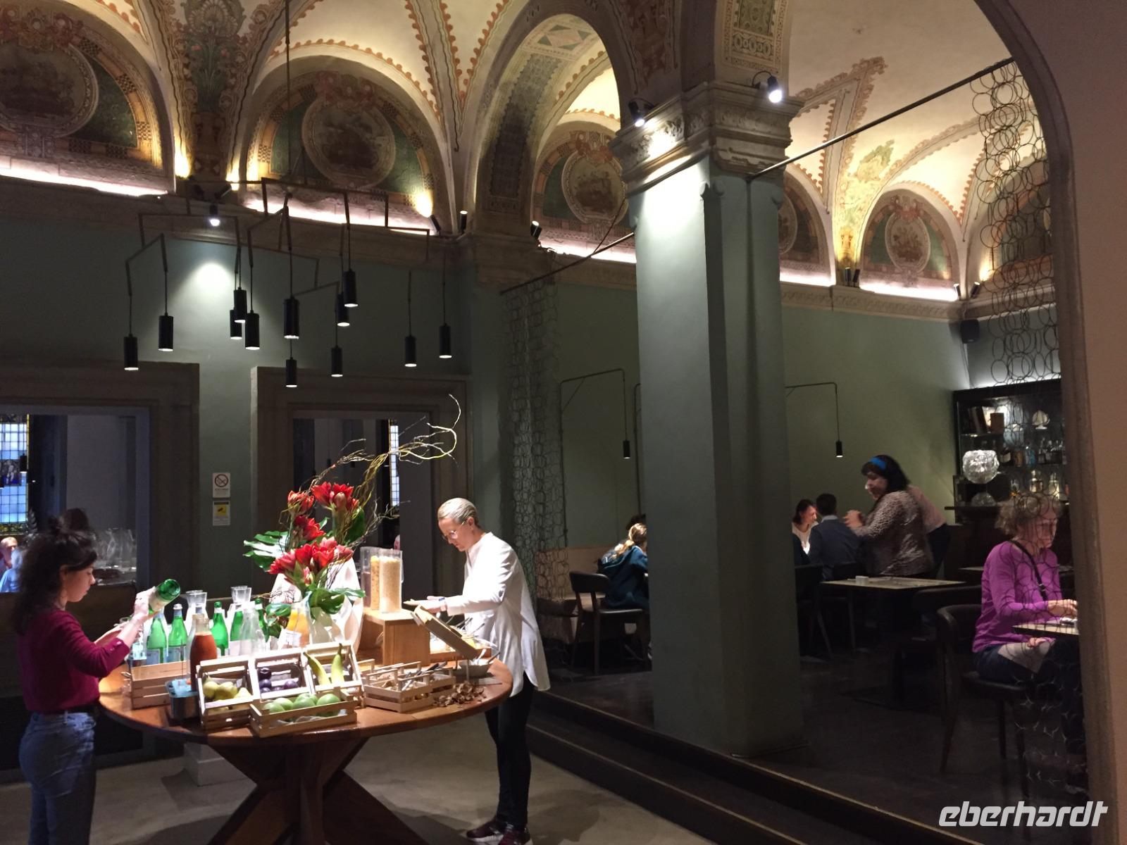 WOW, mit so einem tollen Frühstücksbuffet haben wir nicht gerechnet. Schließlich sind wir in Italien und da sind die Gepflogenheiten anders. Und dann noch in solch einem stilvollen Ambiente - echt klasse. So stärken wir uns für den Tag, der vielversprechend klingt. Ausgerüstet mit dem Eberhardt-Reiseleiter-Funk und guter Laune treffen wir unsere liebe Angela in der Lobby des Hotels. Auf geht's - oder wie sagen die Italiener: andiamo!