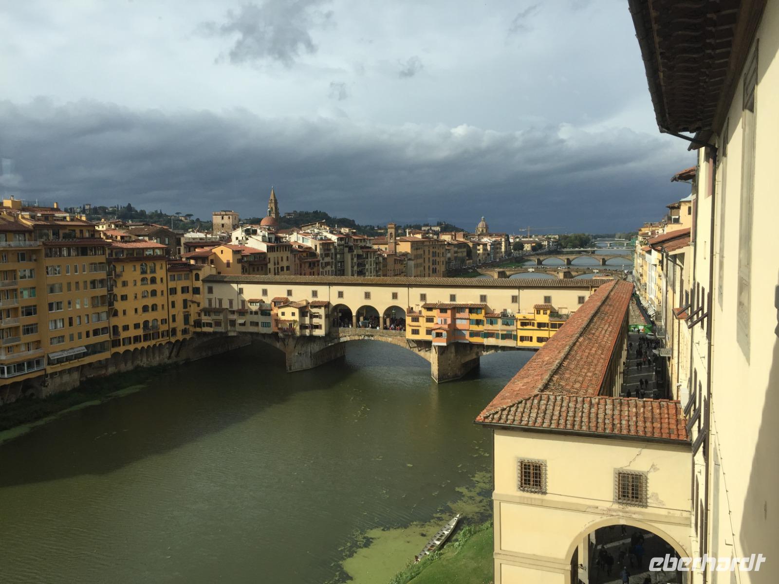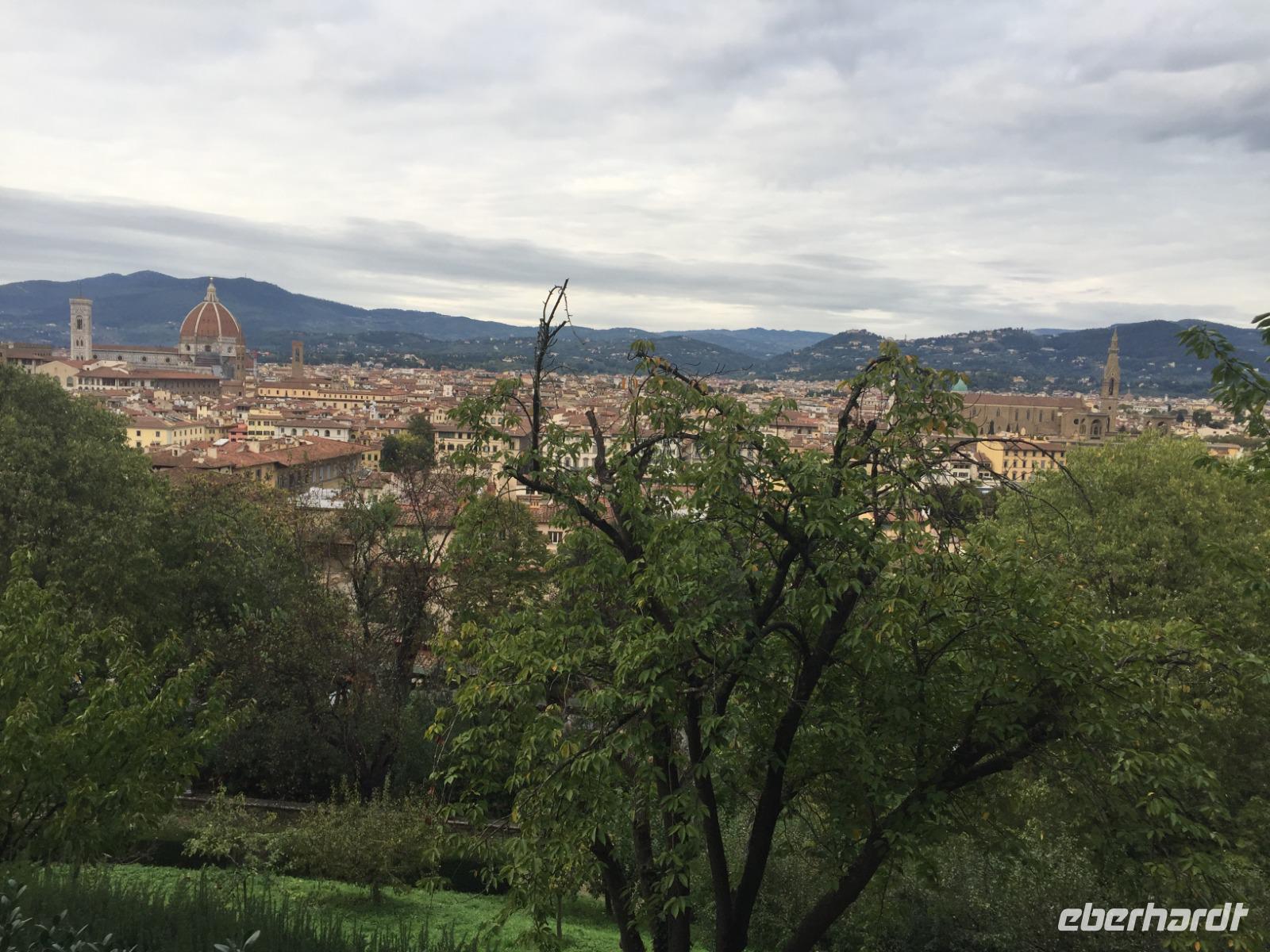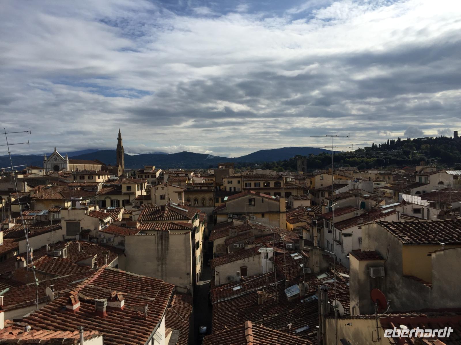 Zwischendurch genießen wir tolle Ausblicke auf den uns zu Füßen liegenden Arno mit der Ponte Vecchio, den Palazzo Vecchio und den gigantischen Dom.
