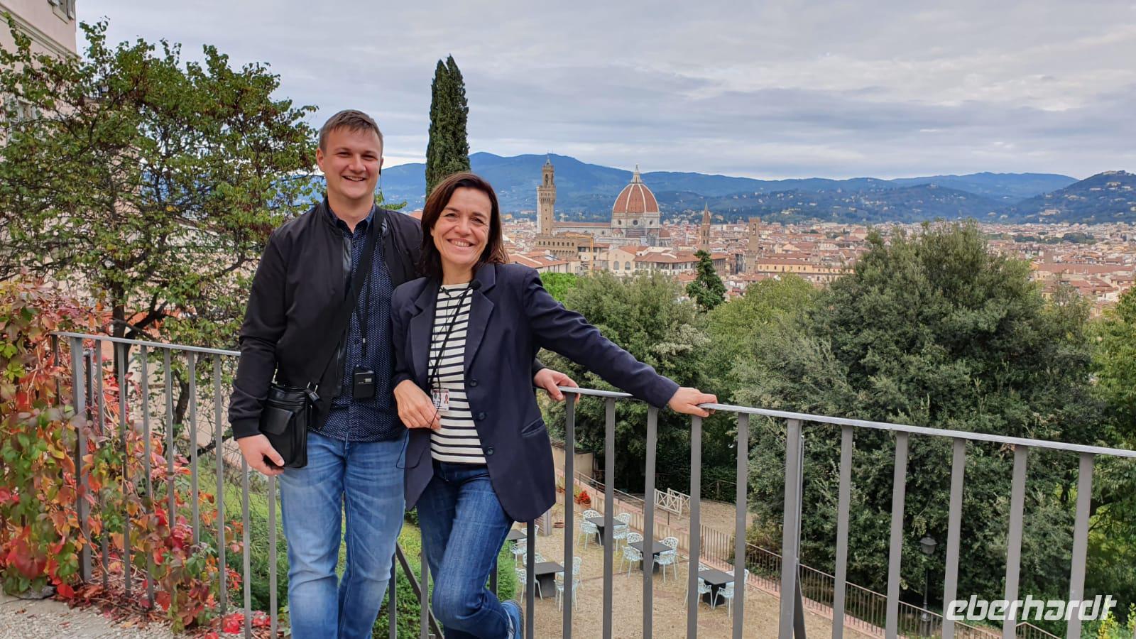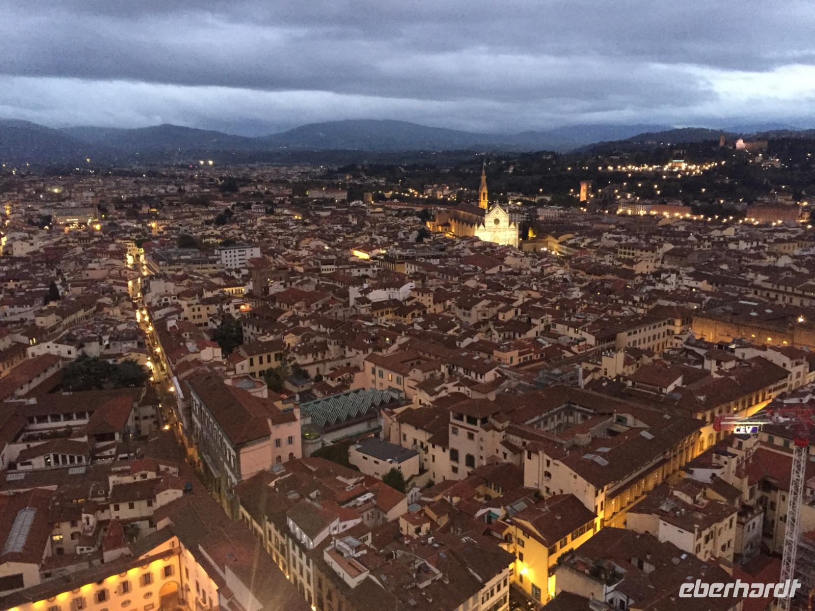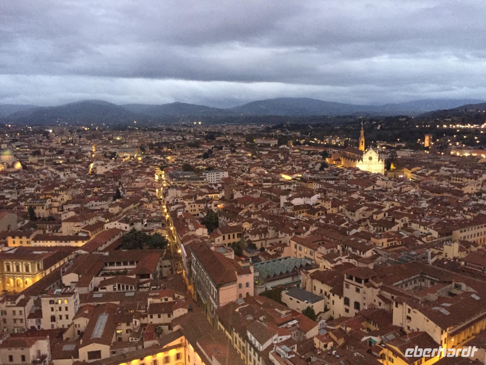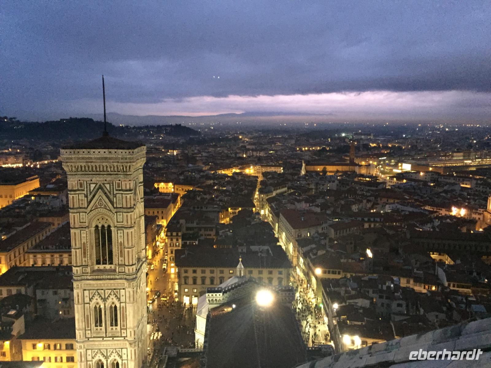 Zwischendurch genießen wir tolle Ausblicke auf den uns zu Füßen liegenden Arno mit der Ponte Vecchio, den Palazzo Vecchio und den gigantischen Dom.