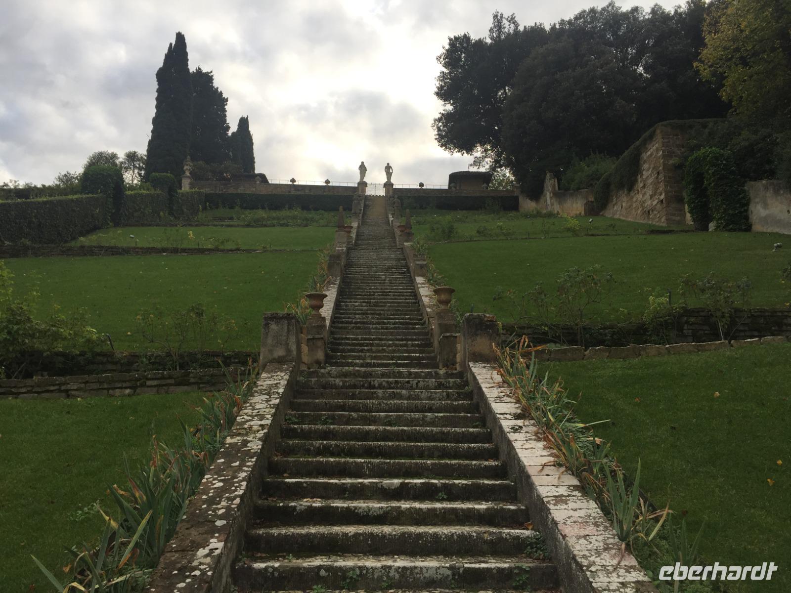 Nur wenige Minuten zu Fuß entfernt, befindet sich der Bardini-Garten - ein ca. 4 Hektar großer Park zwischen Arno, dem sanften Hügelgebiet von Montecuccoli und den mittelalterlichen Stadtmauern. Hier genießen wir ein Postkartenmotiv auf Florenz und halten noch etwas inne, bevor wir hinab spazieren.
