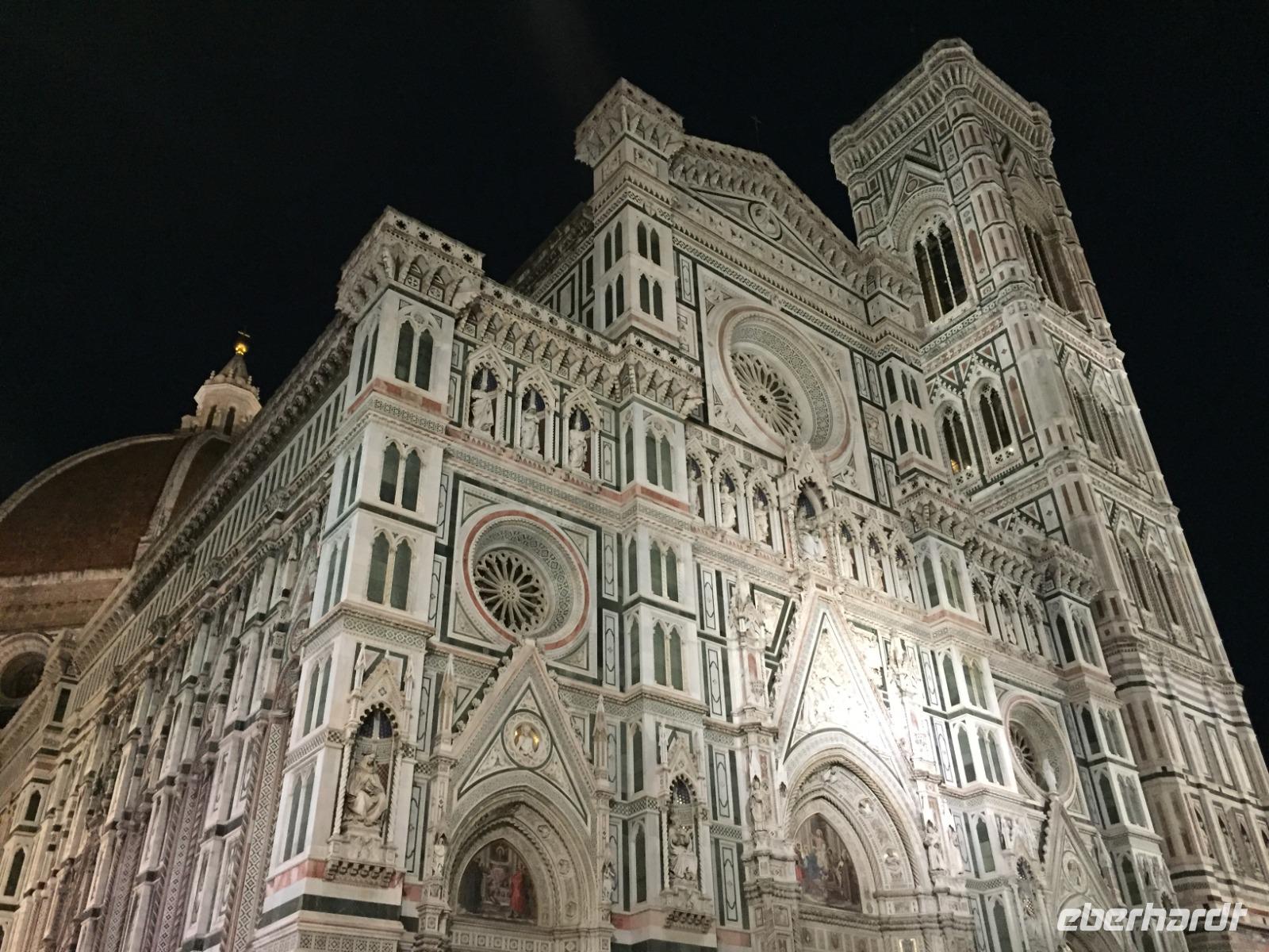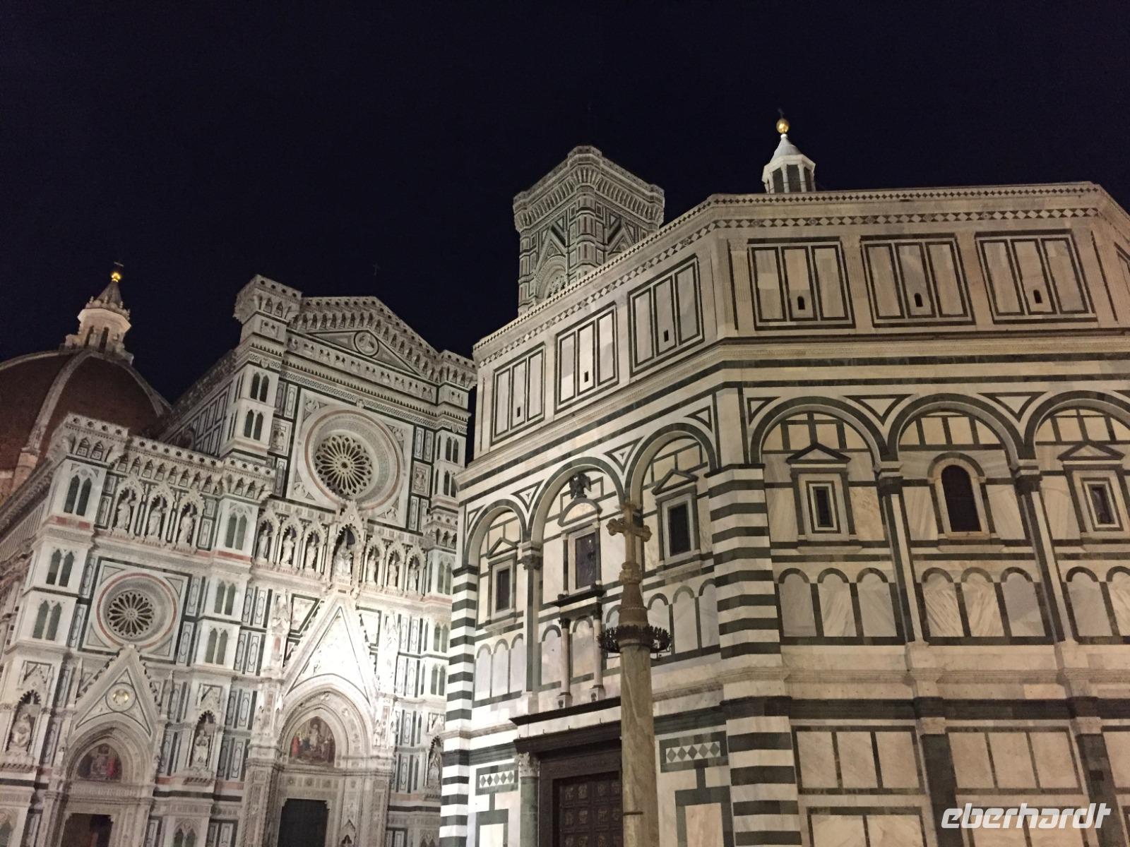 Der heutige Abend steht zum individuellen Abendessen frei zur Verfügung. Angela hat uns freundlicherweise in der Trattoria ihres Vertrauens in der Nähe der Markthalle Plätze reserviert. Fast die ganze Reisefamilie folgt mir und so genießen wir bestes italienisches Essen bei gutem Service und netten Gesprächen. Am hell beleuchteten Dom vorbei spazieren wir gut gestärkt für den kommenden Tag zurück zum Hotel. Buona notte!