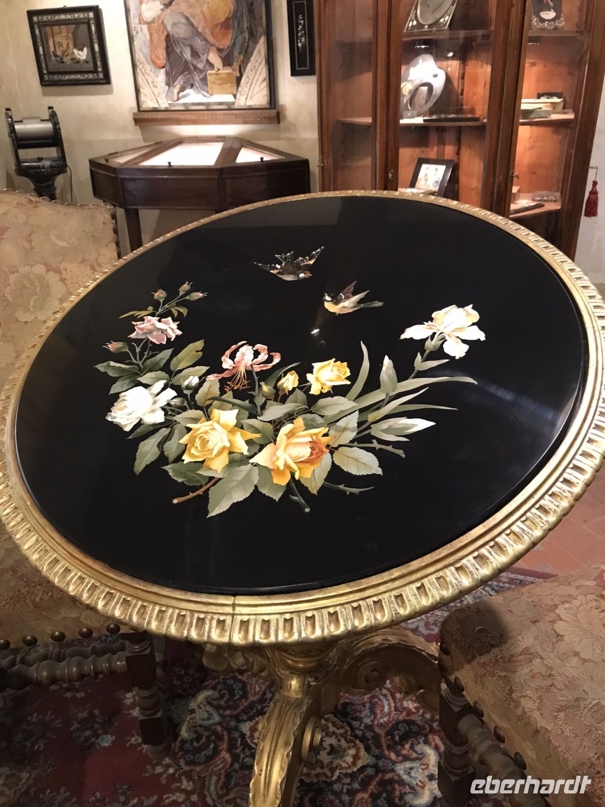 Die Zugabe vom Tagesprogramm führt uns in der Nähe von Santa Croce in die Mosaikwerkstatt L'Astrucci. Hier bekommen wir eindrucksvollen Anschauungsunterricht über die Herstellung von Mosaiken aus Natursteinen, die die Meister oft selbst in der Umgebung von Florenz suchen. In mühevollster Präzisionsarbeit werden die Steine geschliffen und dann auf eine Vorlage gesetzt und verleimt. Ein großer Tisch aus der Zeit der Medici in Kopie beschäftigt einen Meister zehn Jahre lang. Bei L'Astrucci wird das Handwerk aus füheren Jahrhunderten nicht nur geehrt, sondern auf höchst professionelle Weise weitergeführt. Wie lange noch? Das steht wohl in den Sternen.
