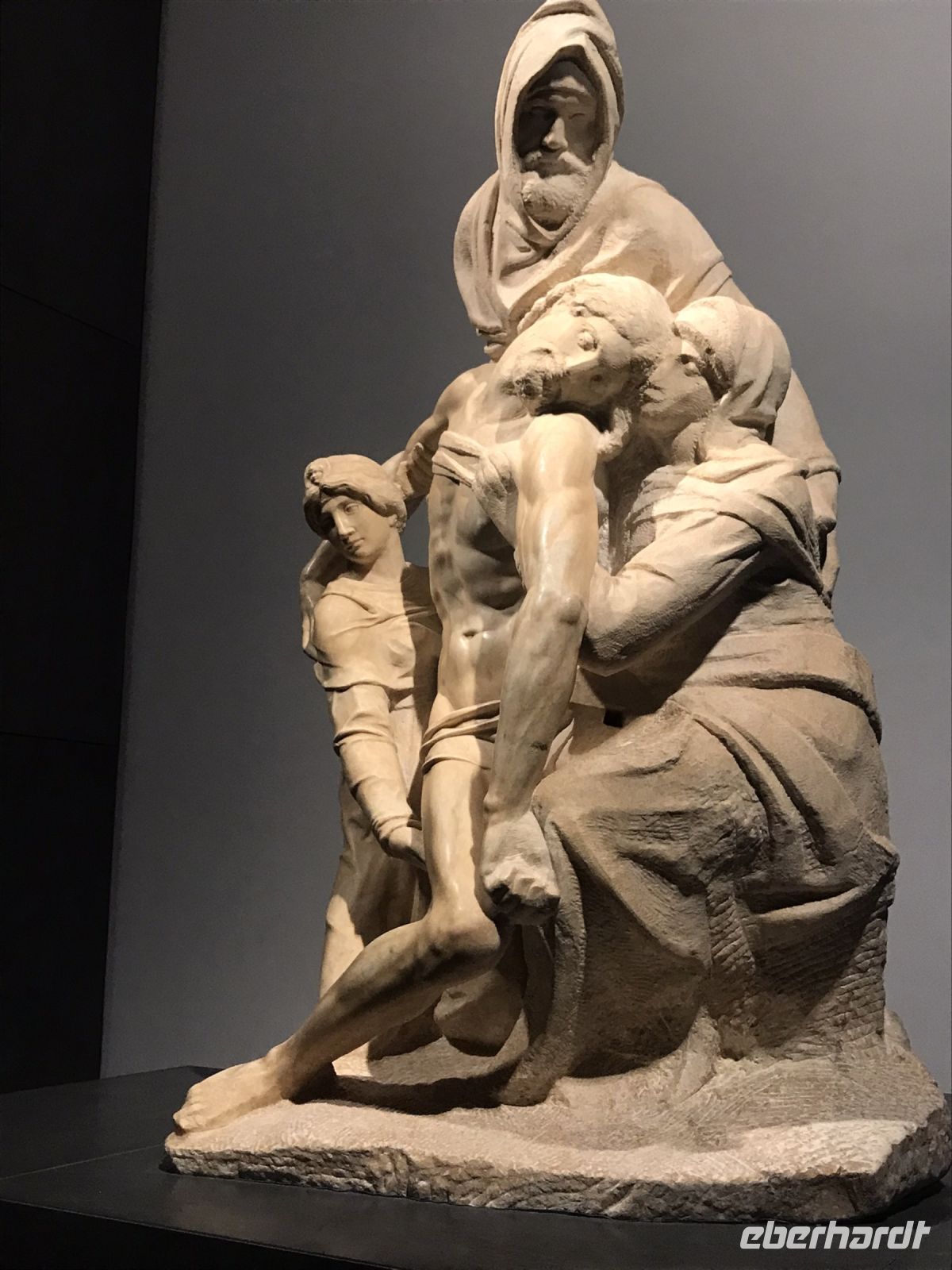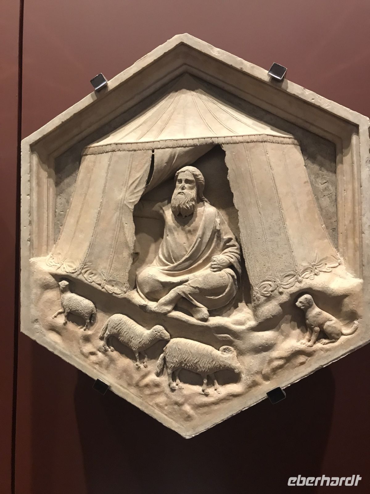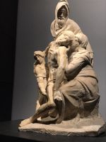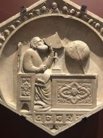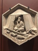 In der Taufkapelle wird restauriert, der Innenraum ist mit Gerüsten verstellt, doch Abbildungen von den Mosaiken aus der Kuppel sind auf einem großen Plakat an den Gerüsten angebracht, so dass man die biblischen Geschichten, die darauf erzählt werden, gut erkennen kann. Auch auf den Portalen zur Taufkapelle werden biblische Geschichten erzählt, Ghiberti, der Künstler der Paradiestür, schafft es, gleich mehrere Episoden in einem Quadrat zu erzählen. Die Perspektive verschafft den Künstlern ganz neue Möglichkeiten, um Lebendigkeit und Raumtiefe zu erzeugen.