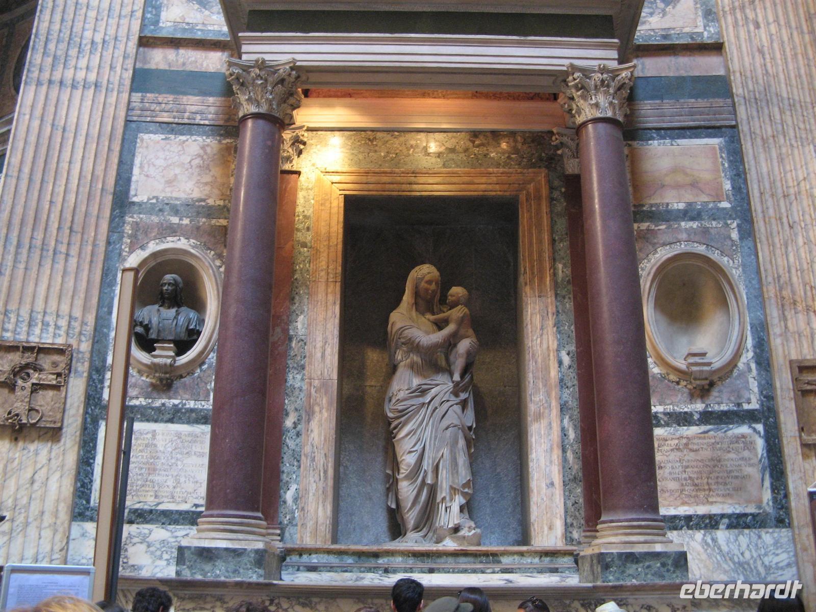 Sonntag - Heute schauen wir uns zuerst Michelangelos Moses in San Pietro in Vincoli an, anschließend den Platz der Republik und die dortige Santa Maria degli Angeli, eine ehemalige Thermenanlage, deren Umbau Michelangelo entwarf. Leider konnte er sein Werk nicht vollenden. Vorbei an der Porta Pia, auch eines seiner Werke, bringt uns der Bus zur Spanischem Treppe. Jetzt im Frühjahr ist es besonders schön, wenn die Azaleen blühen. Die Mittagspause verbringen wir am Trevibrunnen. Zeit eine Münze in den Brunnen zu werfen, um nach Rom zurückzukommen, denn es gibt ja so viel zu sehen. Wir besuchen noch zusätzlich das Pantheon, und dann Santa Maria sopra Minerva, um den Triumphierenden Christus zu bewundern. Der Weg führt zum Palazzo Farnese, auch ein Werk, an dem Michelangelo gearbeitet hat. Aber heute gehört es der französischen Botschaft und ist nur von außen zu betrachten.
