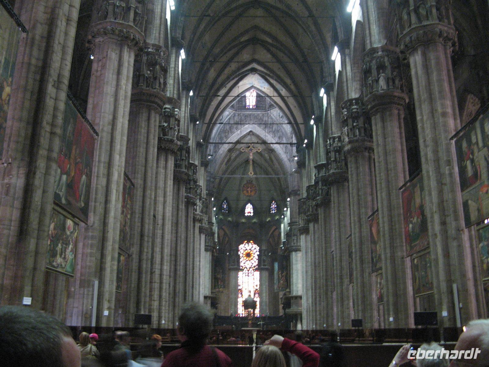 Dienstag - Heute noch einer der Höhepunkte der Reise. Wir fahren nach Mailand, um das Abendmahl von Leonardo Da Vinci anzuschauen. Die Tickets wurden schon Monate vorher über Eberhardt-Travel bestellt. Da man im Raum Mailand ständig mit Staus rechnen muss, fahren wir so zeitig los, dass noch ein Stopp am Castello möglich ist. Unser Stadtführer Andrea macht mit uns noch einen Rundgang, dann können die ersten 10 Gäste das Abendmahl besichtigen. Der Besuch ist auf 25 Gäste gleichzeitig beschränkt, so müssen wir uns aufteilen, und haben für die anderen Gäste erst eine Besuchszeit für 15.45 vorgegeben. Eberhardt hat uns eine zusätzliche Stadtrundfahrt organisiert und wir besichtigen zuerst den Monumentalen Friedhof, später ein Blick auf die Scala, ein Spaziergang durch die Galleria Vittorio Emanuele II. und eine Mittagspause am Domplatz. Gestärkt besichtigen wir den berühmten Dom von Mailand und unser Bus bringt uns wieder zur Kirche Santa Maria delle Grazie, wo der 2. Teil der Gäste das Abendmahl betrachten kann. Nach kurzem Relaxen im Hotel holt uns ein Boot ab und bringt uns quer über den See zum Borromäischen Golf, wo wir auf der Fischerinsel ein leckeres Abendessen serviert bekommen. Das Schiff bringt uns zurück ins Hotel, vorbei an der beleuchteten Isola Bella.