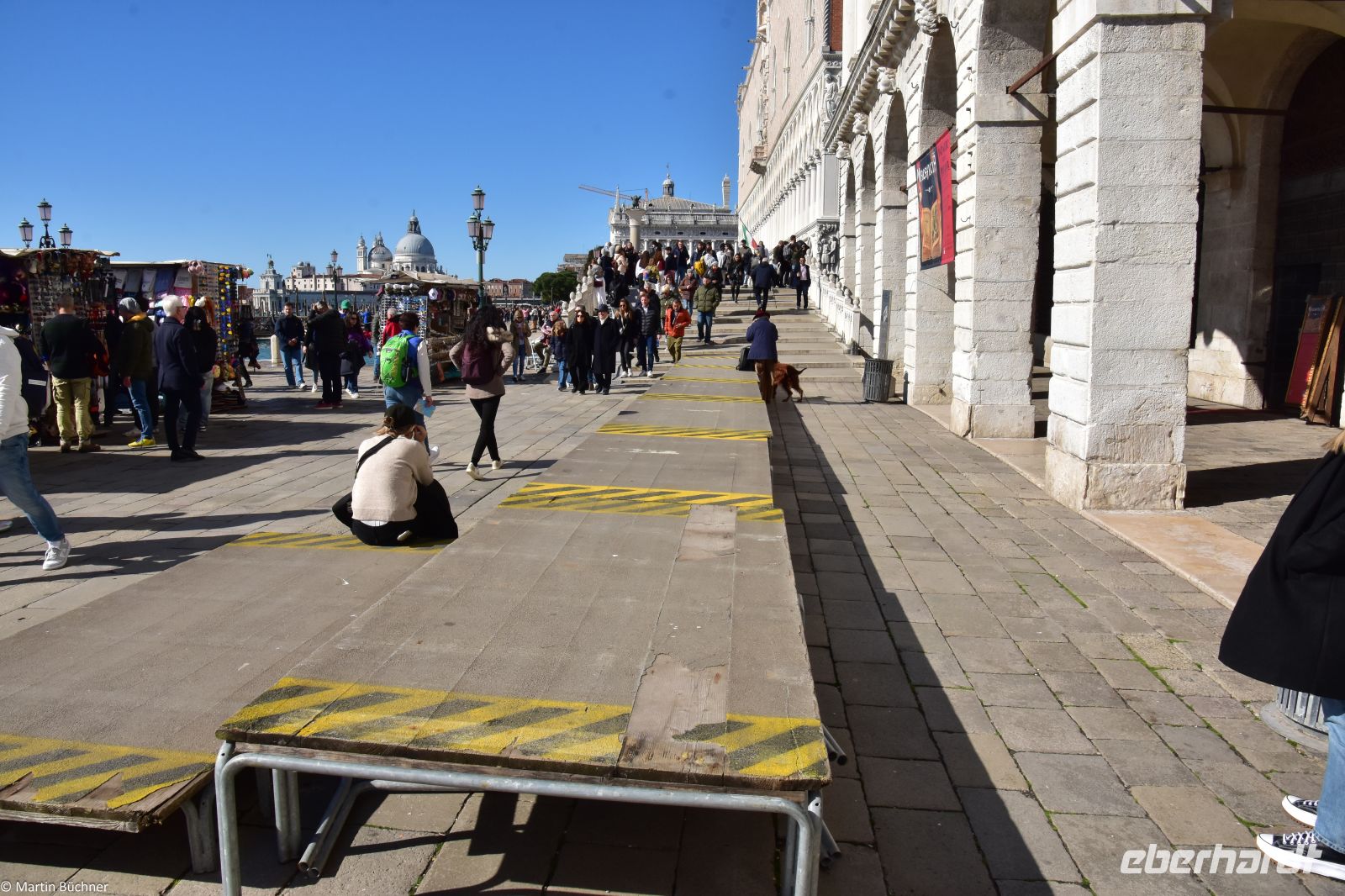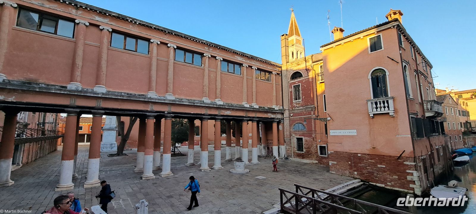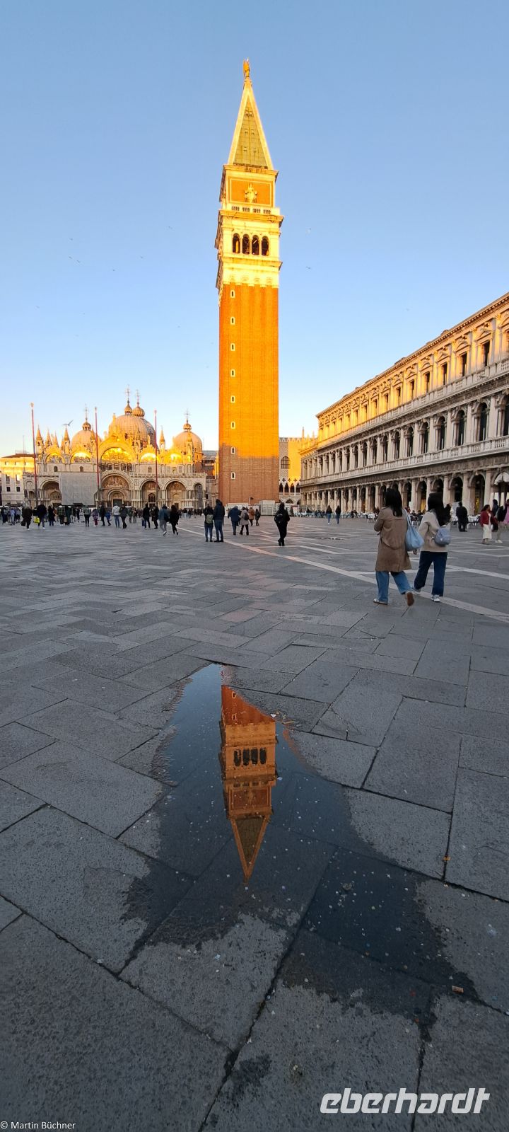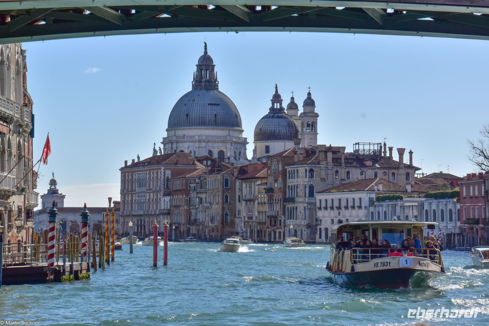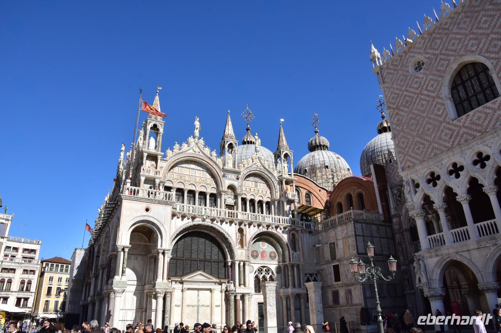 Am Morgen reisen wir mit dem Zug von San Trovaso nach Venezia Santa Lucia, dem Hauptbahnhof der Stadt Venedig. Von dort wechseln wir auf das Vaporetto, den Wasserbus in Venedig. Mit der Linie 2 folgen wir dem Canal Grande vorbei an der Ponte Rialto und der berühmten Filmterrasse des Inspektor Brunetti aus der Filmreihe Donna Leon und weiter bis zum Piazza San Marco, dem berühmten Markusplatz. Hier beginnt unsere Stadtführung in Venedig. Palazzo Ducale auch Dogenpalast genannt, Seufzerbrücke, Campanile, Piazetta di San Marco und natürlich Piazza San Marco mit der Basilica San Marco, in der die Gebeine des Heiligen Markus, Evangelist, liegen.