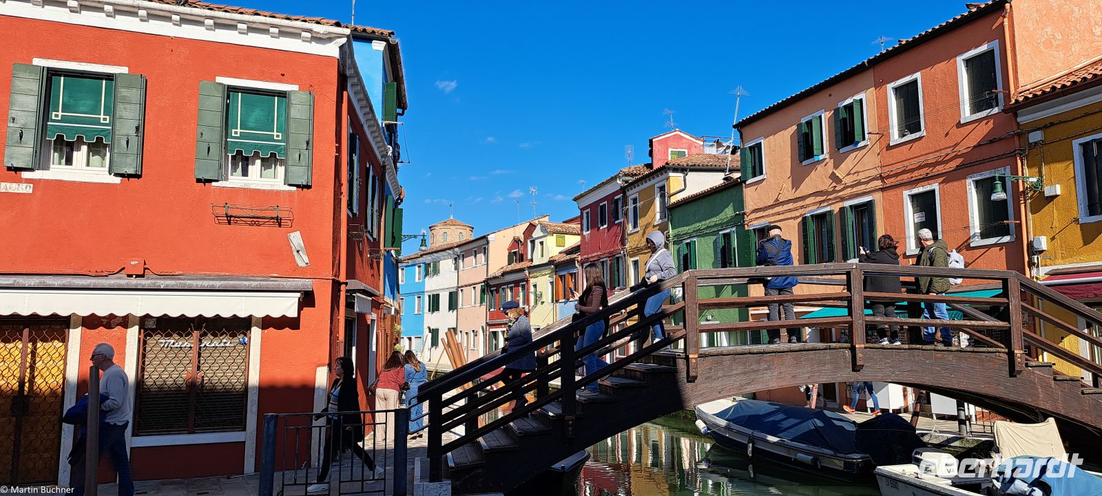 Nach der Stadtführung entscheiden wir uns als Gruppe zur berühmten Insel Burano zu fahren. Quer durch die engen Gassen abseits der Touristenwege erreichen wir die Vaporetto Haltestelle. Mit dem Wasserbus geht es zunächst zur berühmten Glasinsel Murano und anschließend weiter zur kleinen Insel Burano. Burano ist eine kleine Kopie von Venedig mit Canal Grande und vielen bunten Häusern. Zeit für eine Mittagspause mit typischen venezianischen Gerichten. Nach einer gemütlichen Erkundung geht es zurück nach Venedig. Doch wir haben einige Fans des Commissario Brunetti. Zu Fuß geht es erneut durch enge Gassen dabei entdecken wir die Film-Kulisse der berühmten Polizeiwache des Commissario, samt Boots-Anlegesteg, auf dem er so oft auf sein Polizeiboot gestiegen ist. Unweit des Markusplatzes steigen wir erneut selbst auf das Vaporetto, um durch den Canal Grande zurück zum Hauptbahnhof zu fahren. Mit dem Zug geht es zurück nach San Trovaso pünktlich auf die Minute erreichen wir unser Ziel. Abendessen im Hotel.