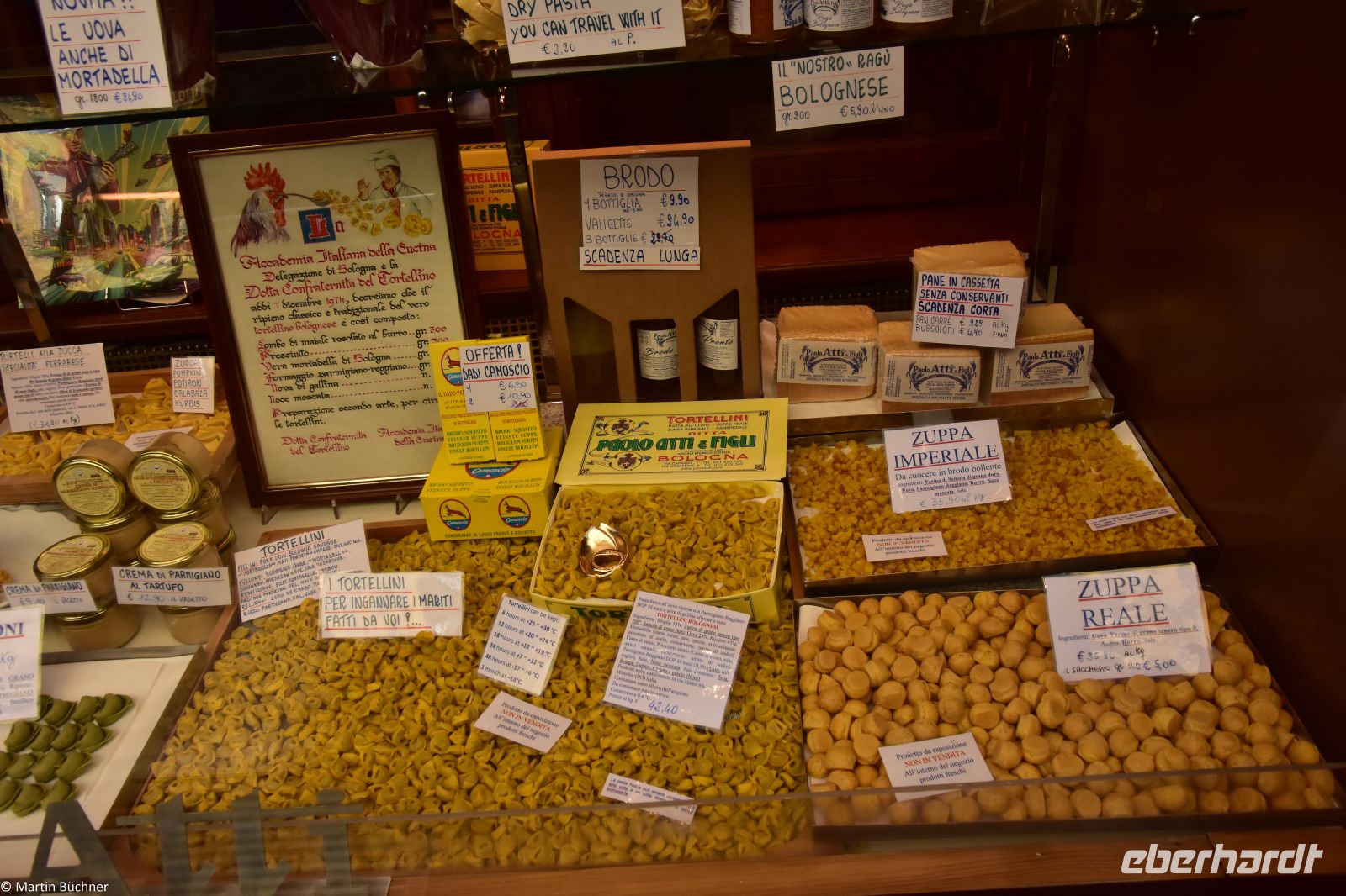 Außerdem wird Bologna „die Fette“ genannt, ein Kompliment, hier bekam und bekommt man immer etwas zu essen und konnte satt werden. Aus der Region stammen viele Köstlichkeiten Tortellini, Tortelloni, Mortadella, Crema und Aceto di Balsamico, Parmaschinken, Parmigiano Reggiano (Parmesan) und vieles anderes leckeres ebenso. Überall wird man verführt von leckeren Köstlichkeiten.